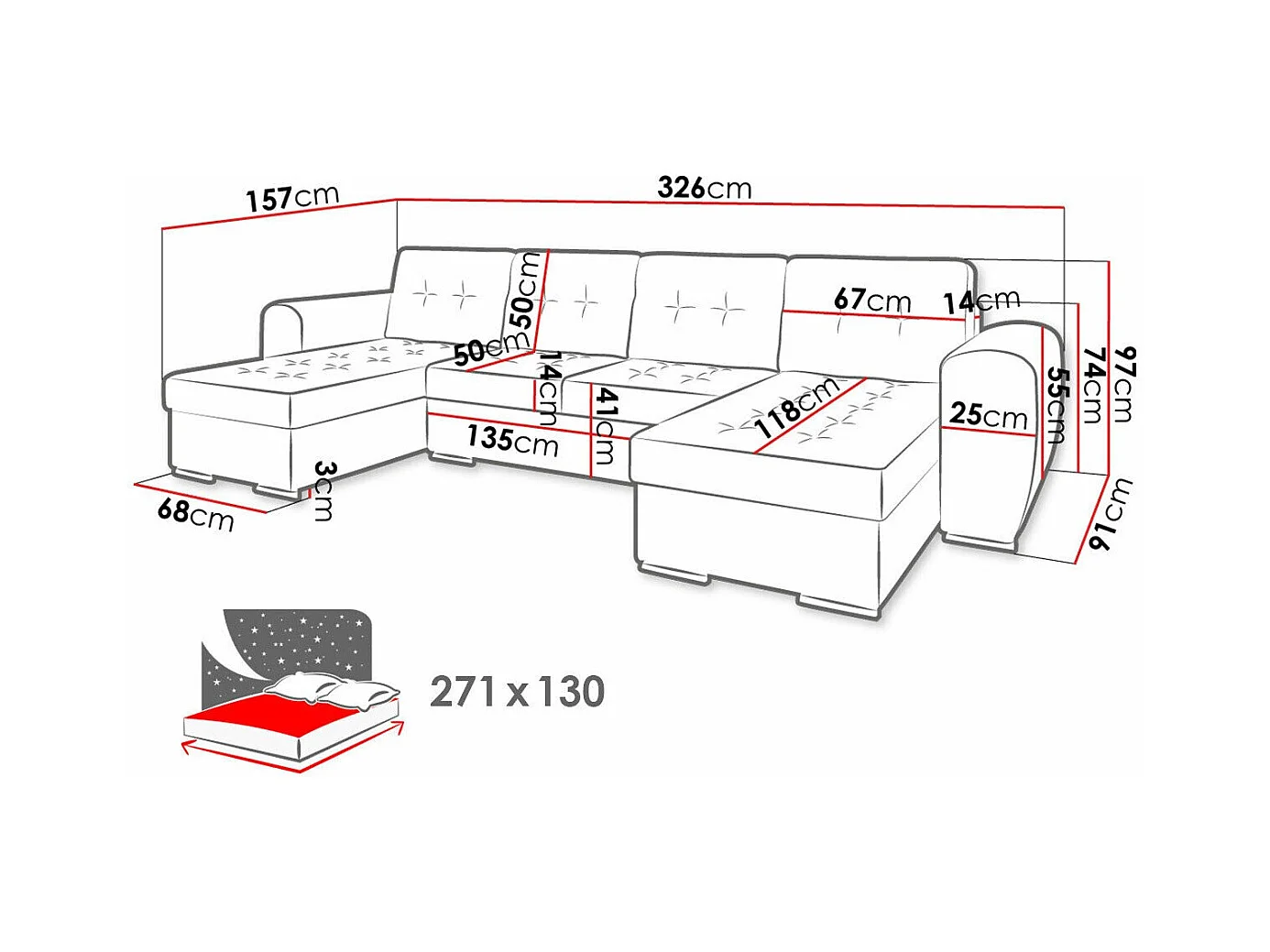 Canapé d'angle Arvada 117, Bleu, Fonction de couchage, Boîte de literie, 326x157x97cm
