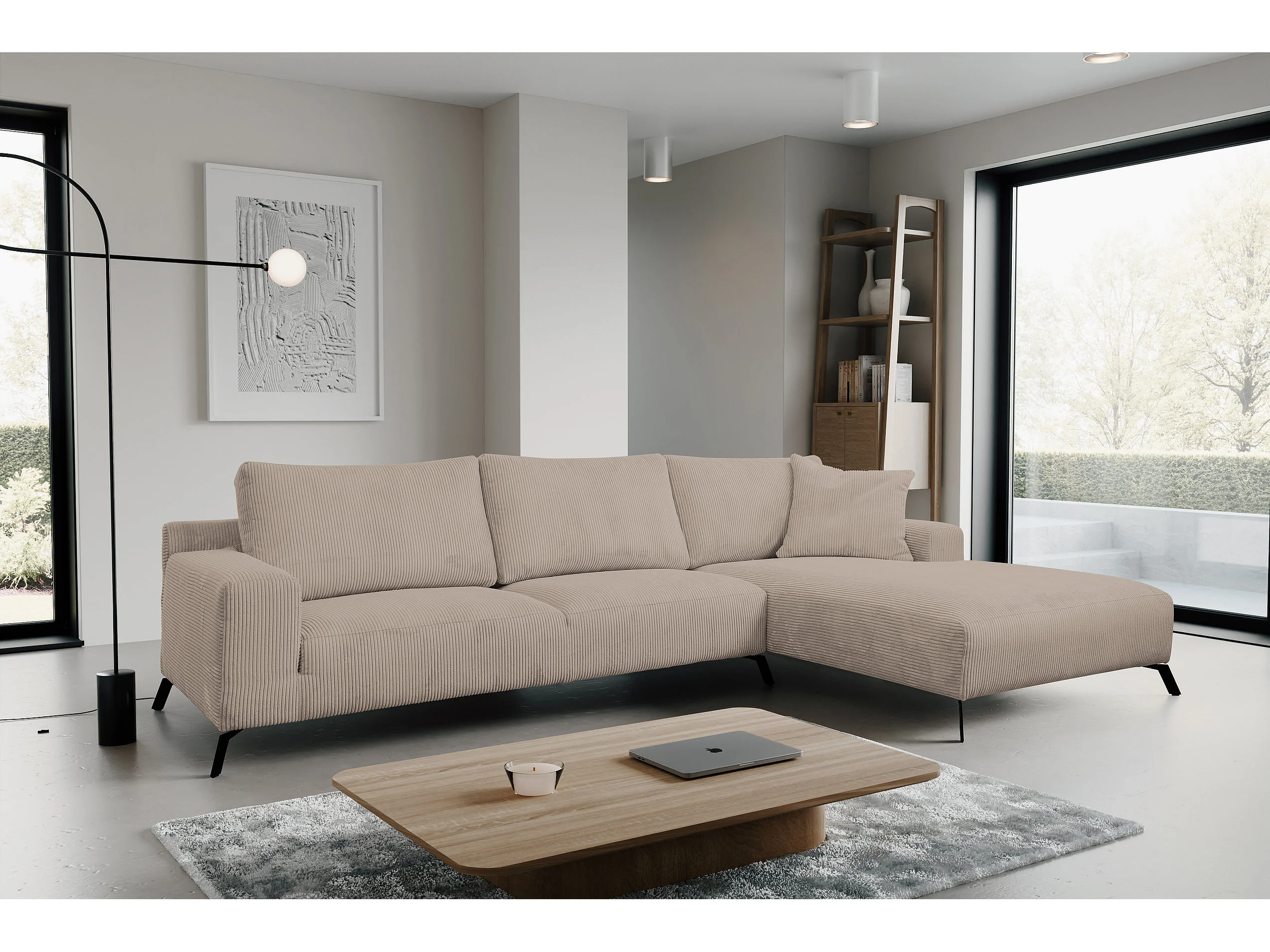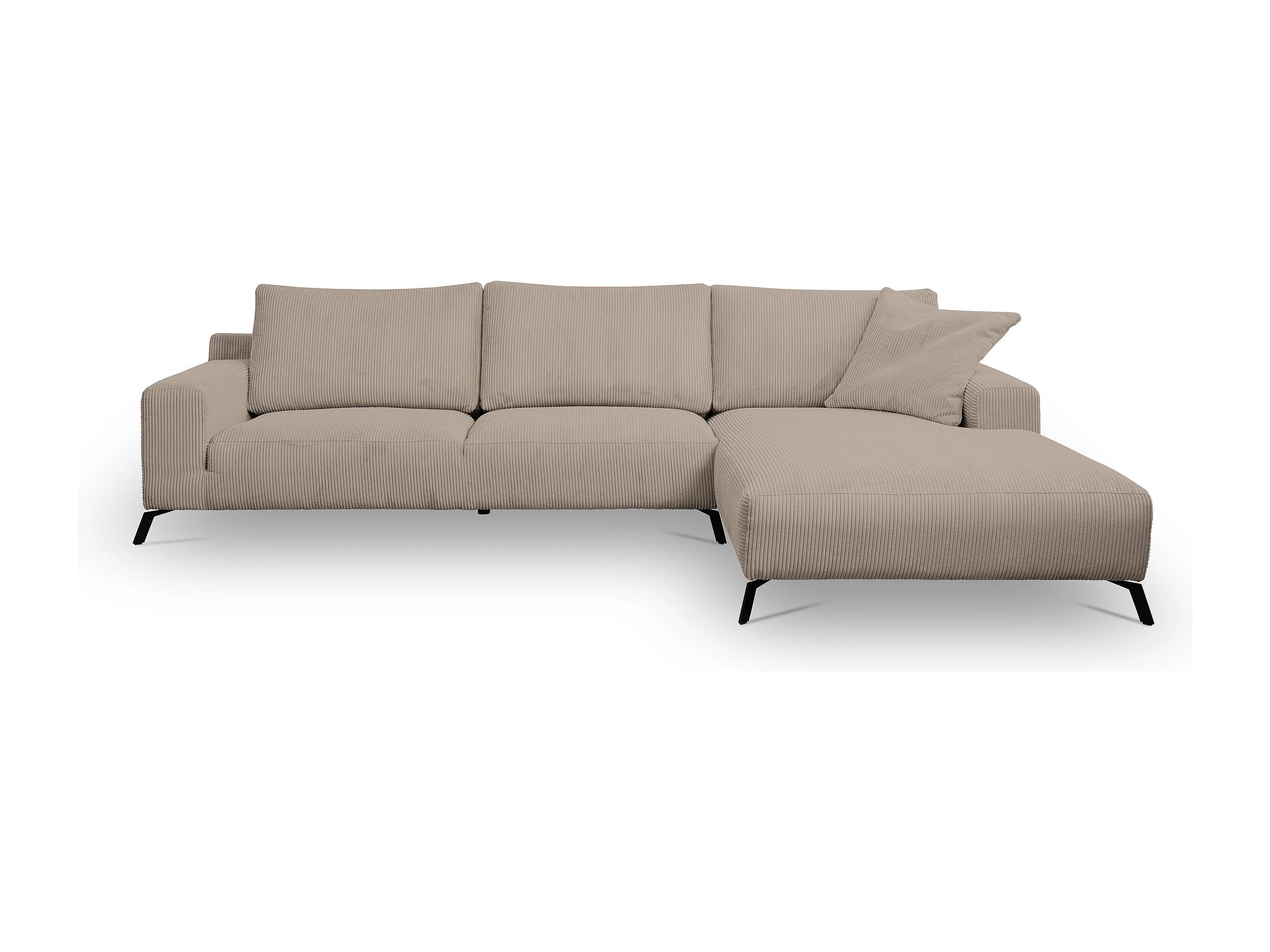 Canapé d'angle Aspen, couleur : marron, tissu velours côtelé, pouf à droite