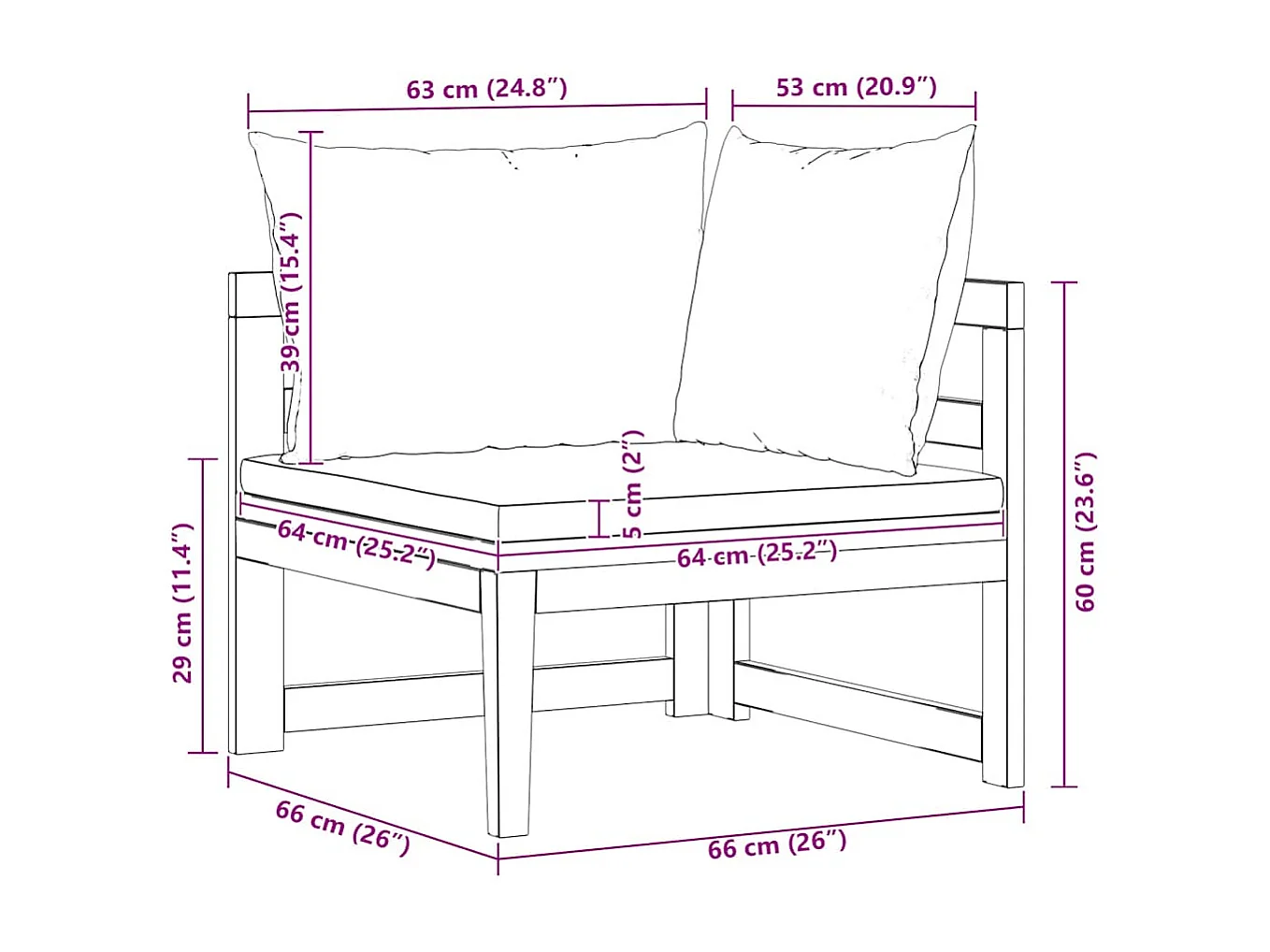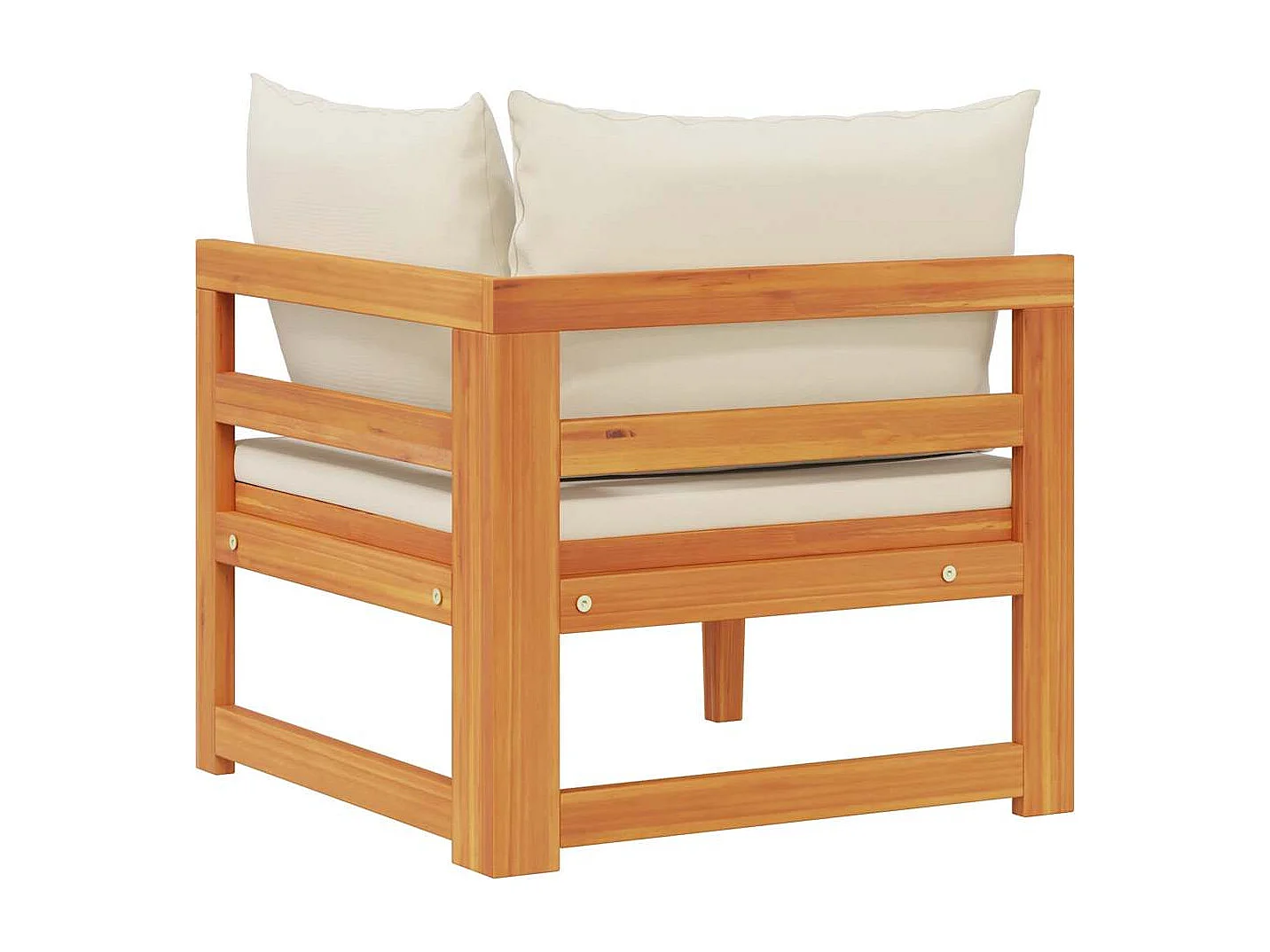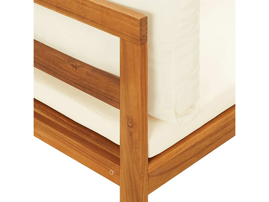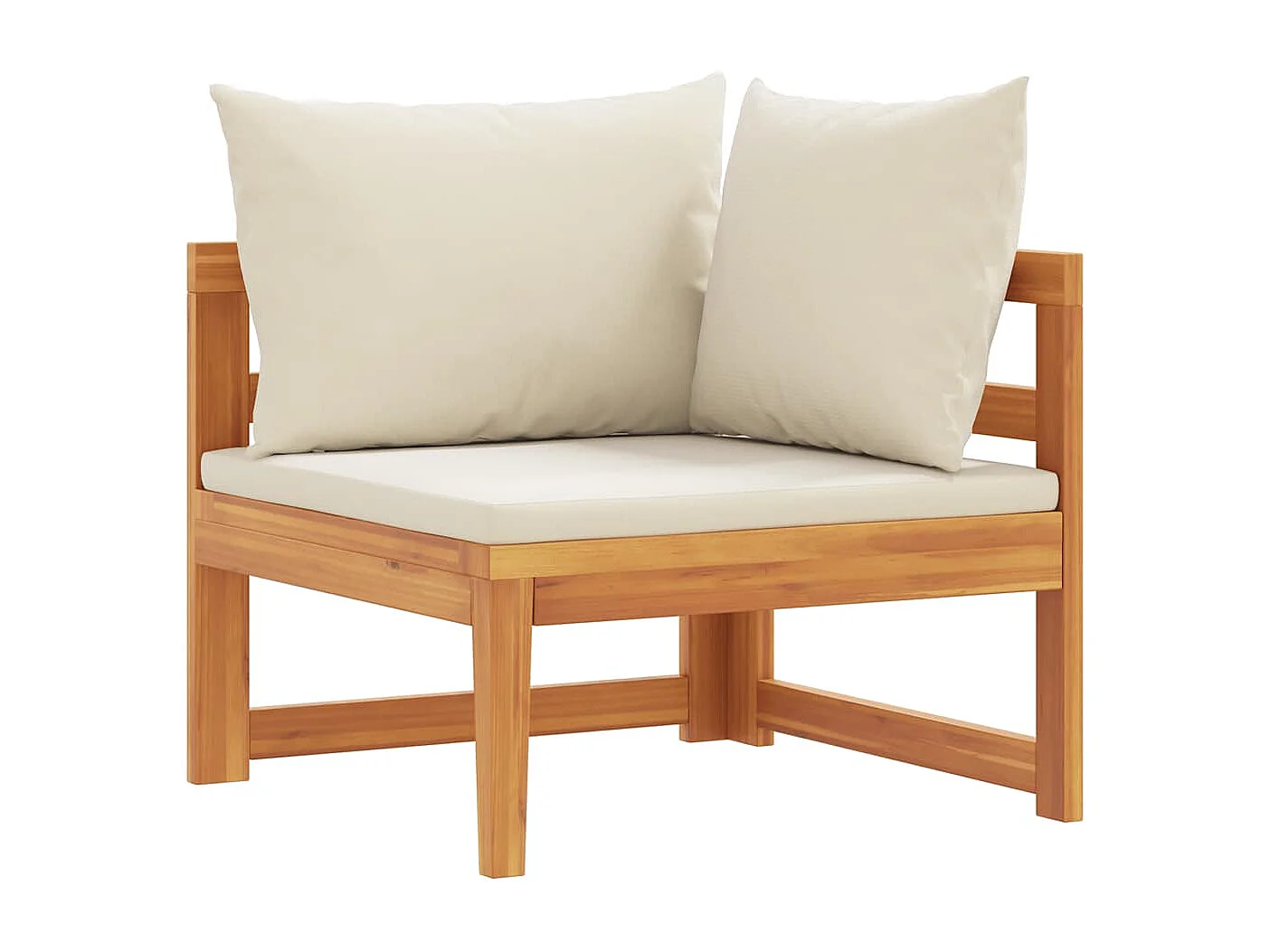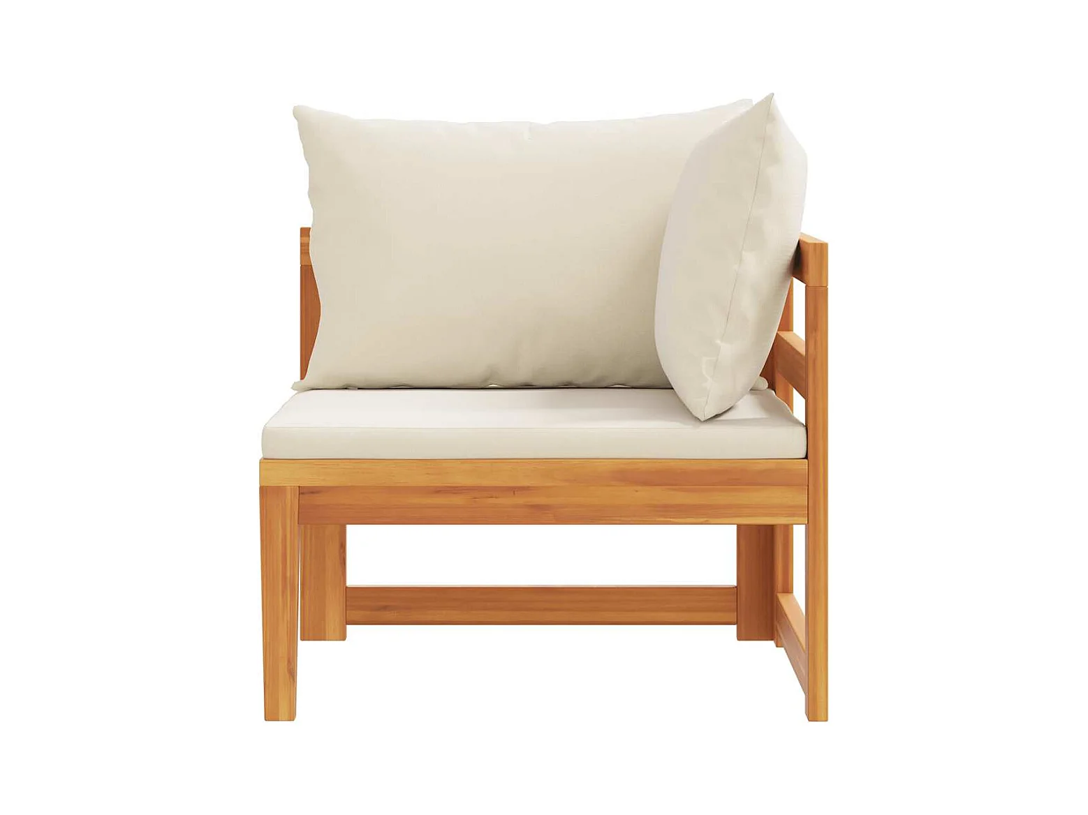Canapé d'angle avec coussins blanc crème Bois d'acacia solide