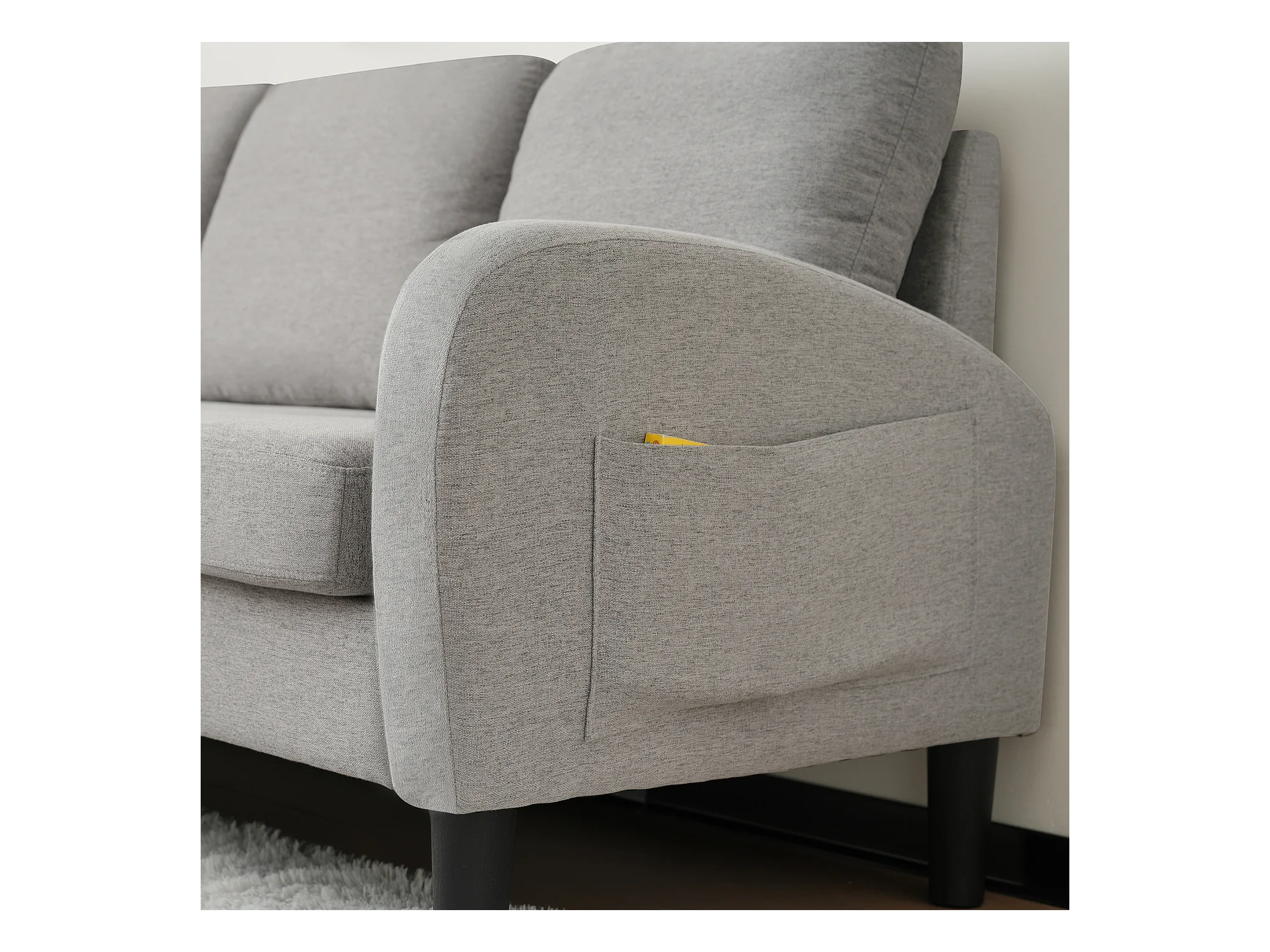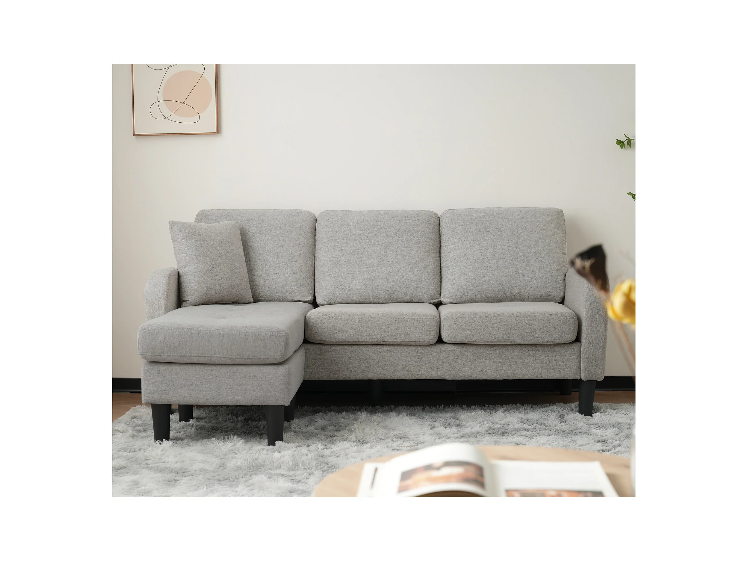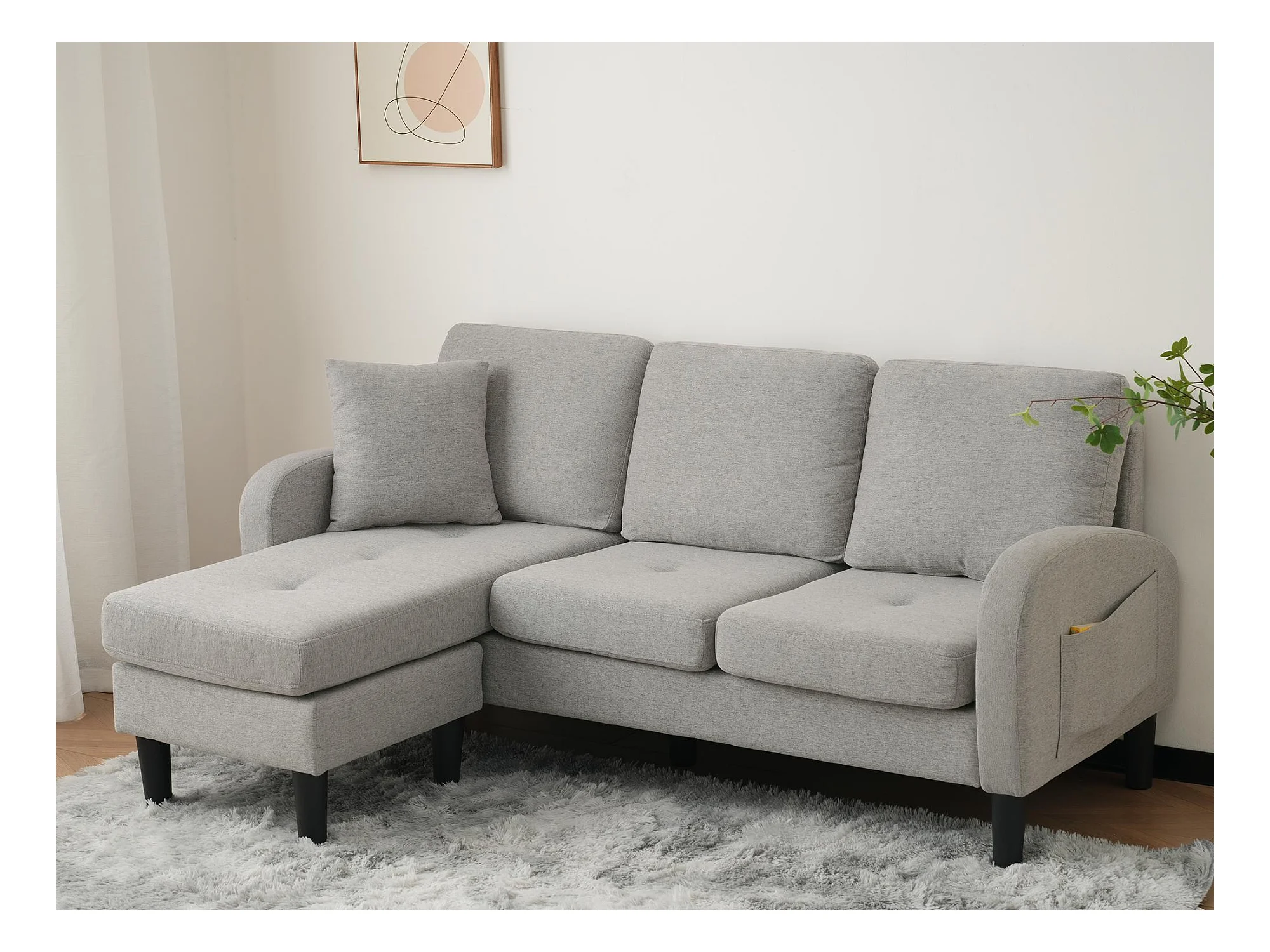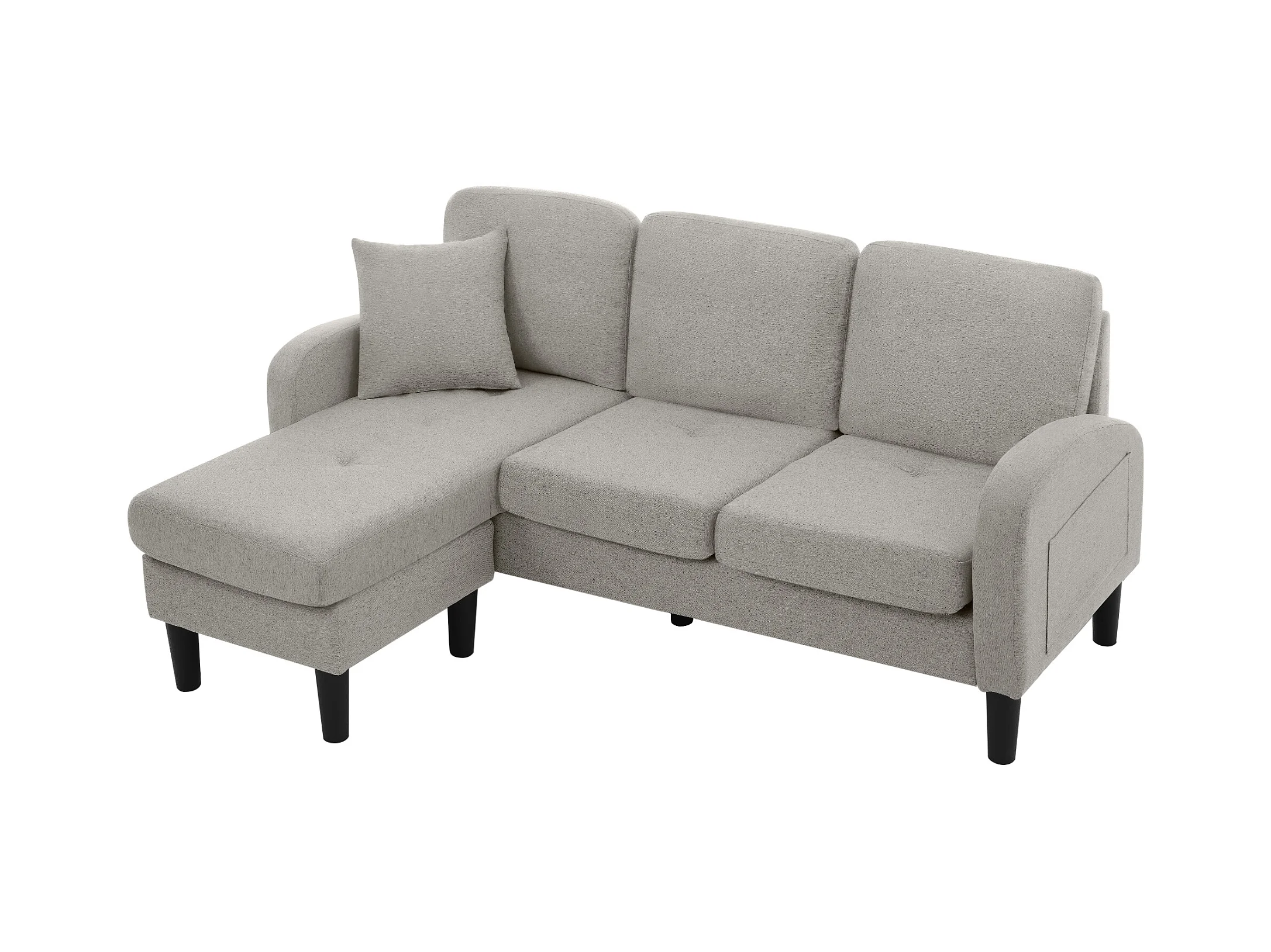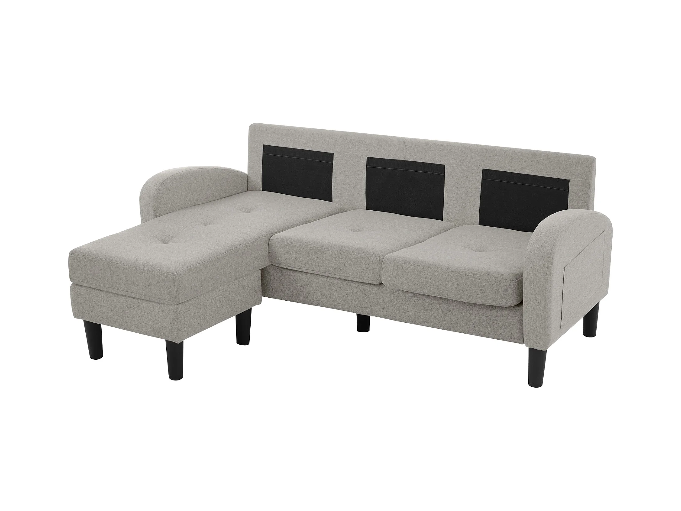 Canapé d'angle avec méridienne - 3 places - tissu en coton et lin - Gris