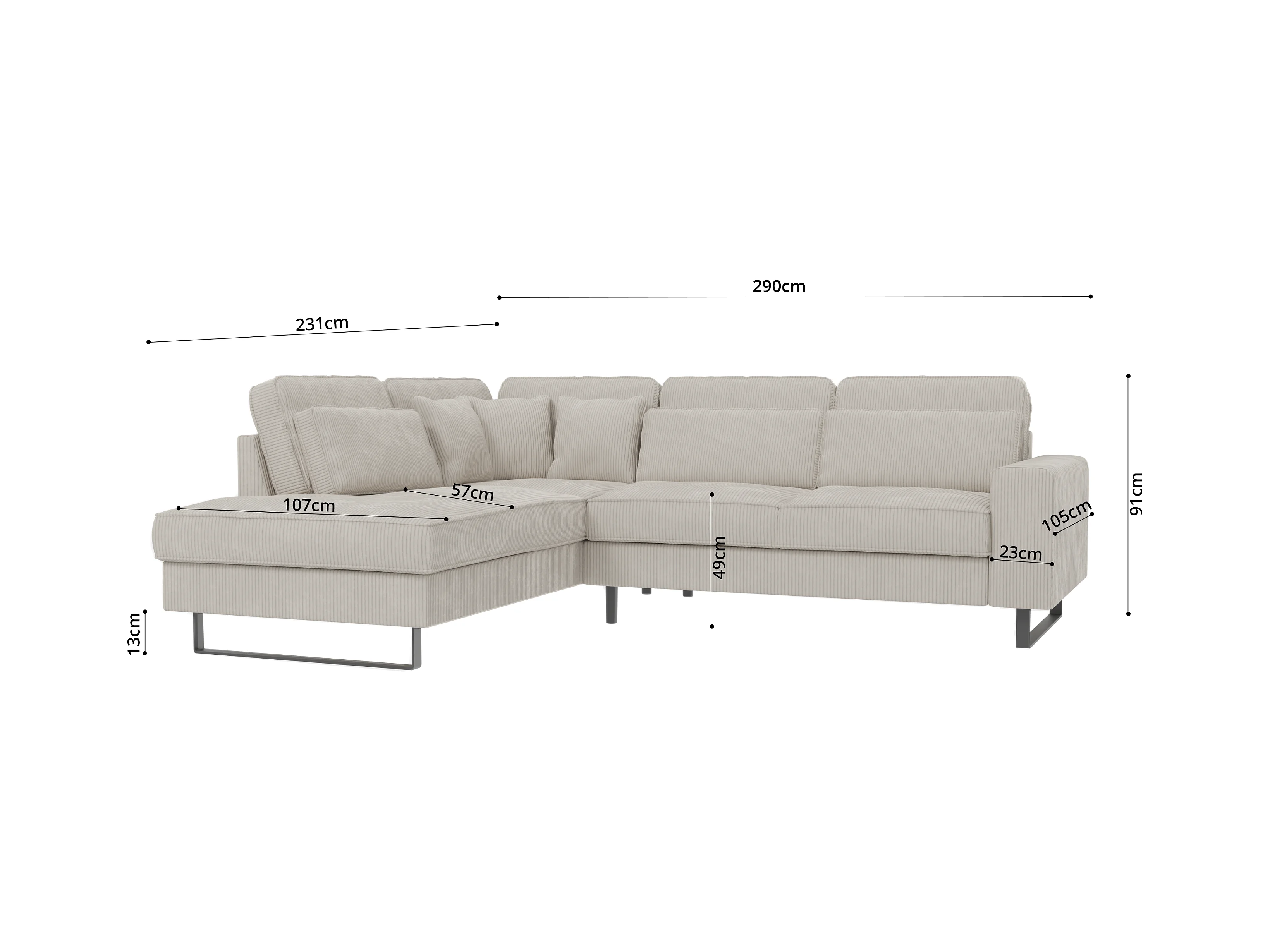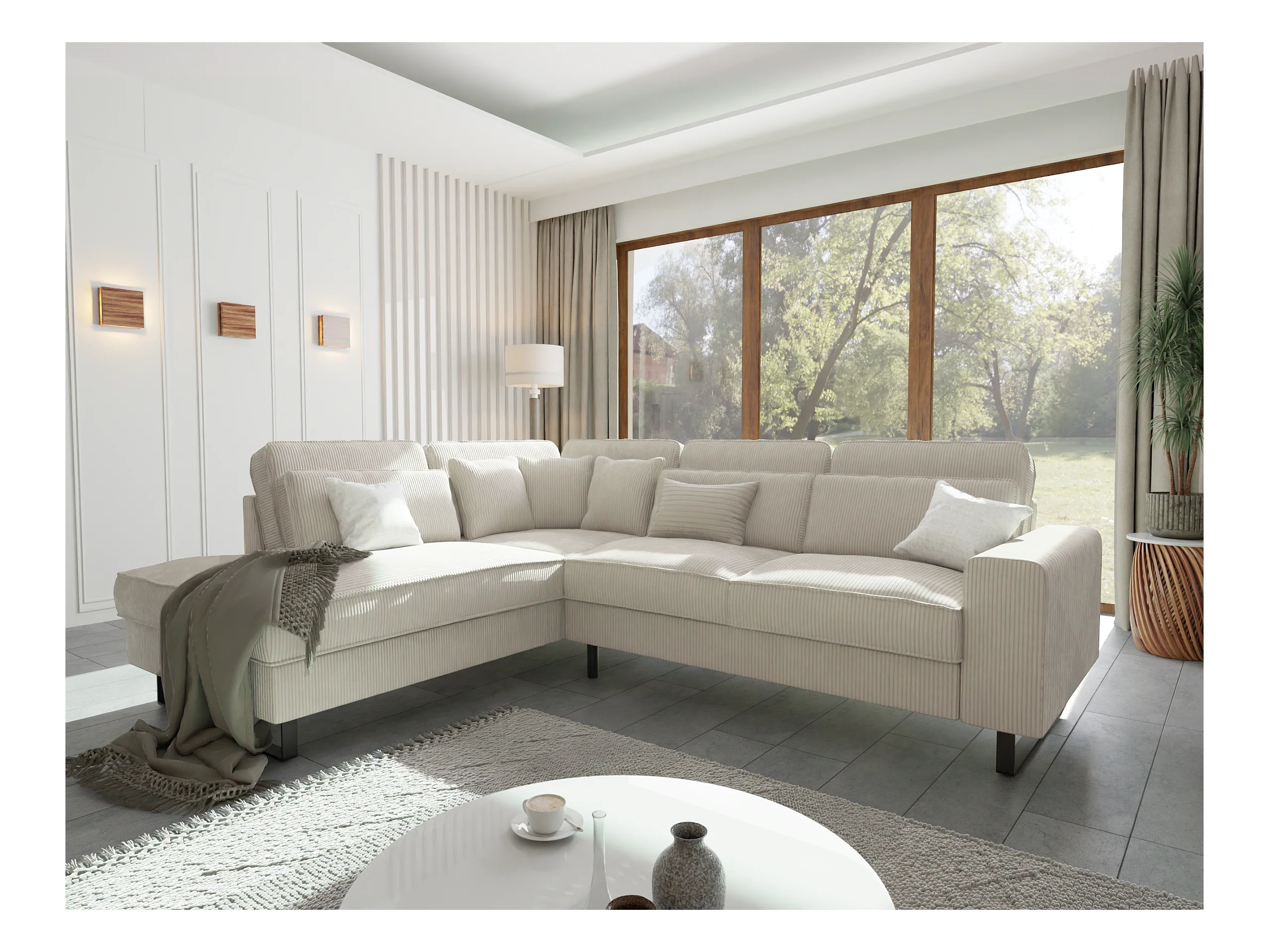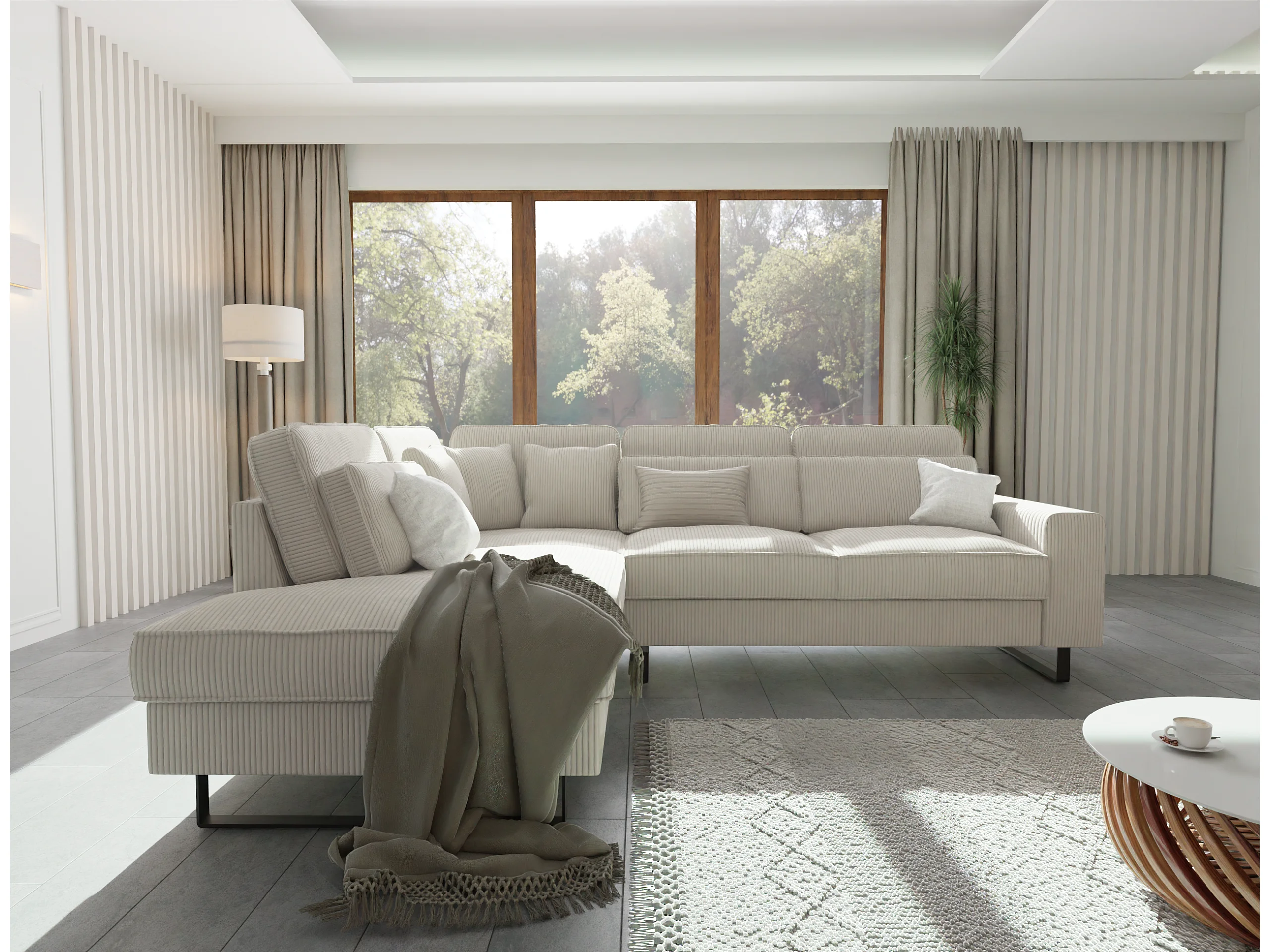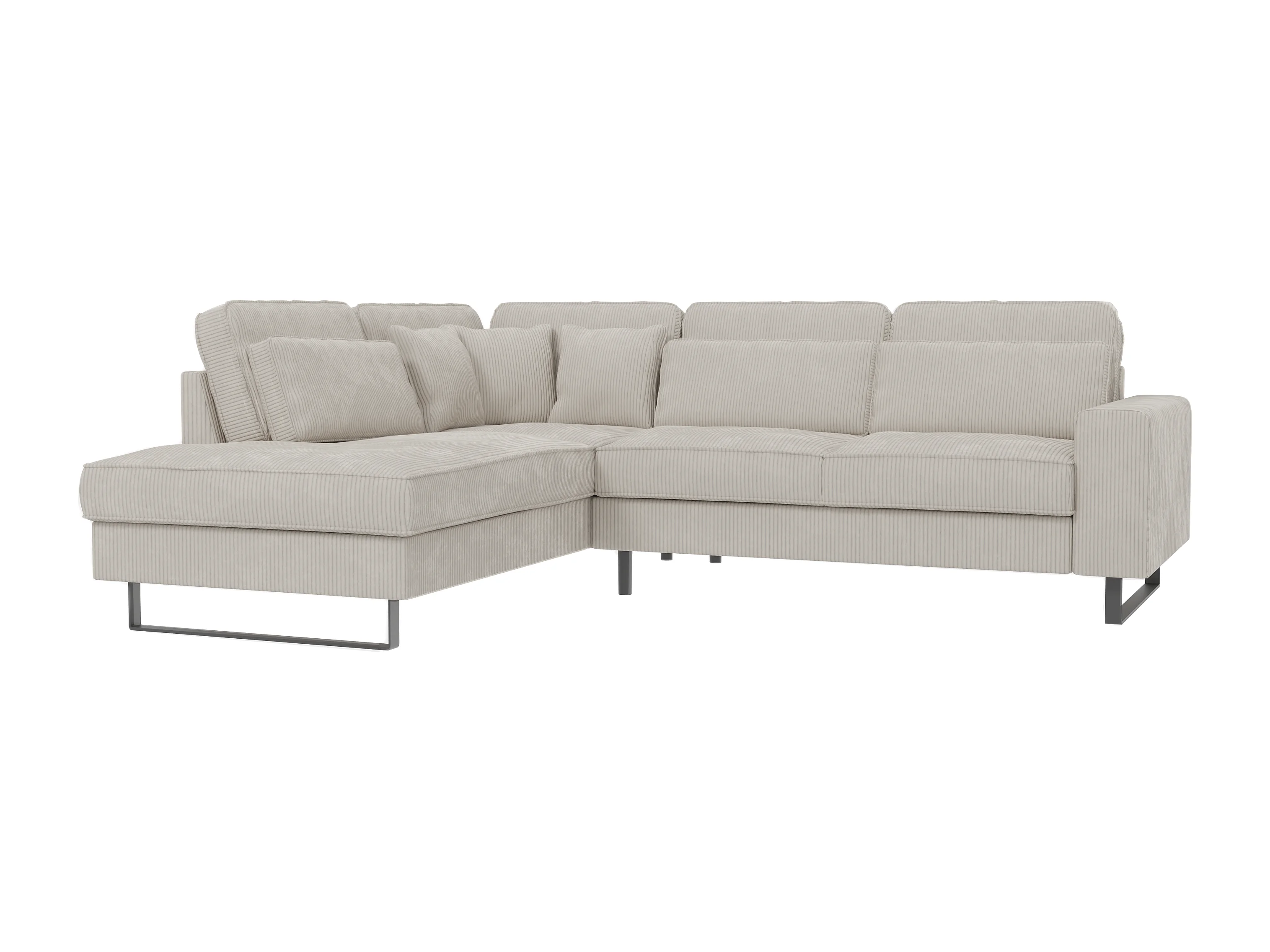 Canapé d’angle avec ottomane et pieds en métal noir, en tissu côtelé beige DUSK
