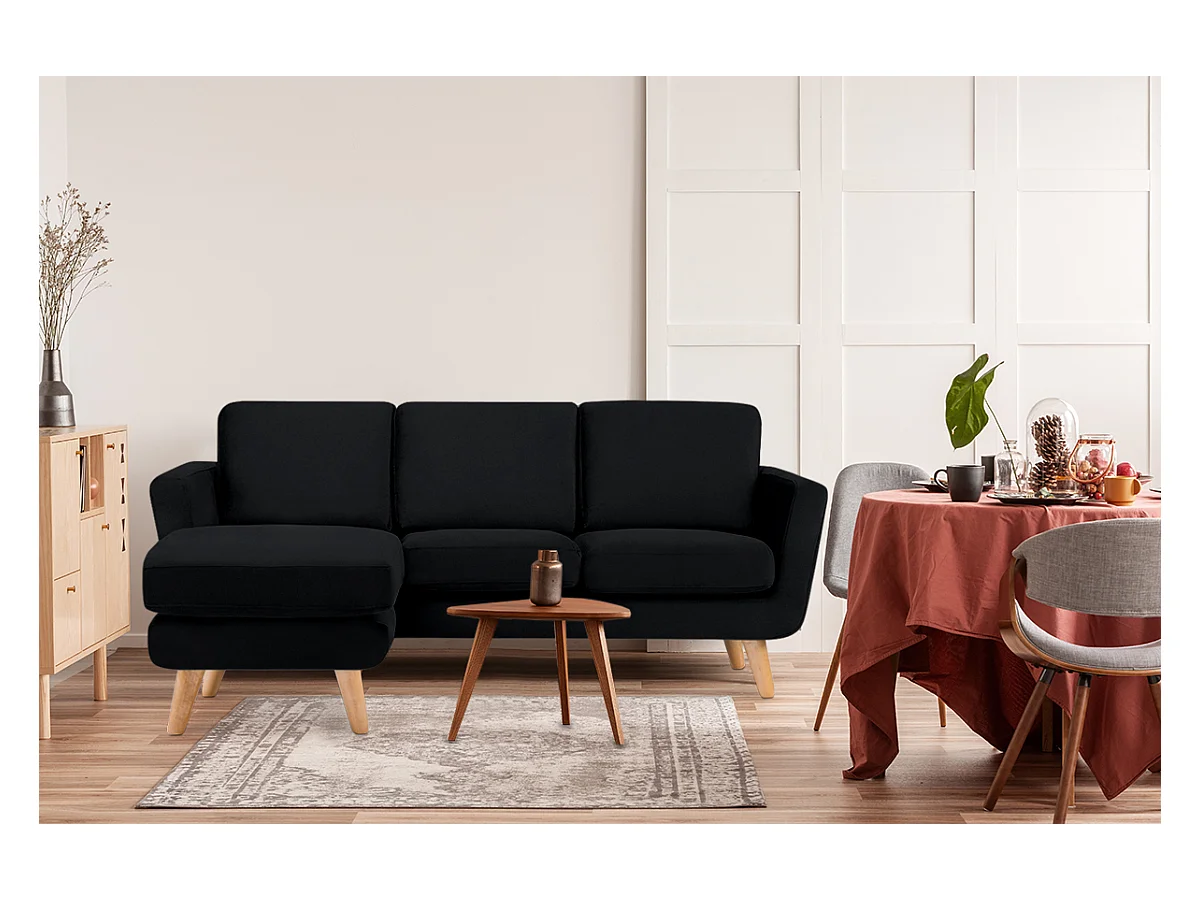 Canapé d'angle avec pouf - 3 places - Noir - TAGIO