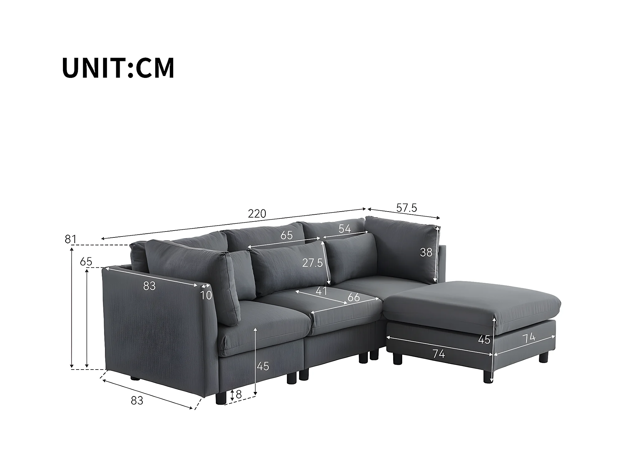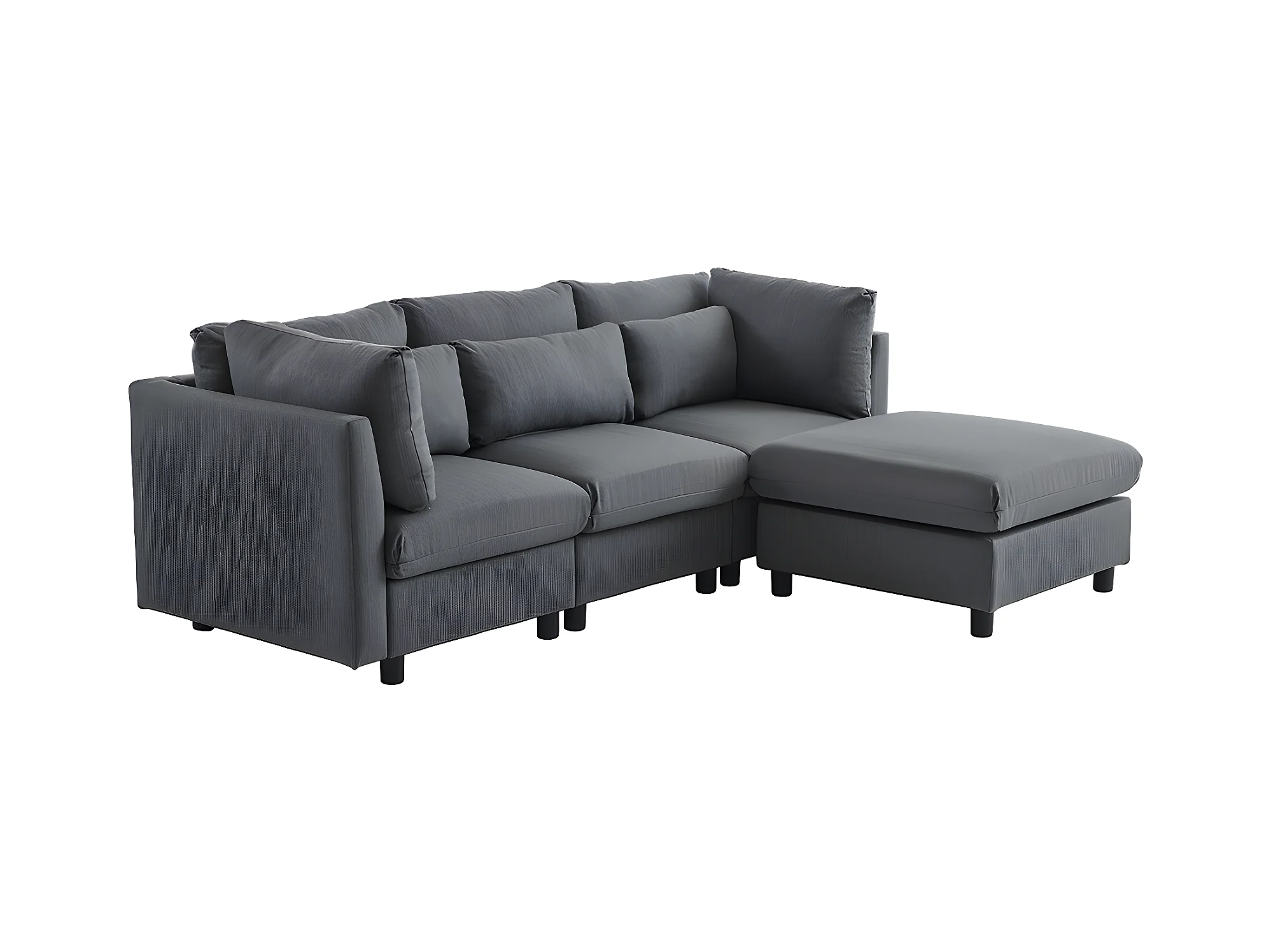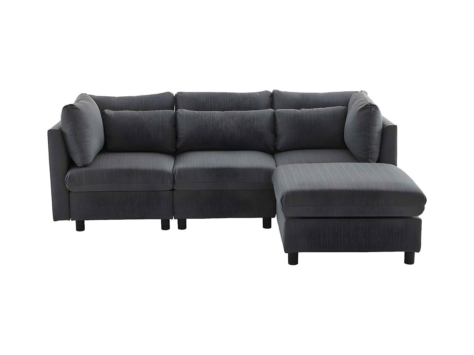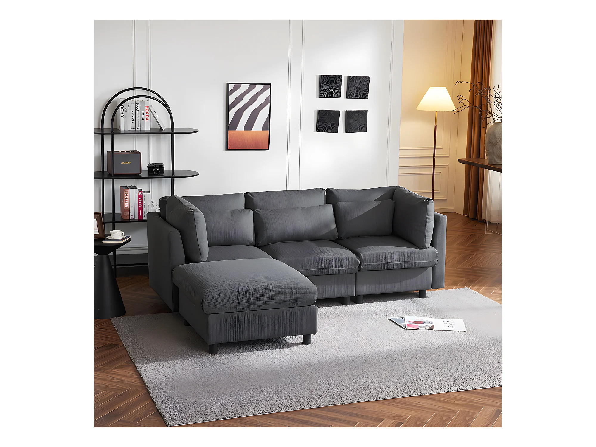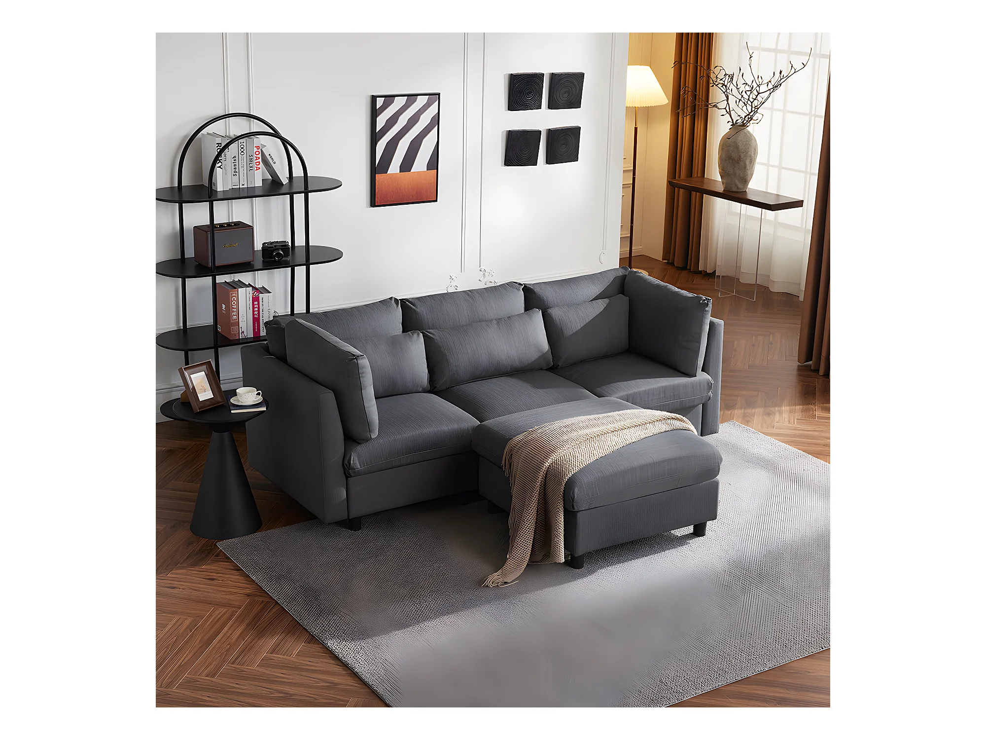 Canapé d'angle avec repose-pieds Canapé trois places en forme de L Design moderne Meubles rembourrés de salon Gris foncé