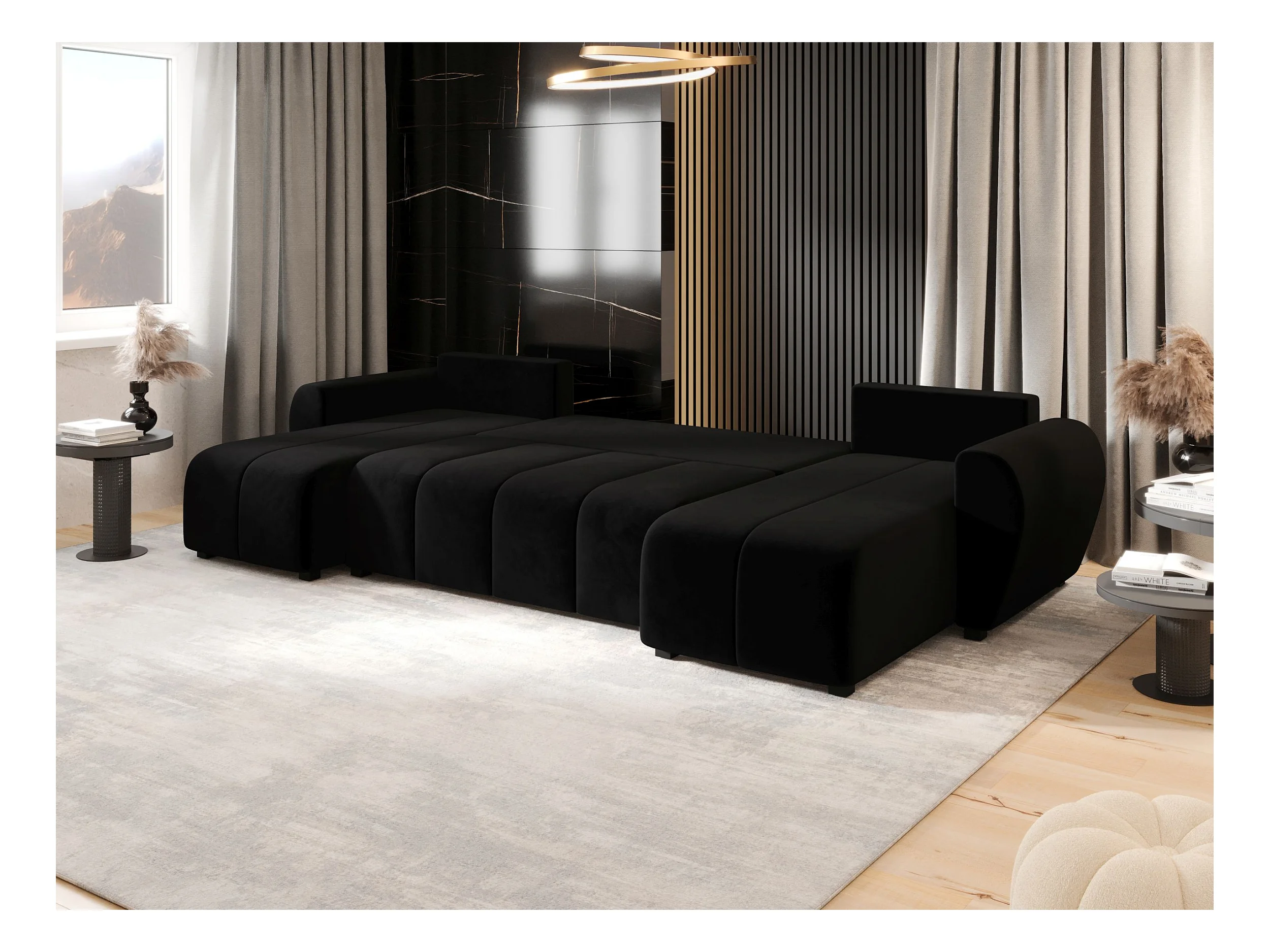 Canapé d'angle BEDANTE MOLISA U itaka 15 noir avec fonction couchage Canapé d'angle en forme de U avec espace de rangement Coffre à literie