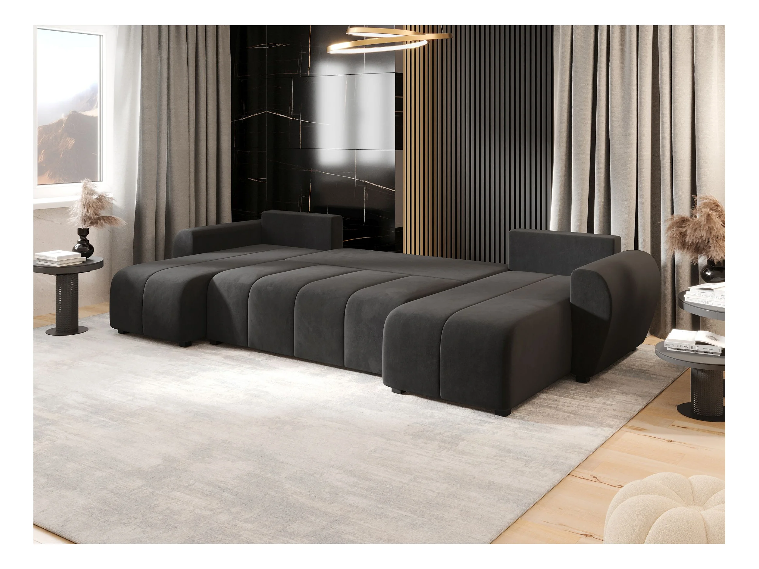 Canapé d'angle BEDANTE MOLISA U itaka 27 noir avec fonction couchage Canapé d'angle en forme de U avec espace de rangement Coffre à literie