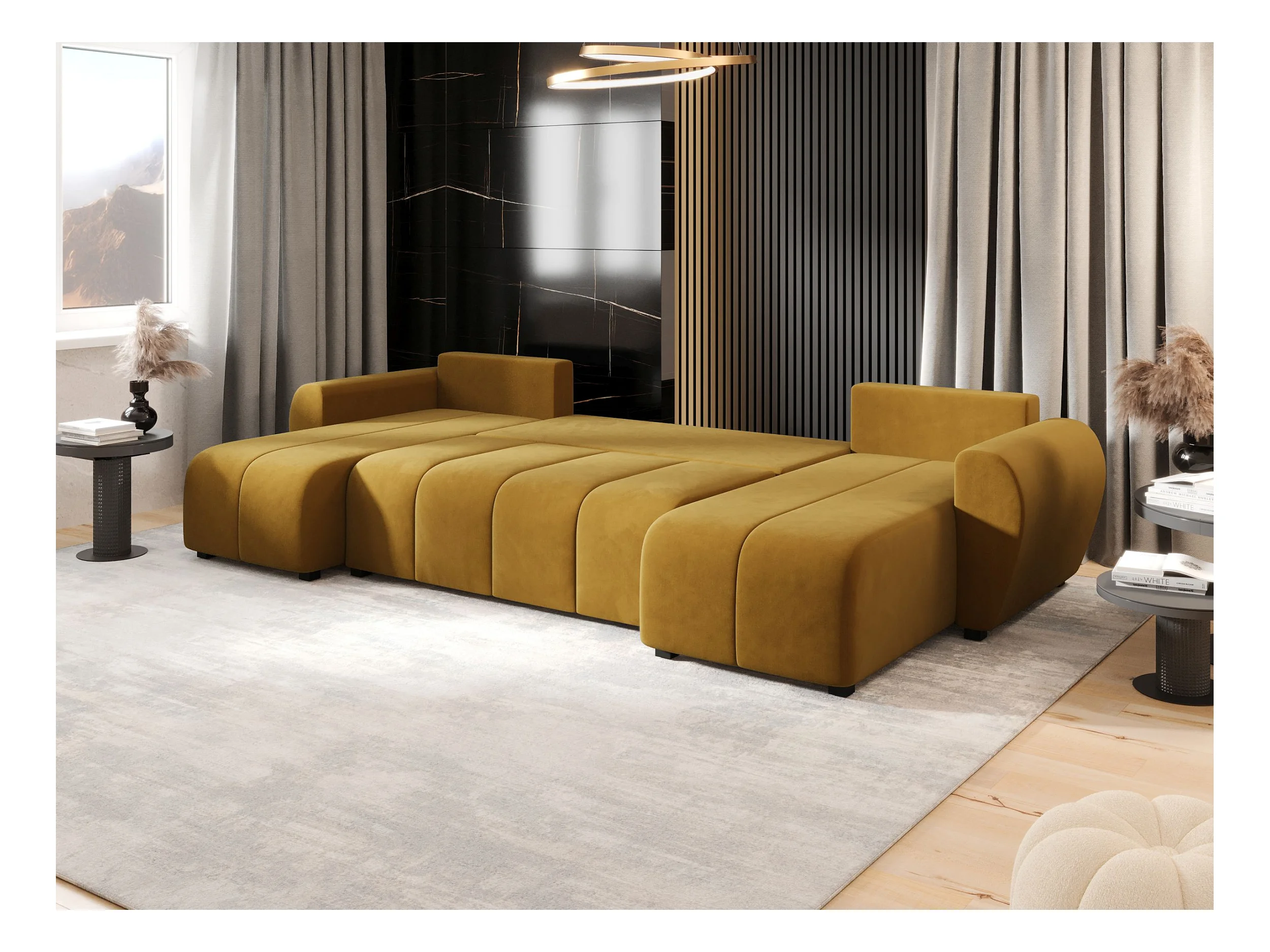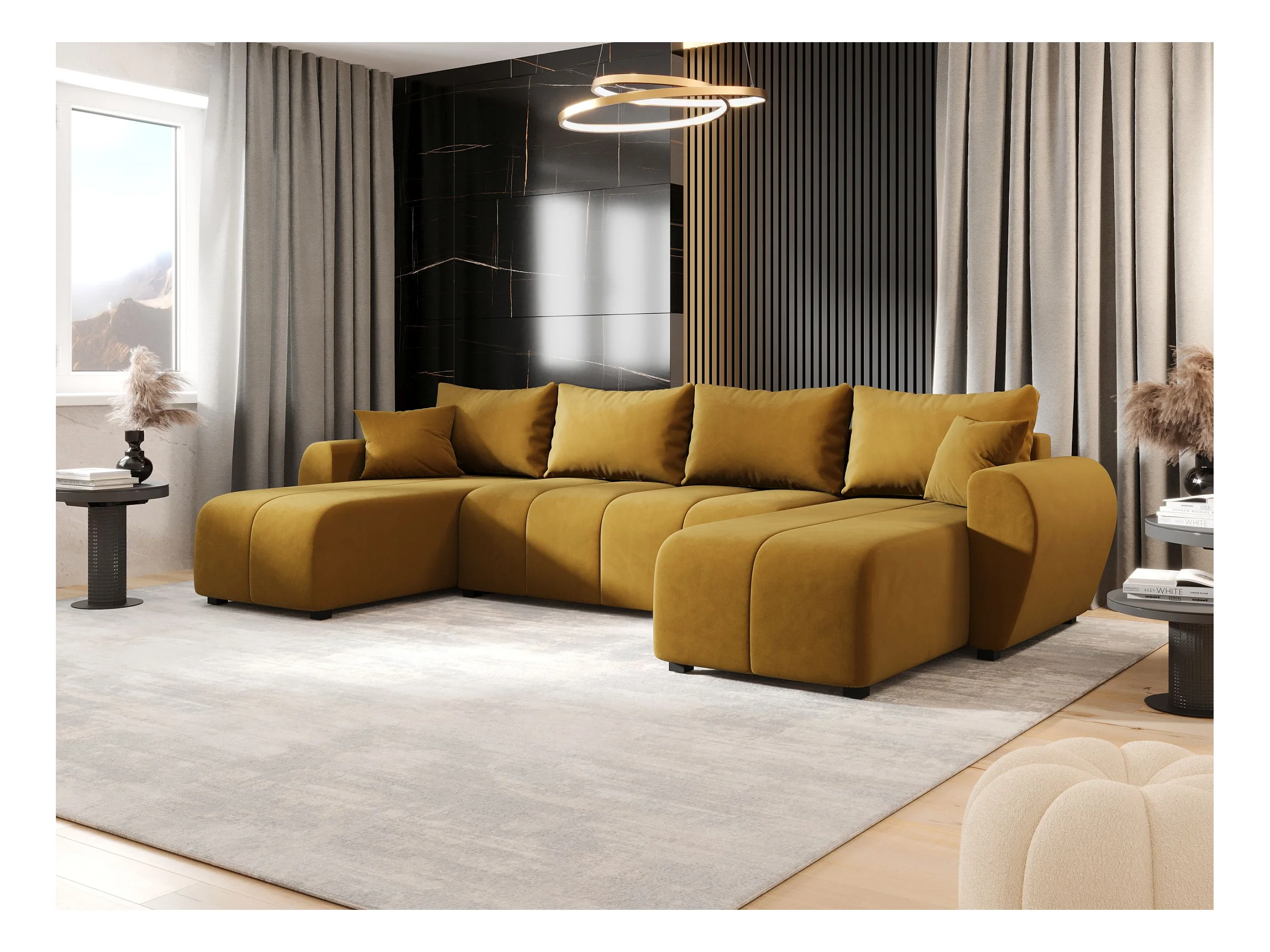 Canapé d'angle BEDANTE MOLISA U itaka 33 noir avec fonction couchage Canapé d'angle en forme de U avec espace de rangement Coffre à literie