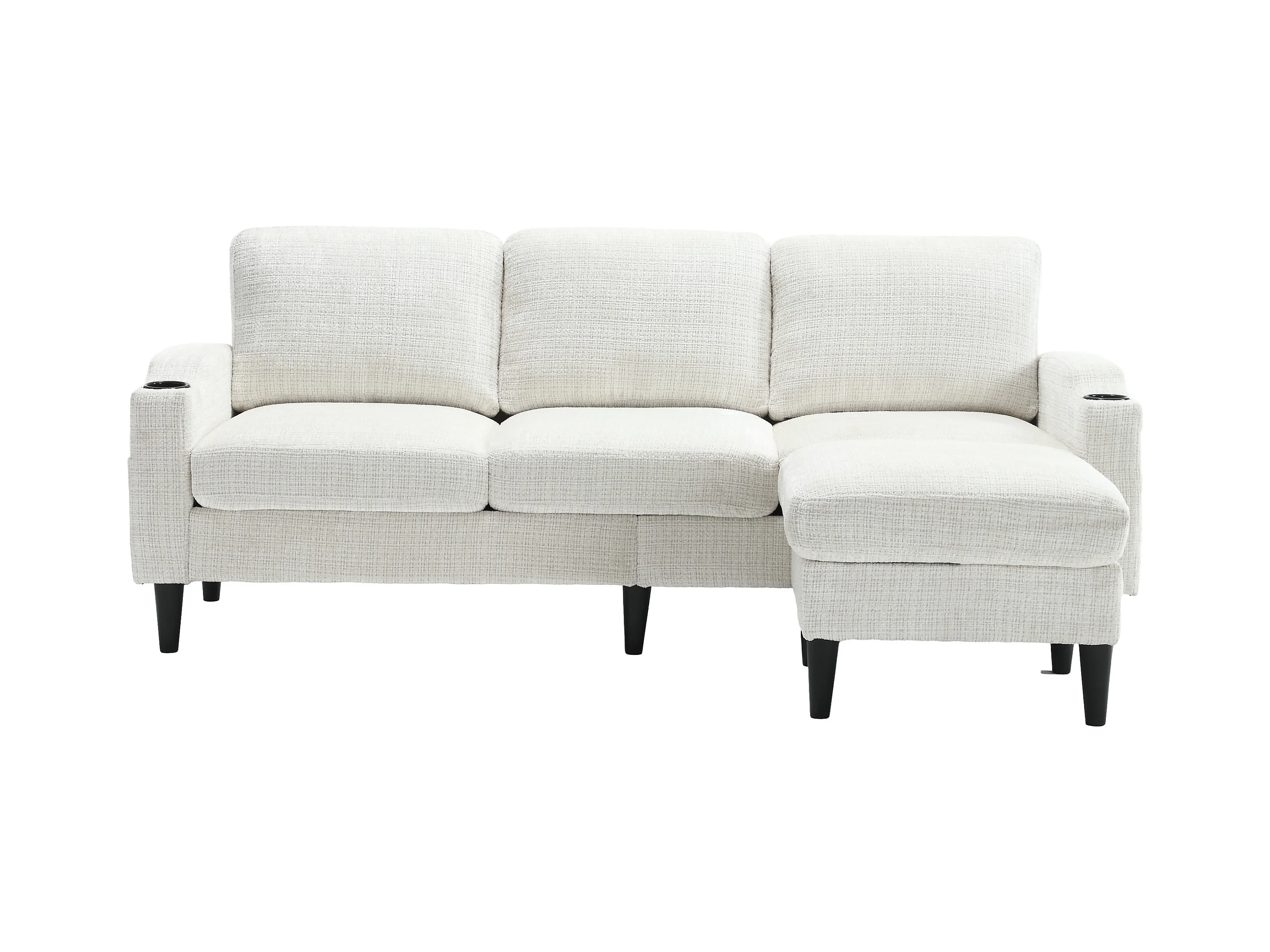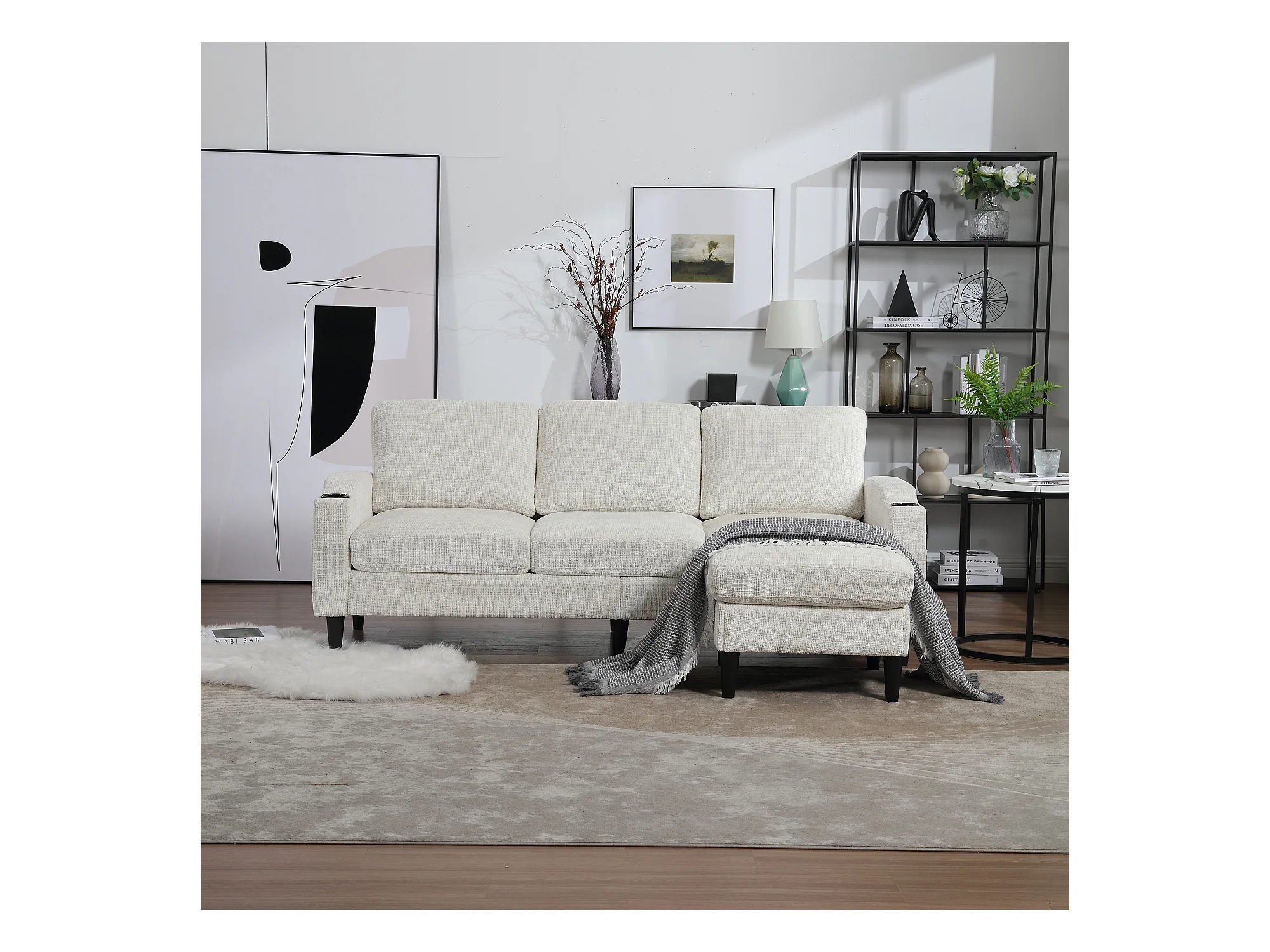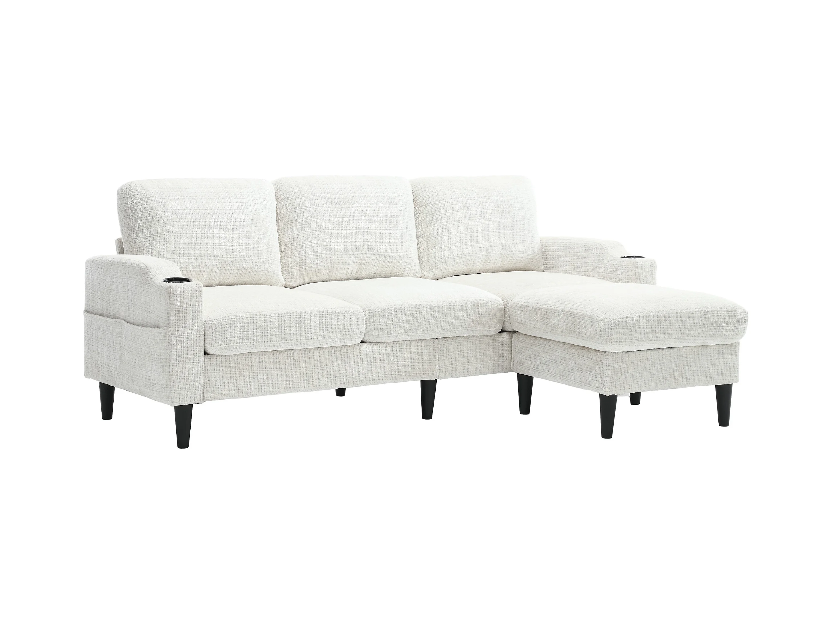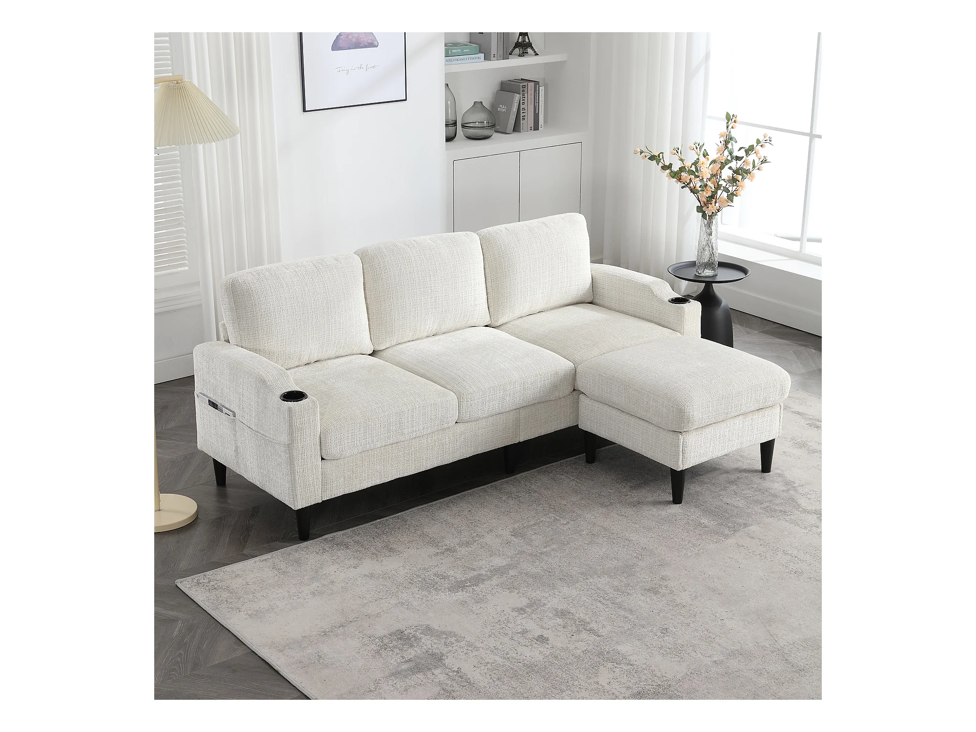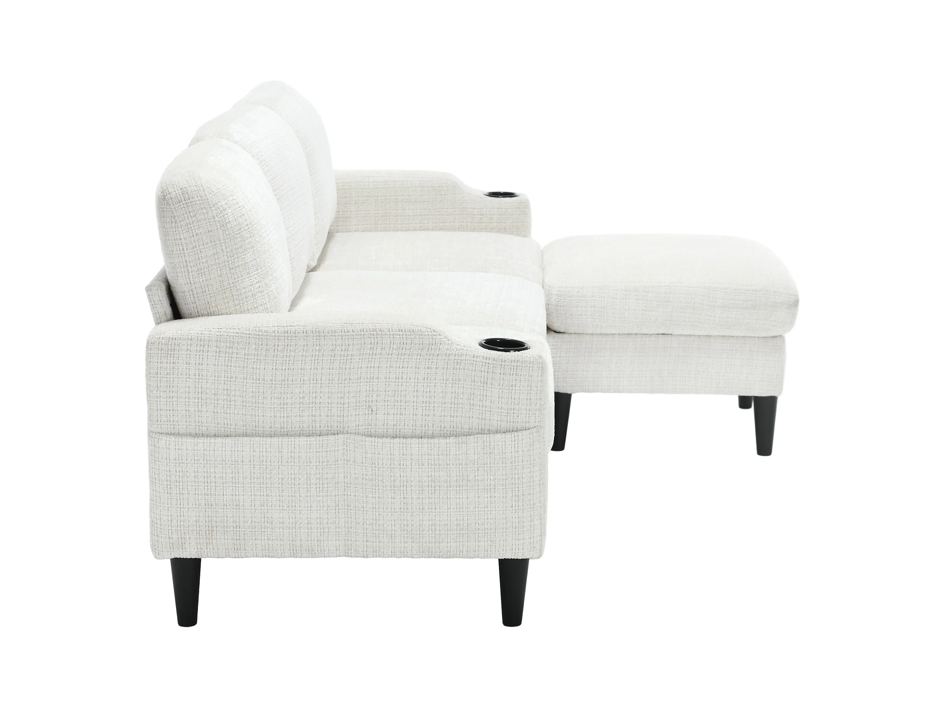 Canapé d'angle beige - Canapé avec repose-pieds et rangement - porte-gobelet et poche de rangement