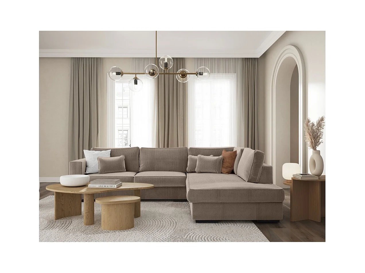 Canapé d'angle droit Belami XXL 6 places en velours côtelé - Taupe - L303 x P228 x H86cm - Loungitude