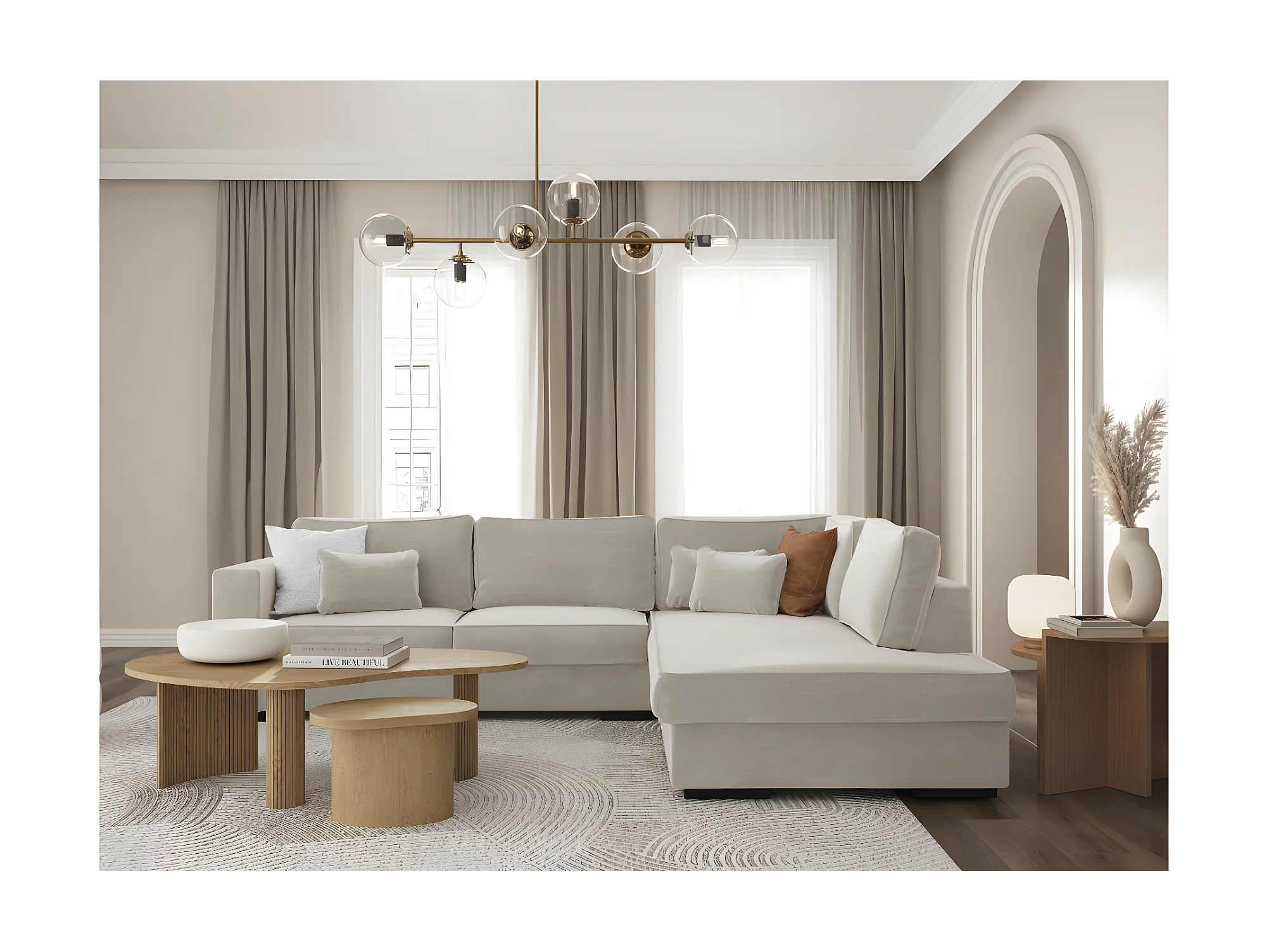 Canapé d'angle droit XXL Belami 6 places en tissu - Beige - L303 x 228 x 86cm - Loungitude