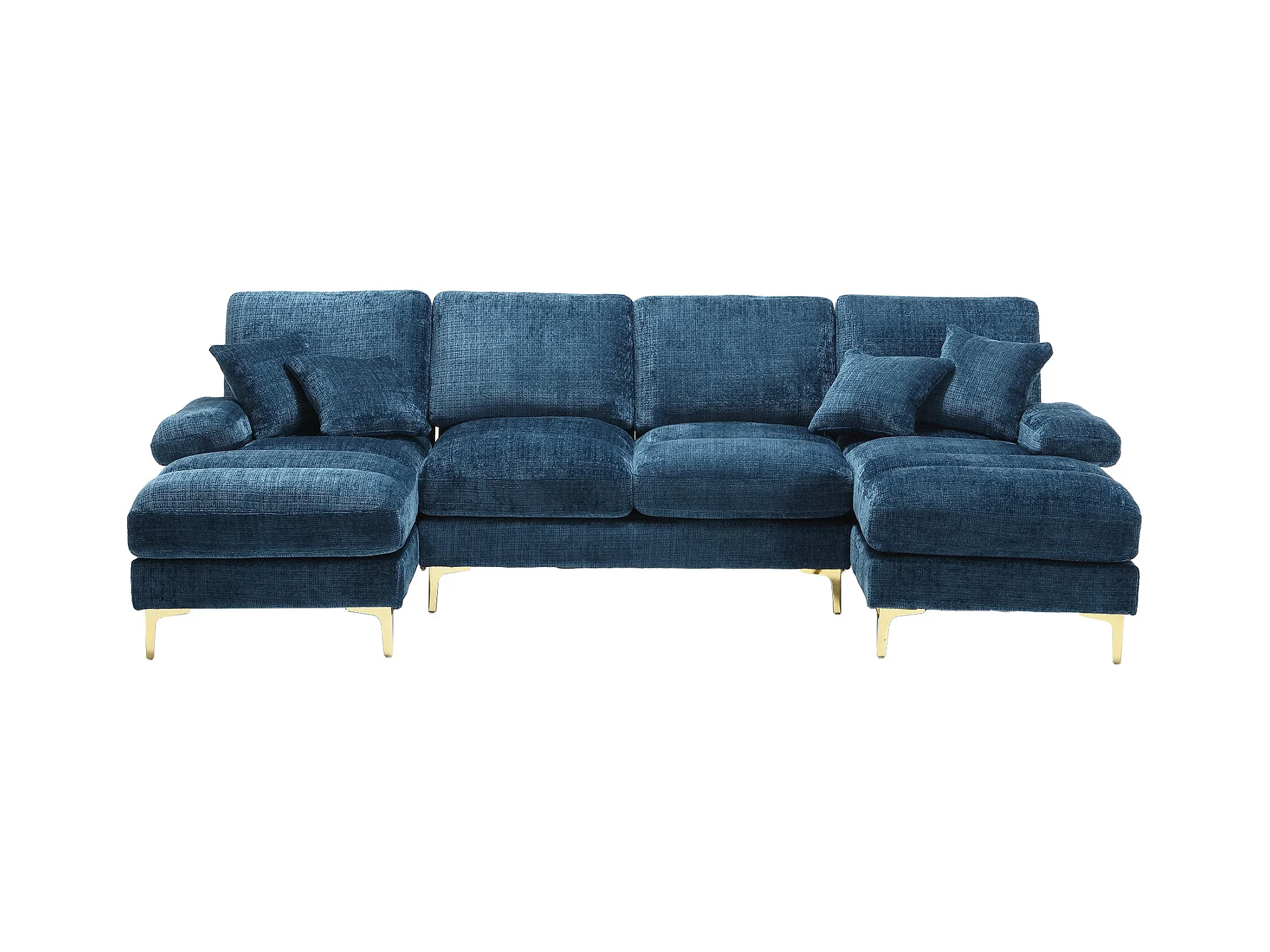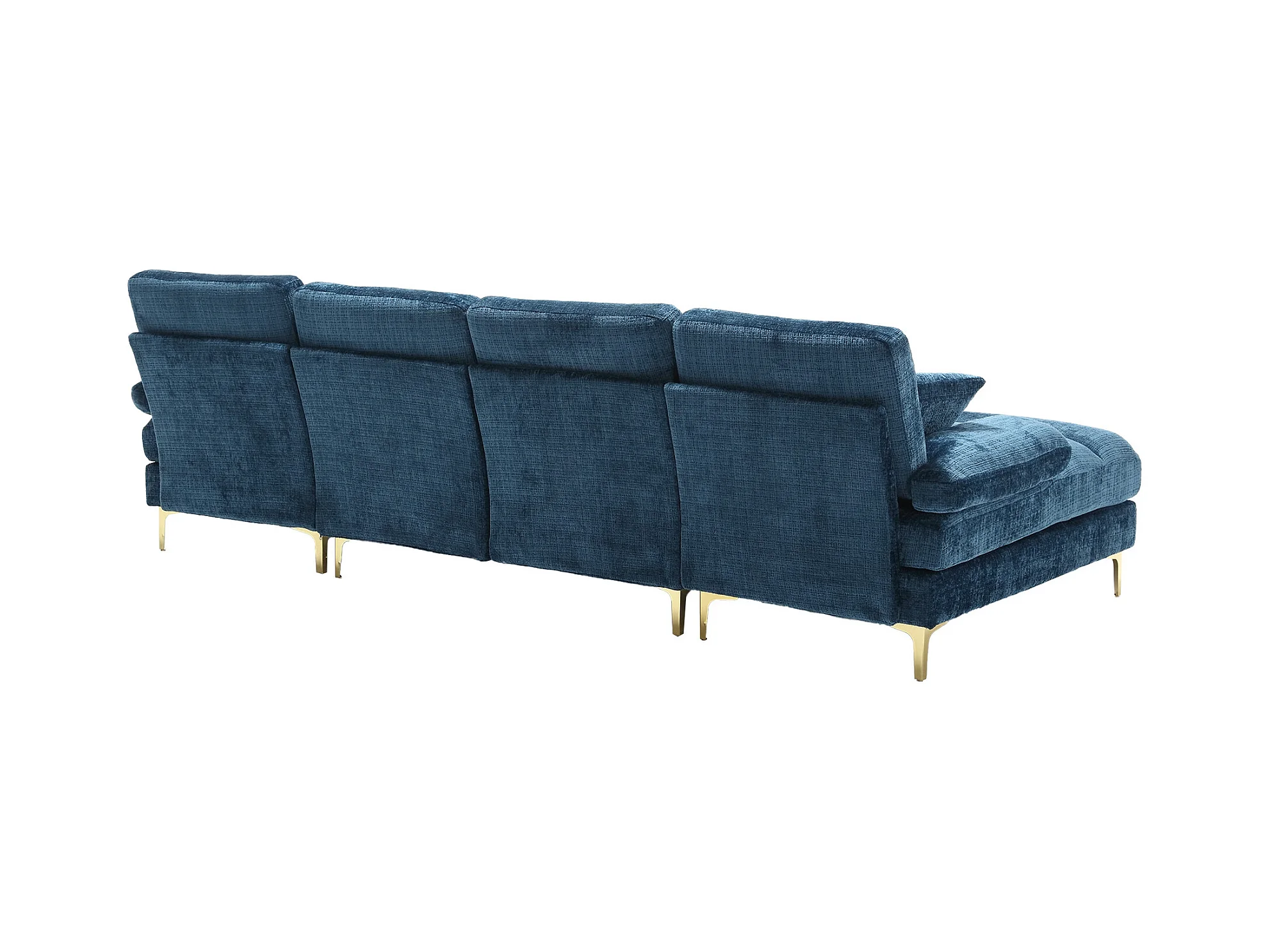 Canapé d'angle bleu - Canapé 4 places avec assises et coussins - pour salon et chambre