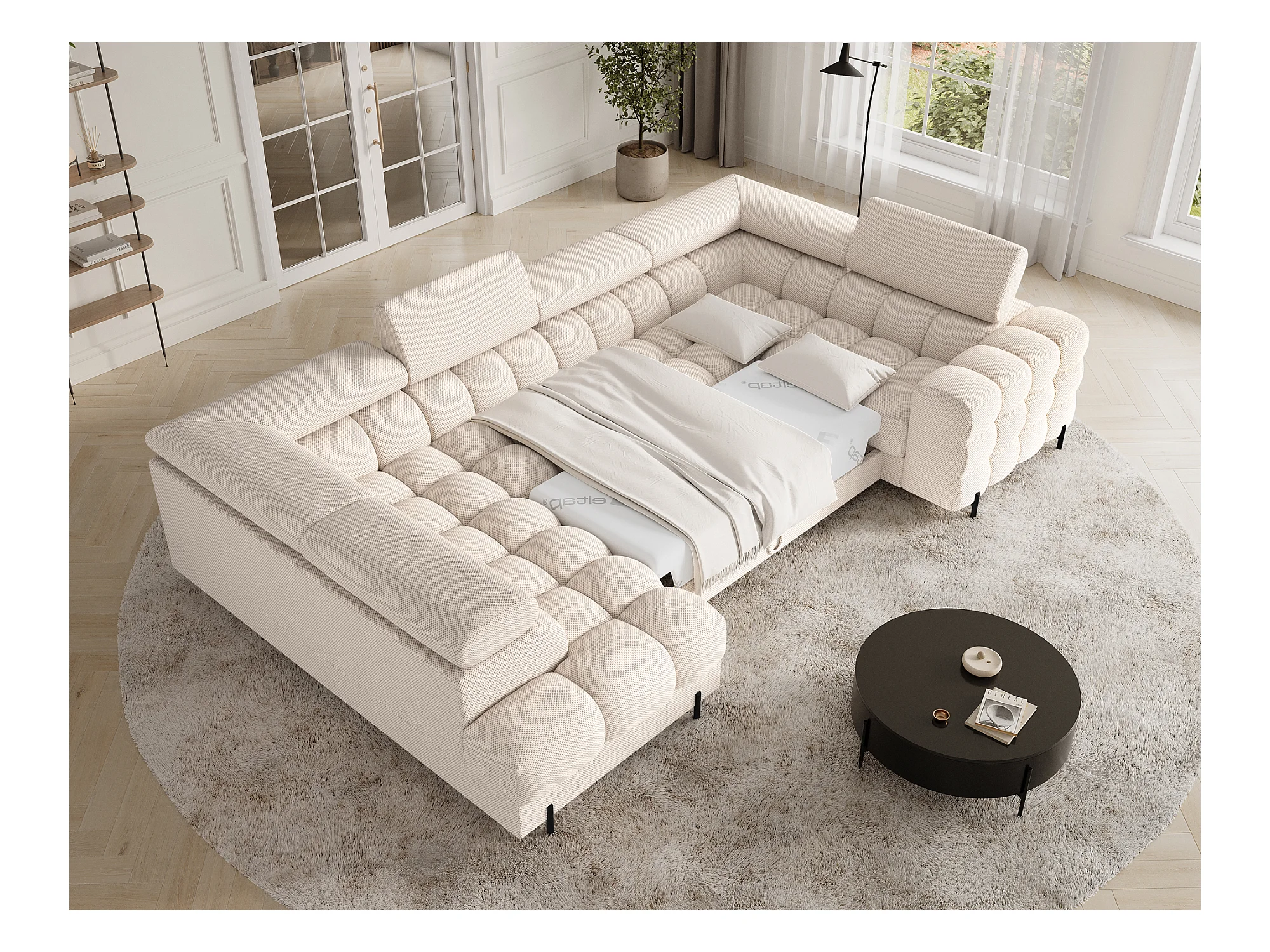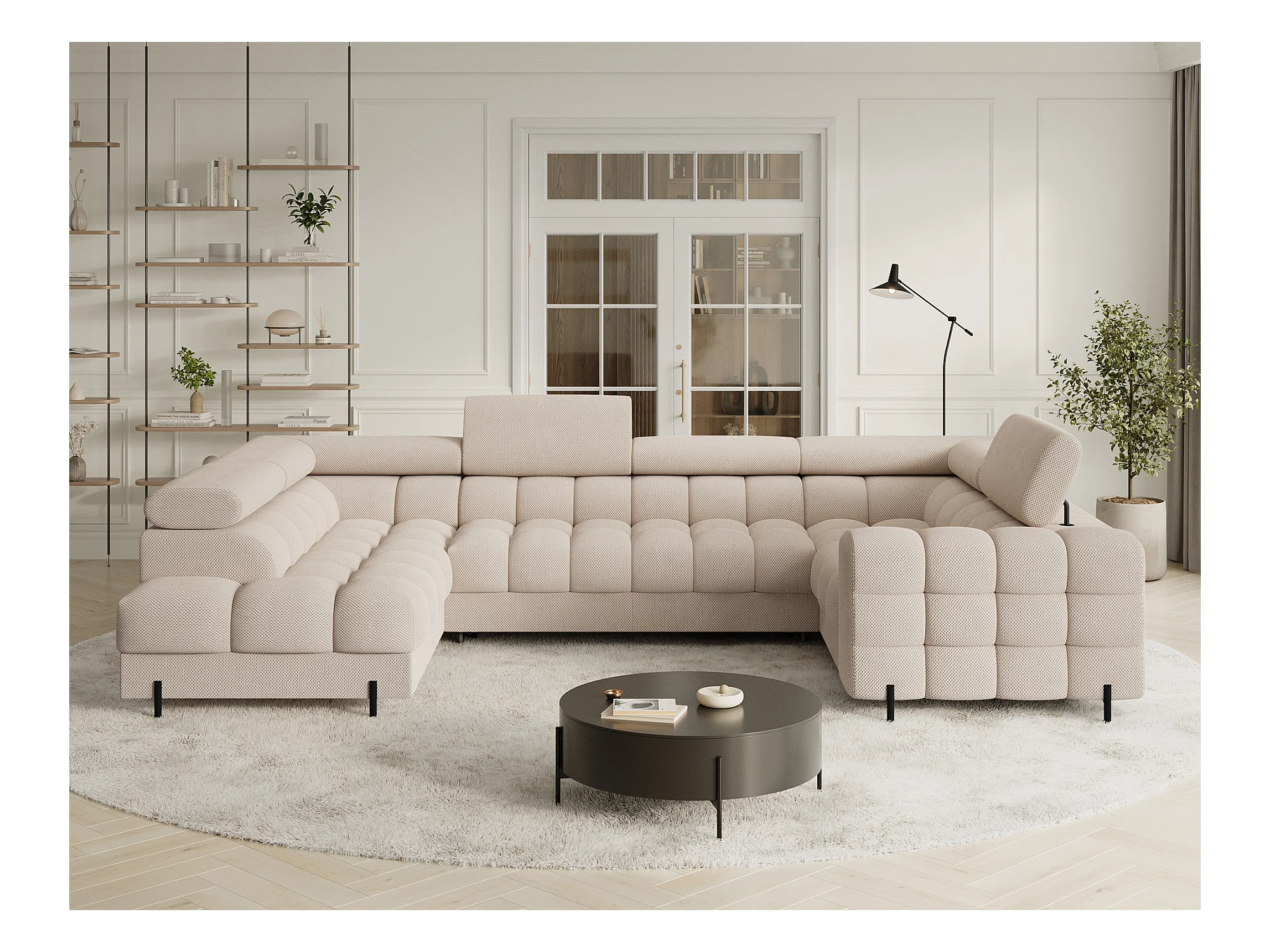 Grand canapé en U en tissu KARBON – Avec fonction lit et coffre-Beige clair-Méridienne A gauche