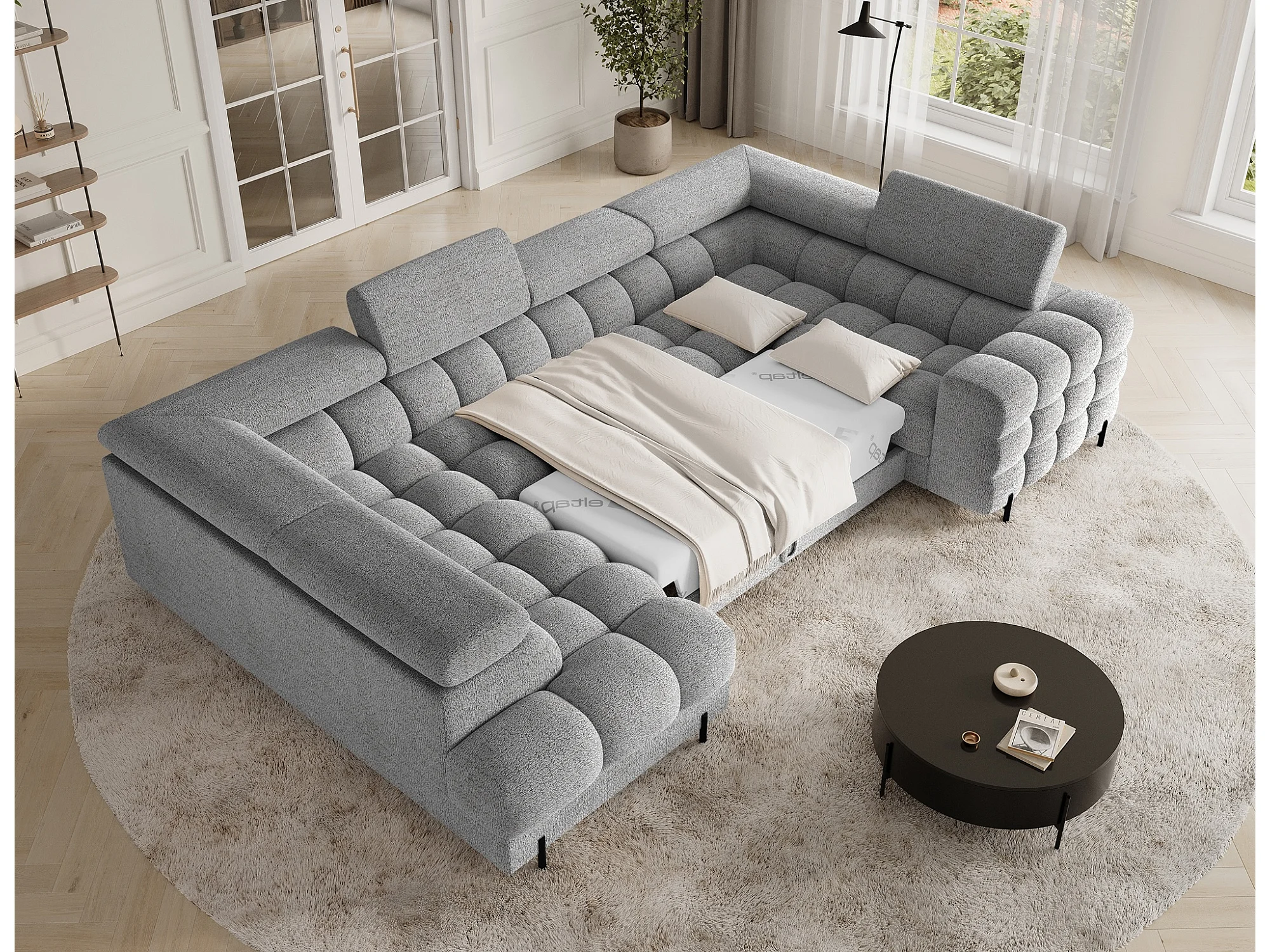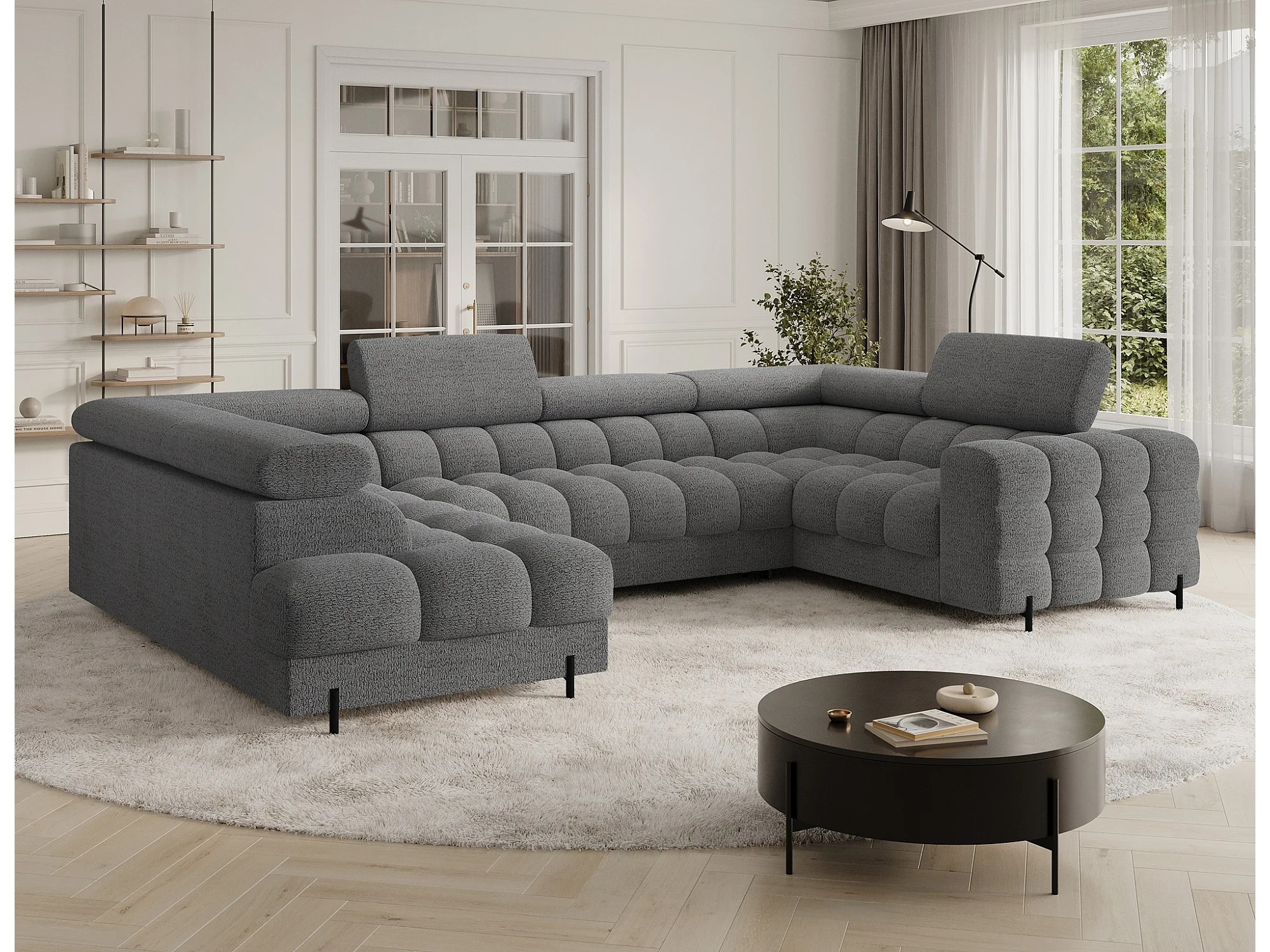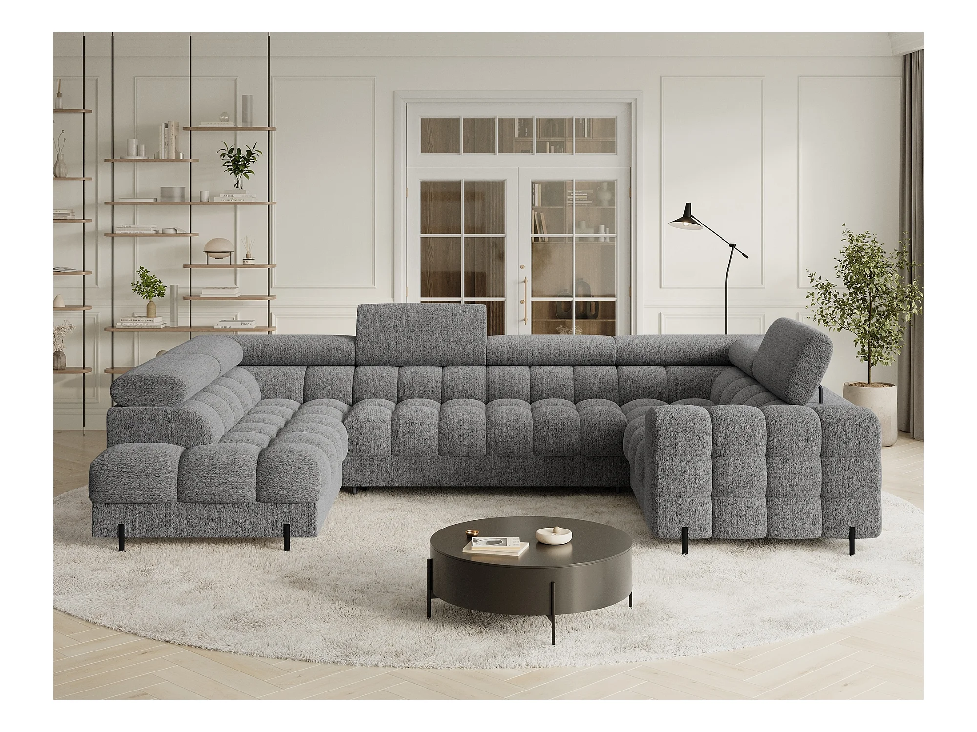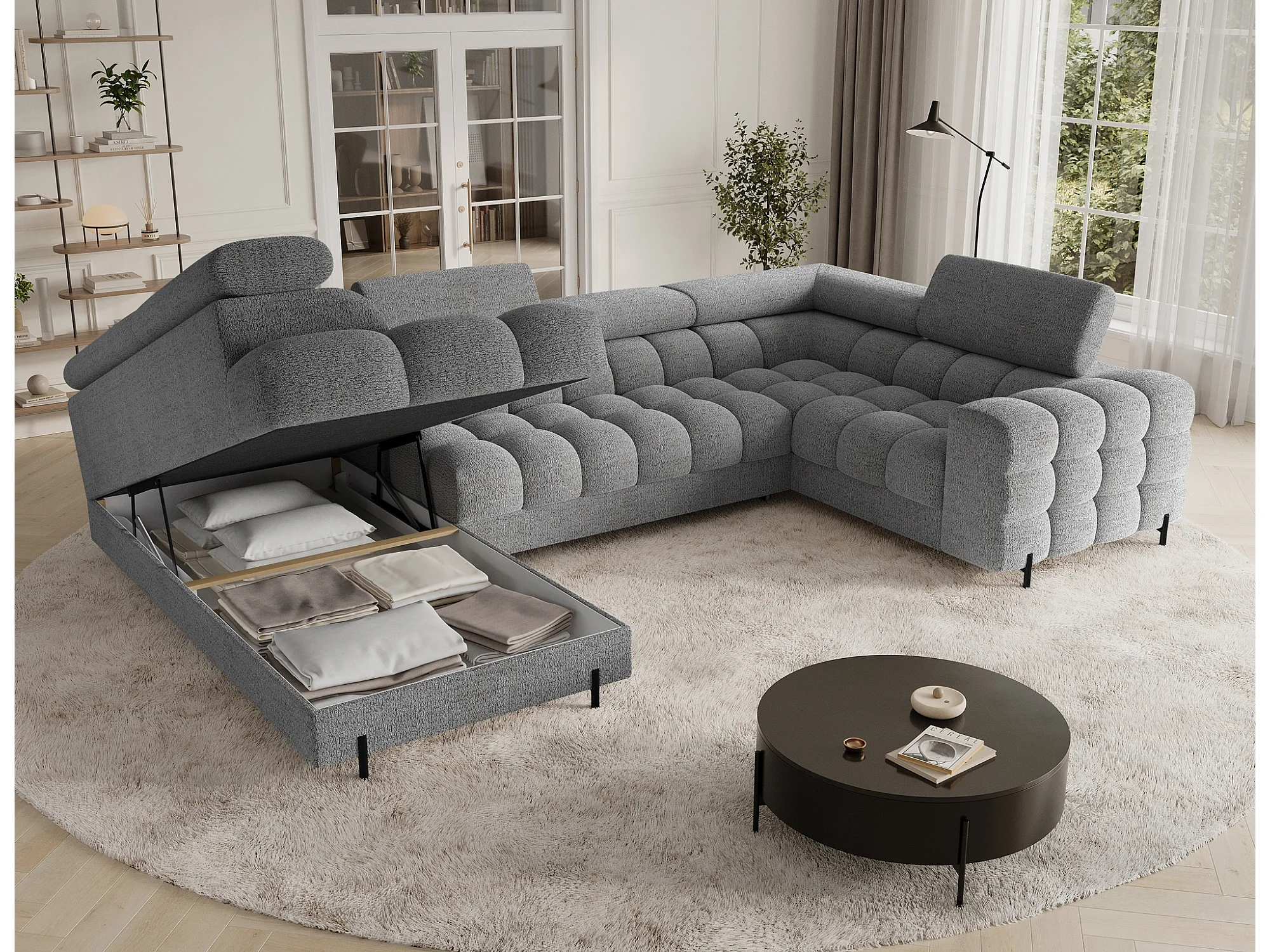 Grand canapé en U en tissu KARBON – Avec fonction lit et coffre-Gris-Méridienne A gauche
