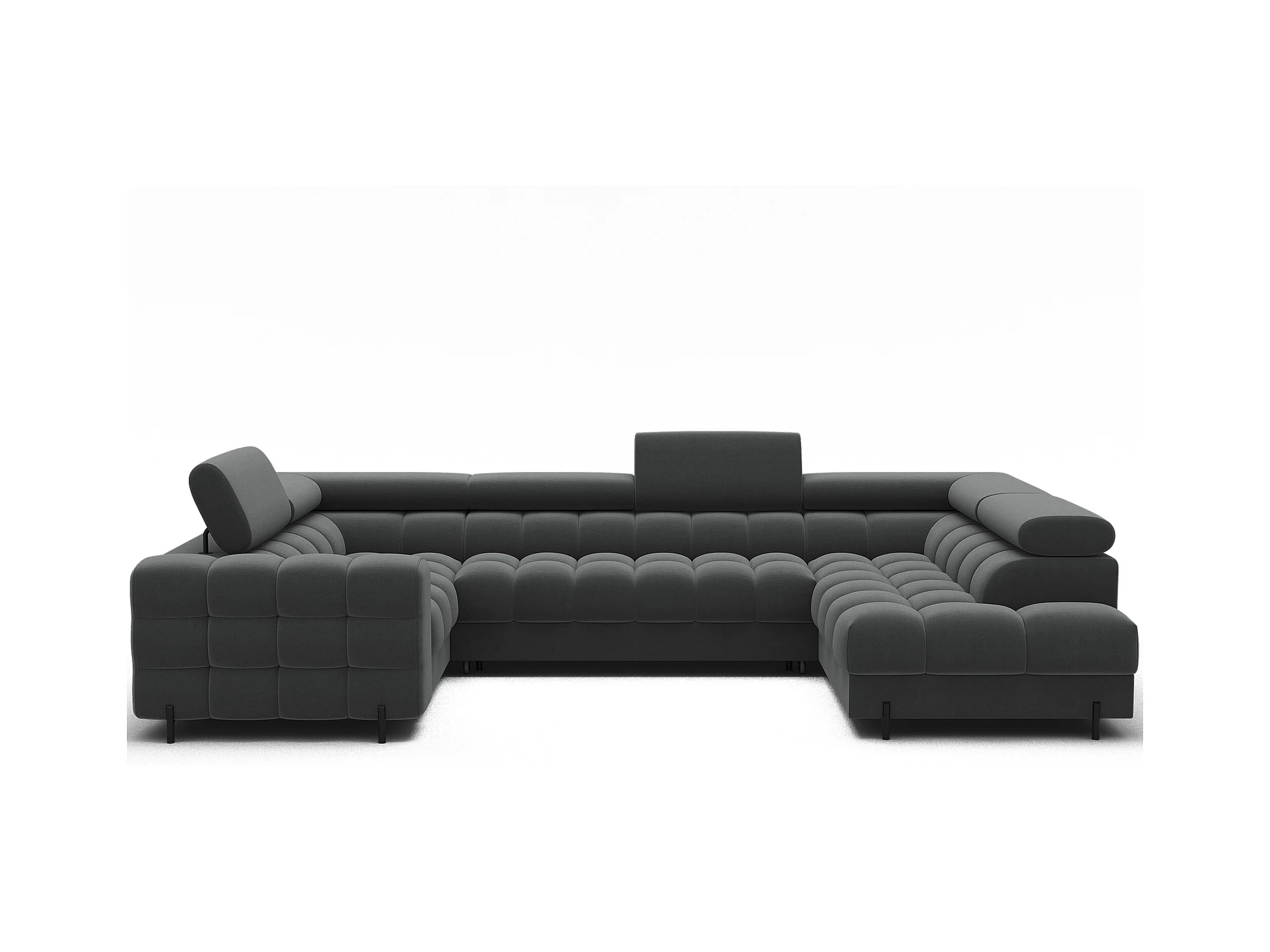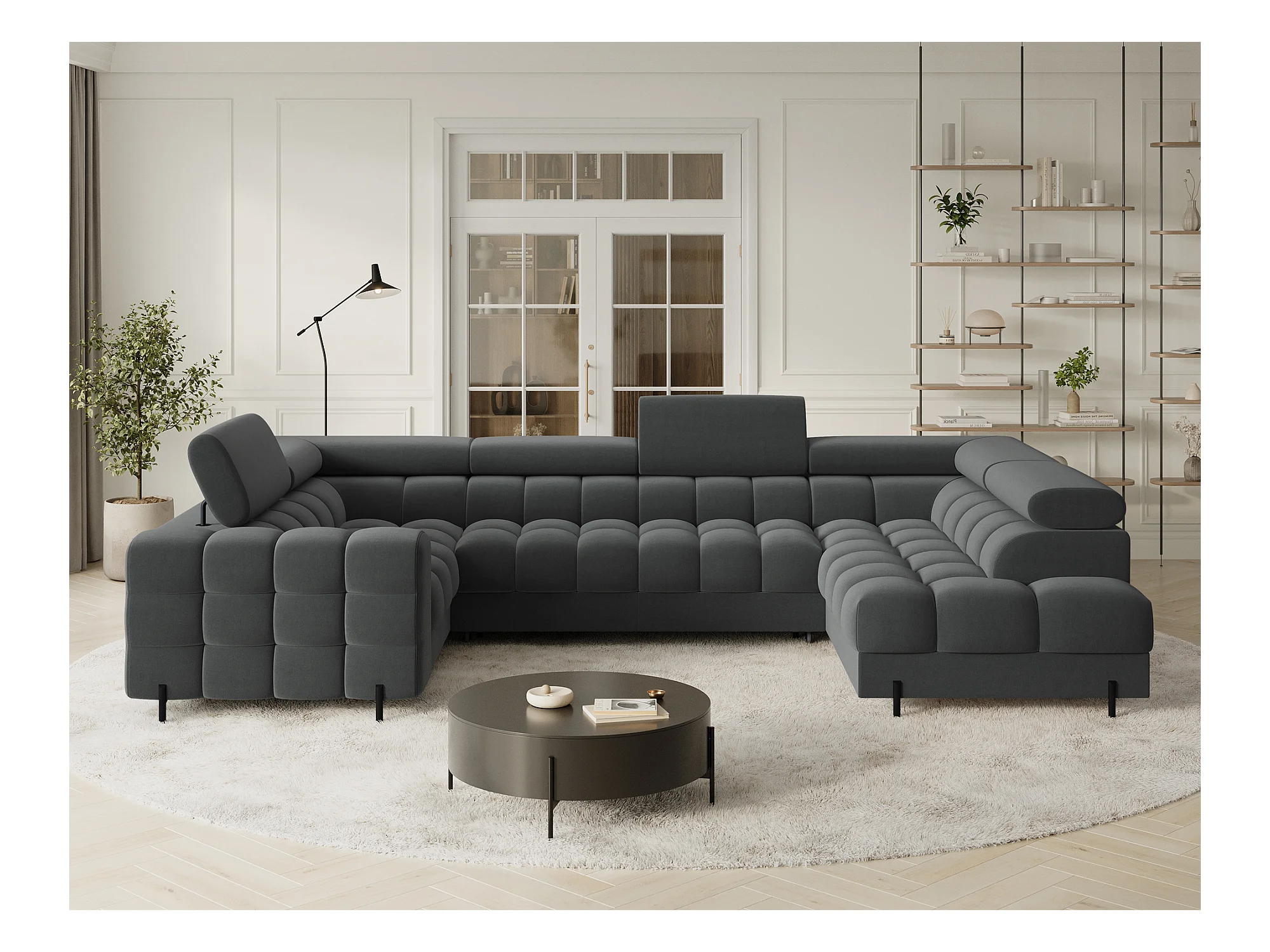 Grand canapé en U en tissu KARBON – Avec fonction lit et coffre-Gris anthracite-Méridienne A droite
