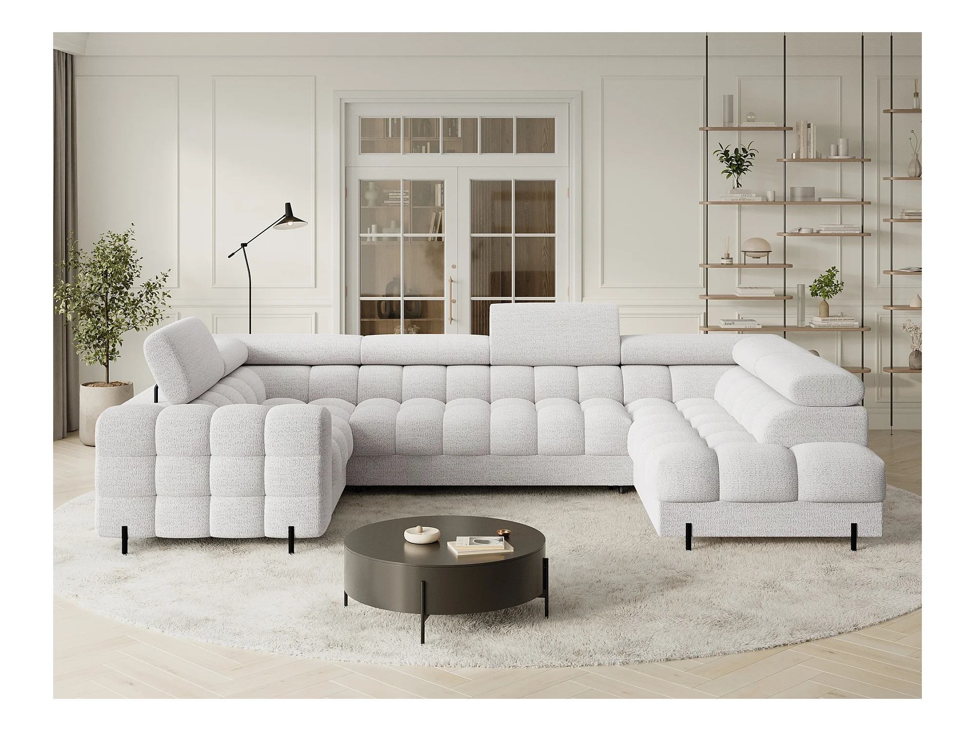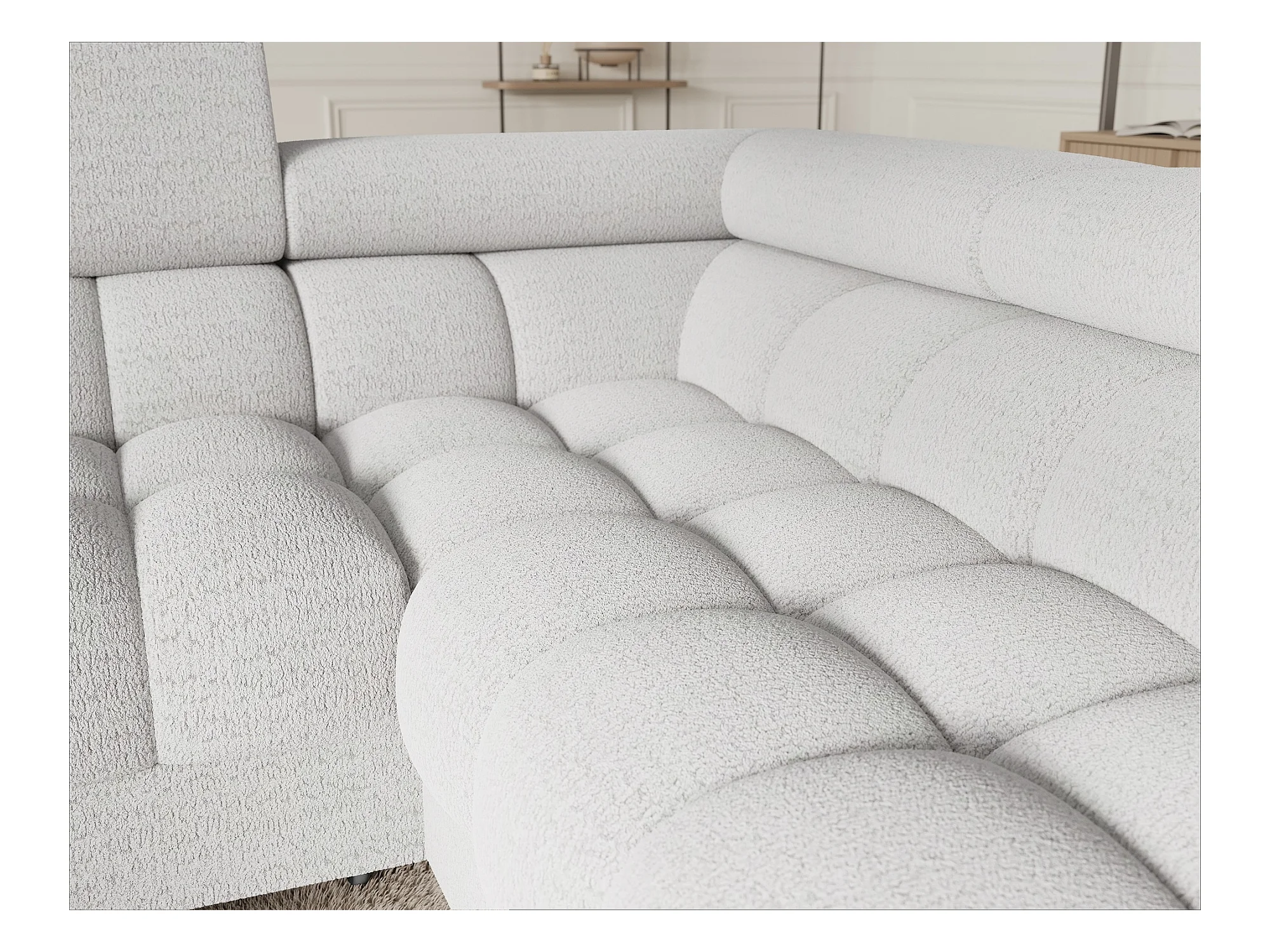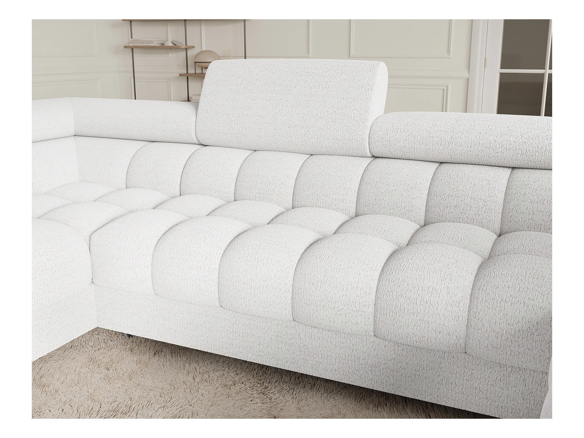 Grand canapé en U en tissu KARBON – Avec fonction lit et coffre-Blanc-Méridienne A droite