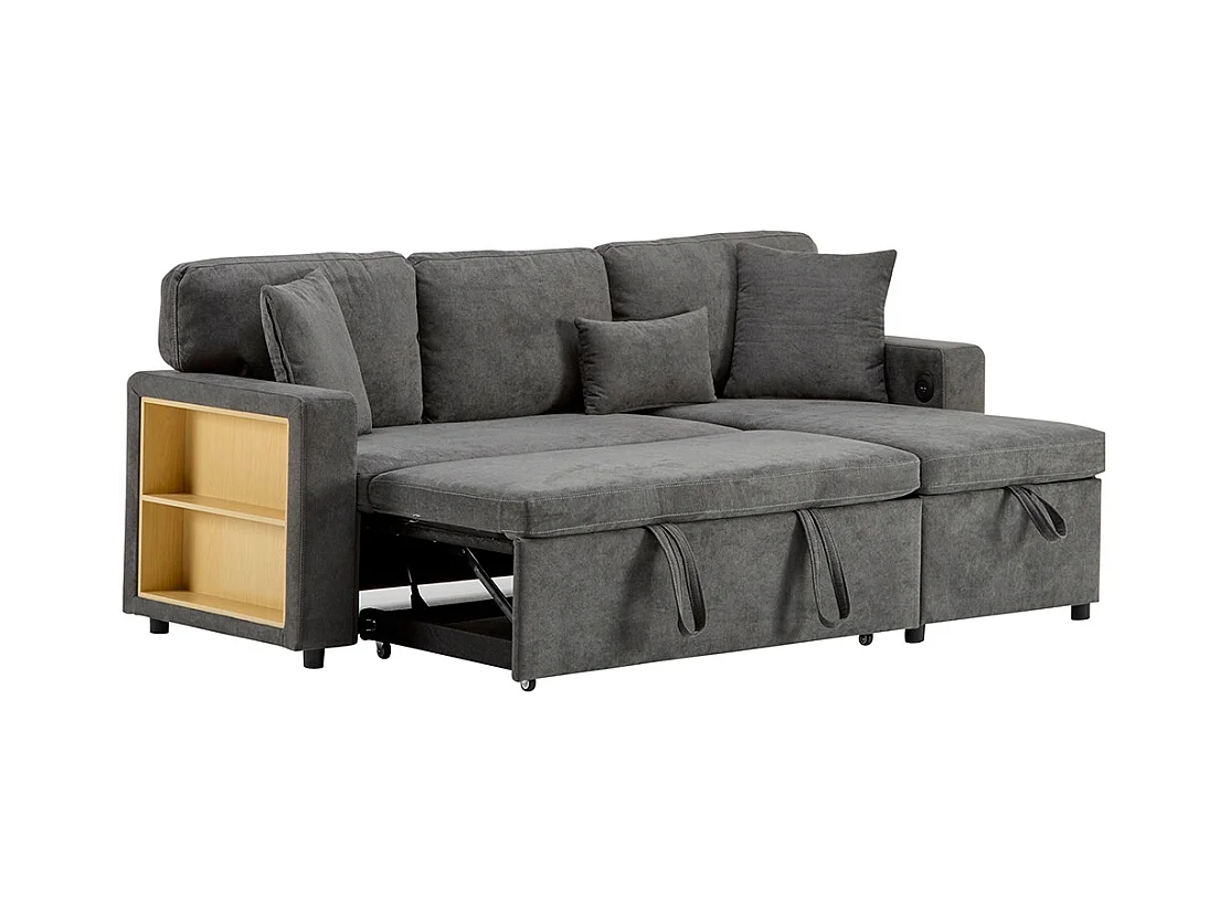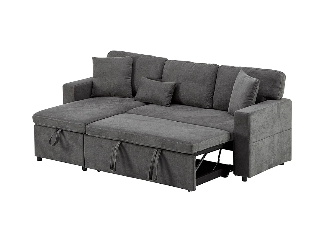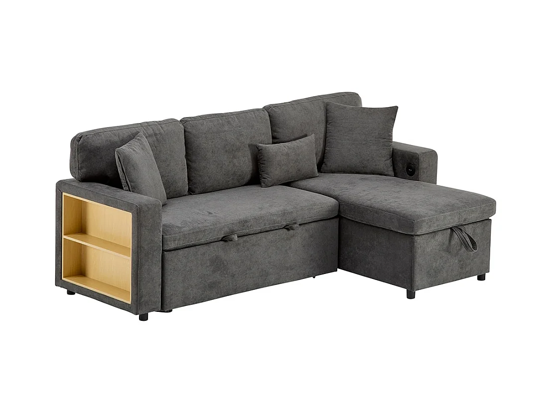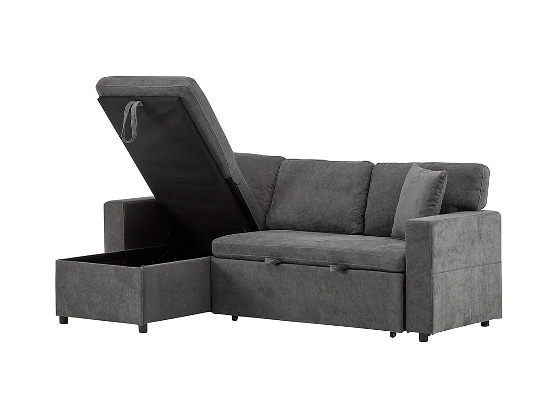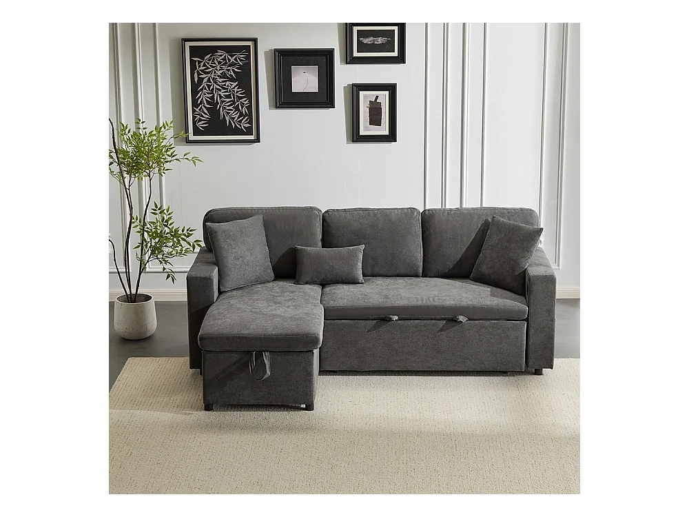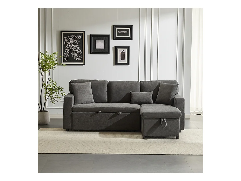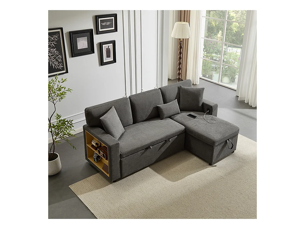 Canapé d'angle canapé convertible coffre de rangement et étagère intégrée gris foncé