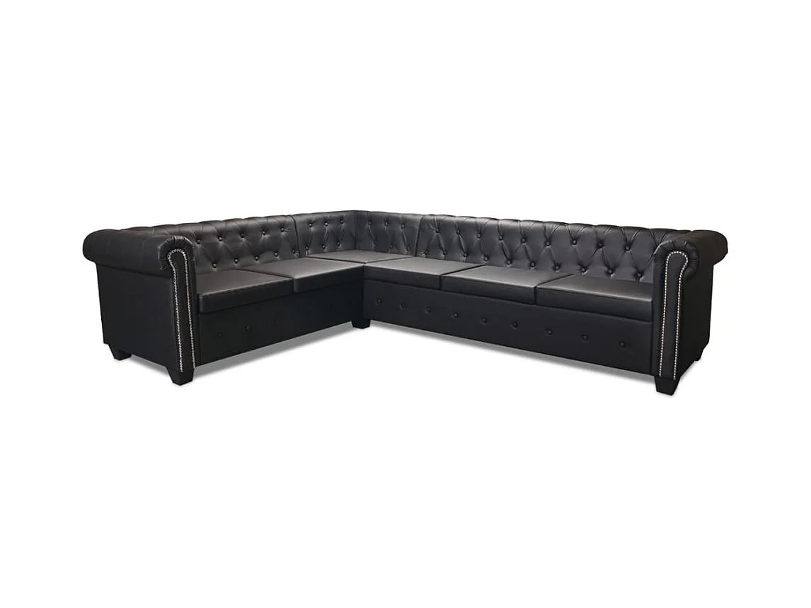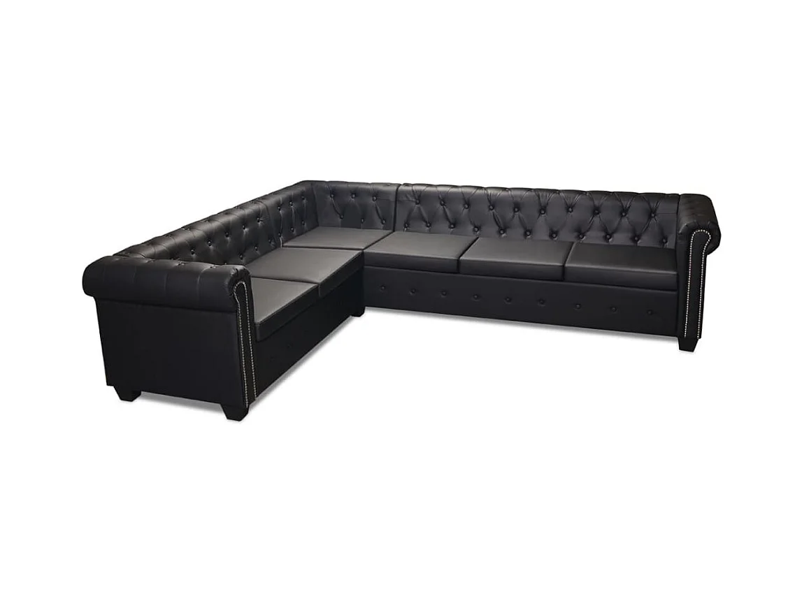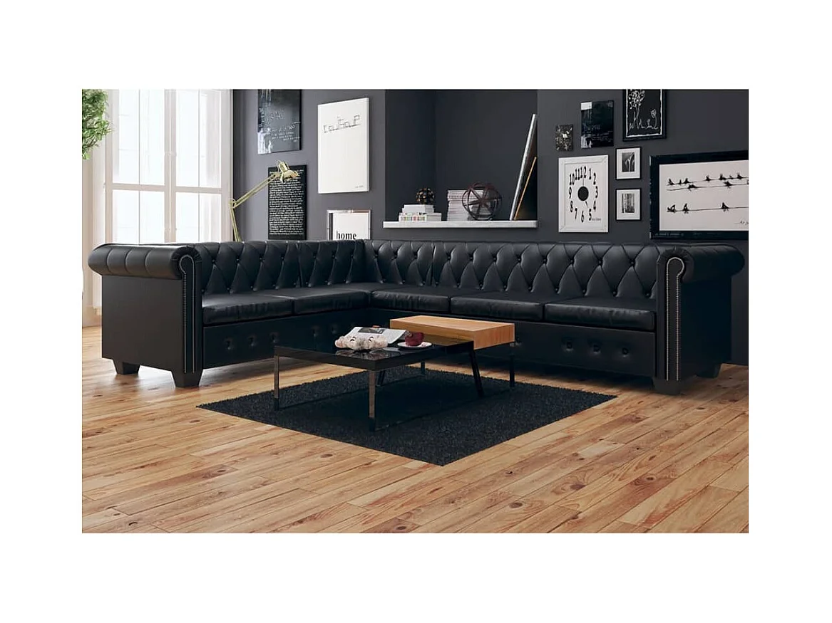 Canapé d'angle Chesterfield 6 places Cuir synthétique Noir