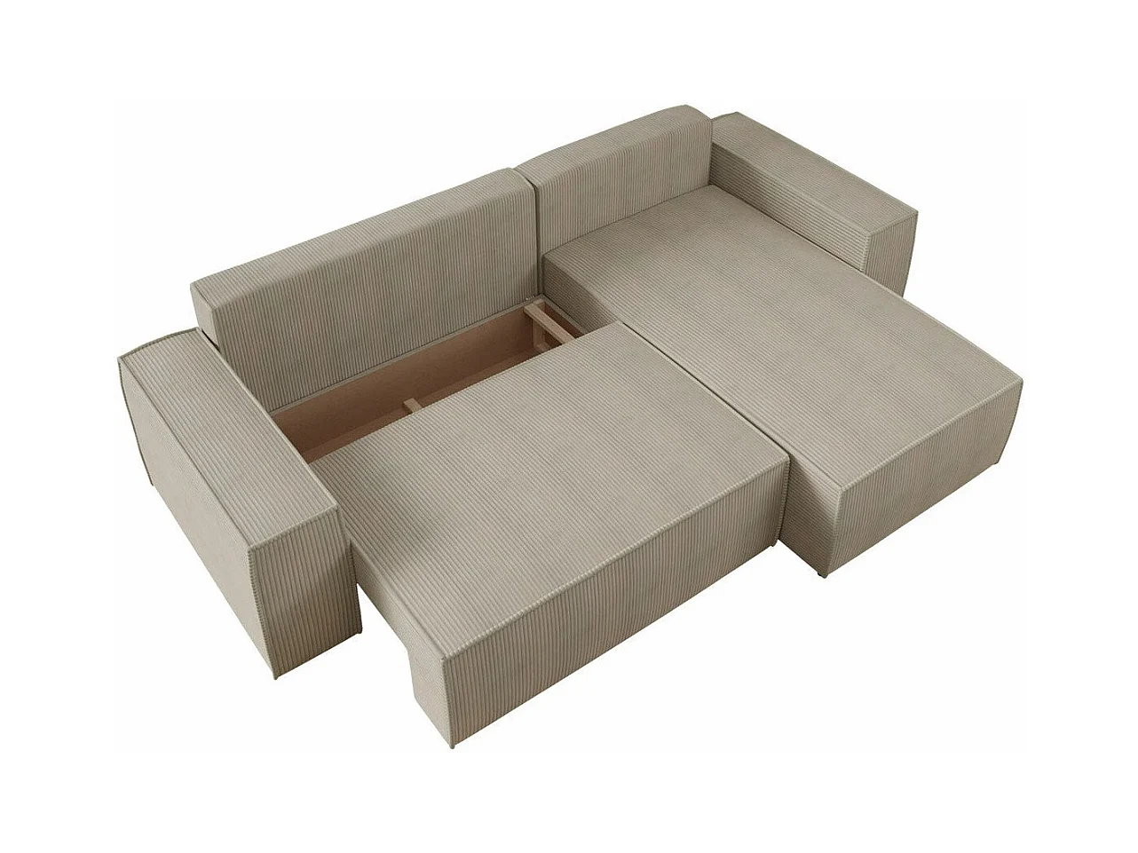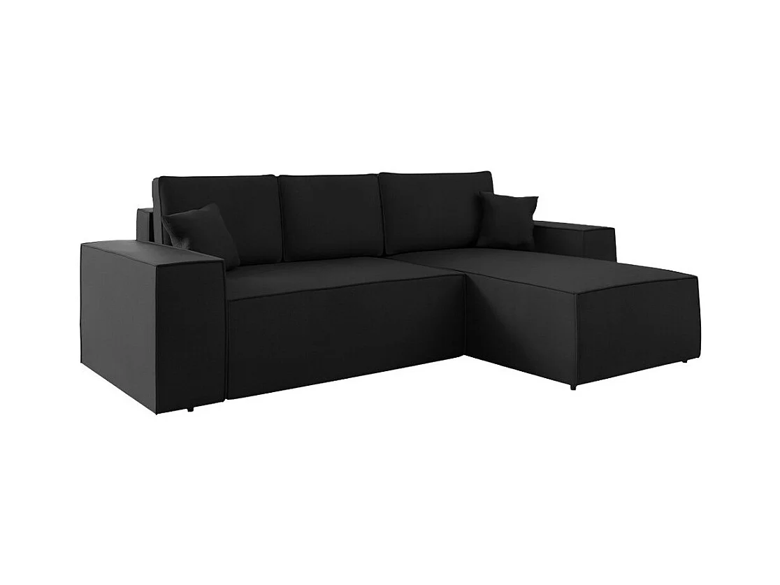Canapé d'angle Clovis 108, Noir, Fonction de couchage, Boîte de literie, 279x174x94cm
