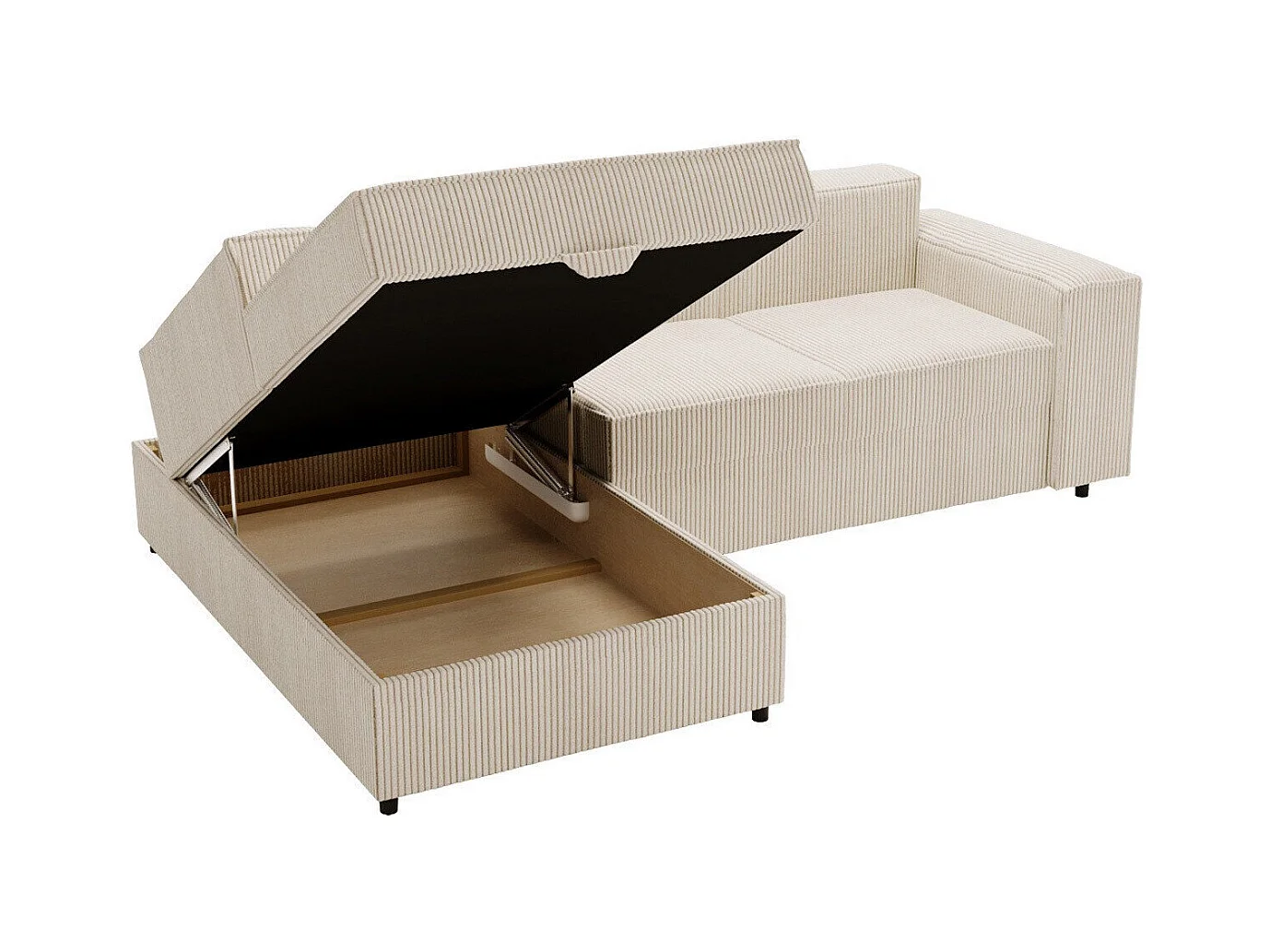 Canapé d'angle Clovis 116, Vert, Fonction de couchage, Boîte de literie, 253x166x79cm