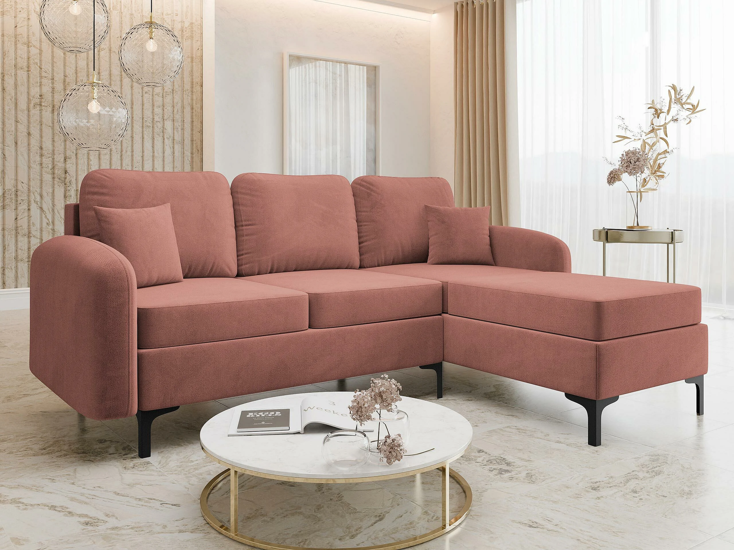 Canapé d'angle Torlua 103, Rose, Fonction de couchage, Boîte de literie, 225x172x96cm