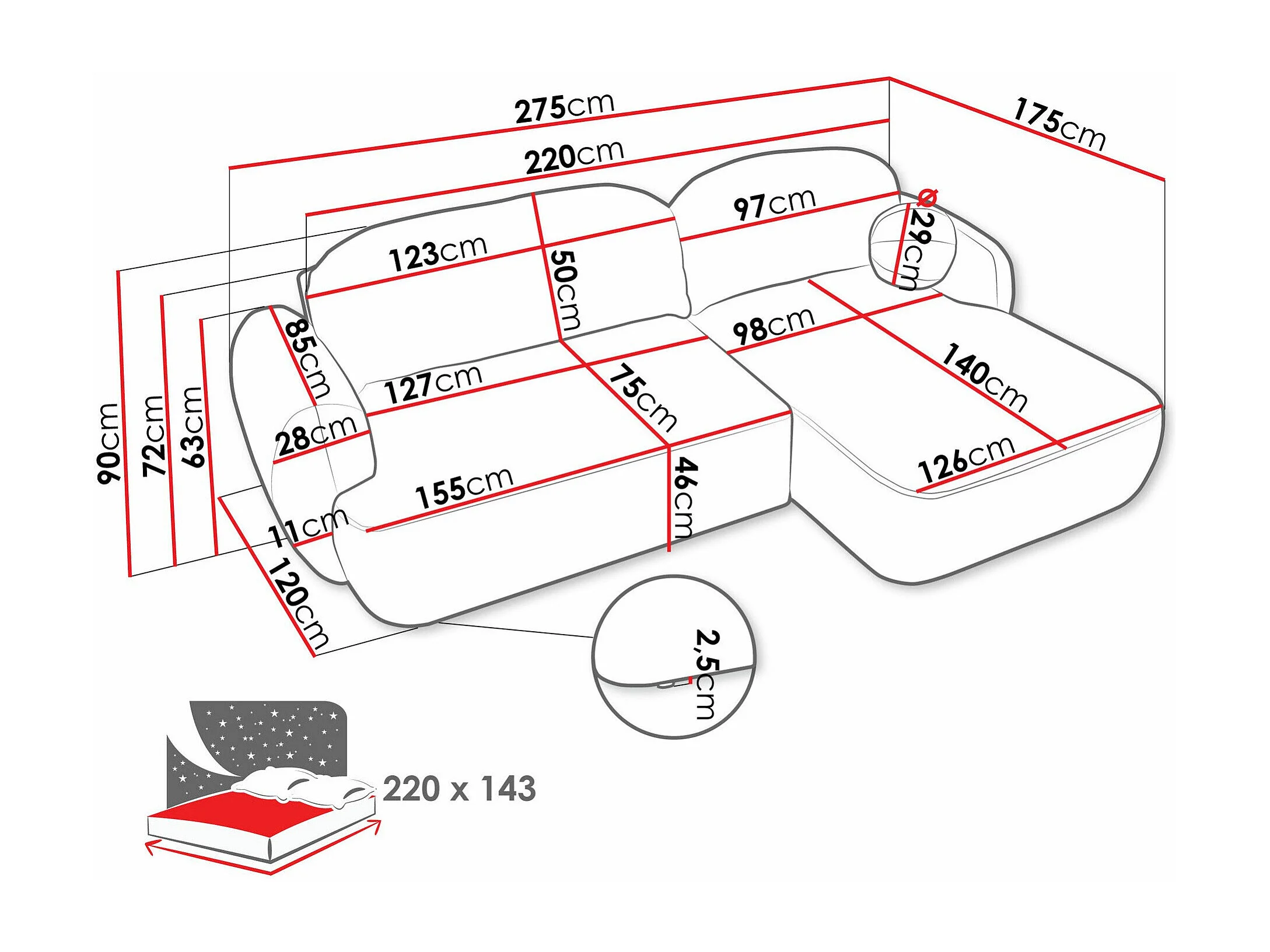 Canapé d'angle TrendyNest 110, Brun clair, Fonction de couchage, Boîte de literie, 275cm
