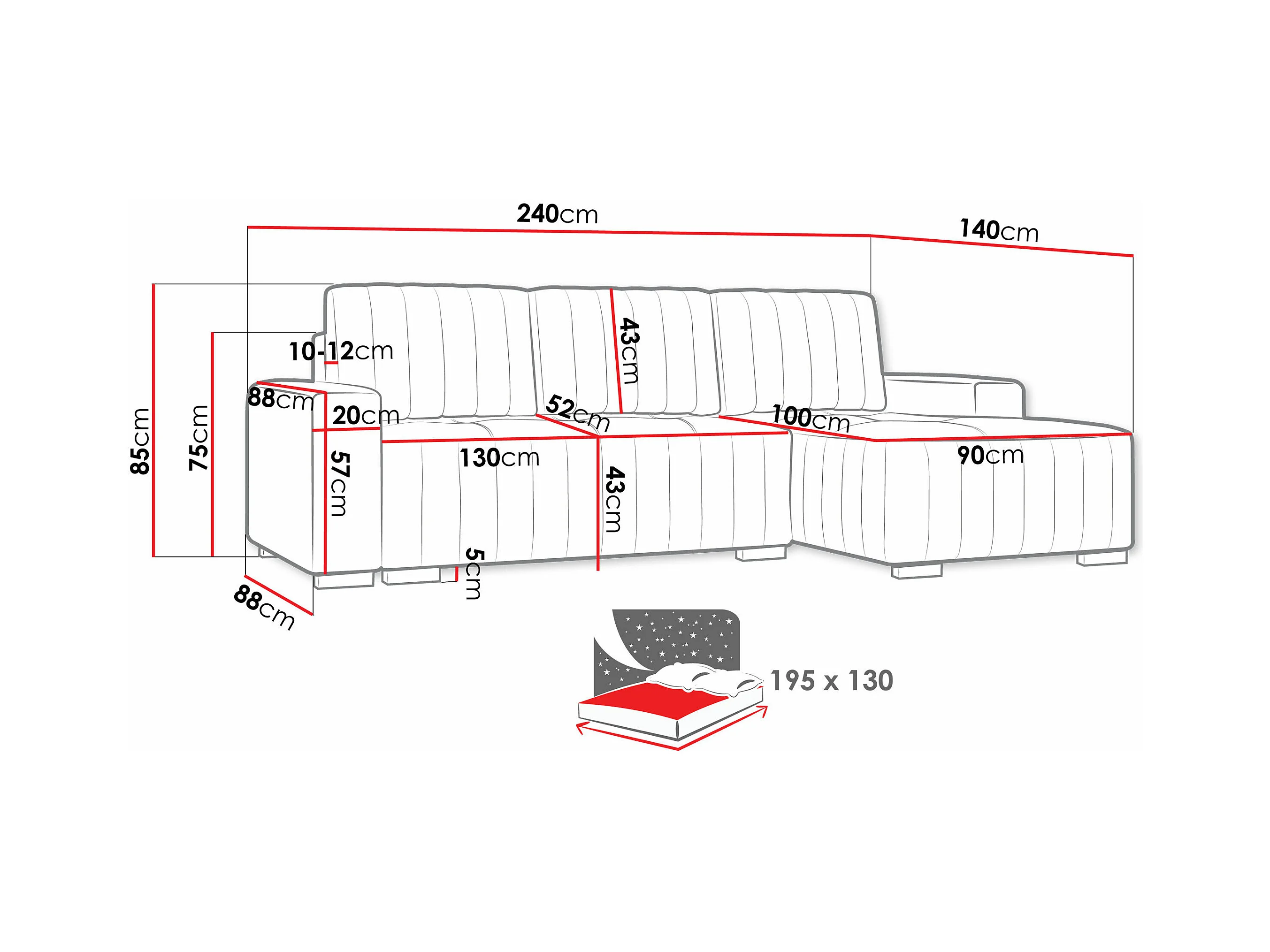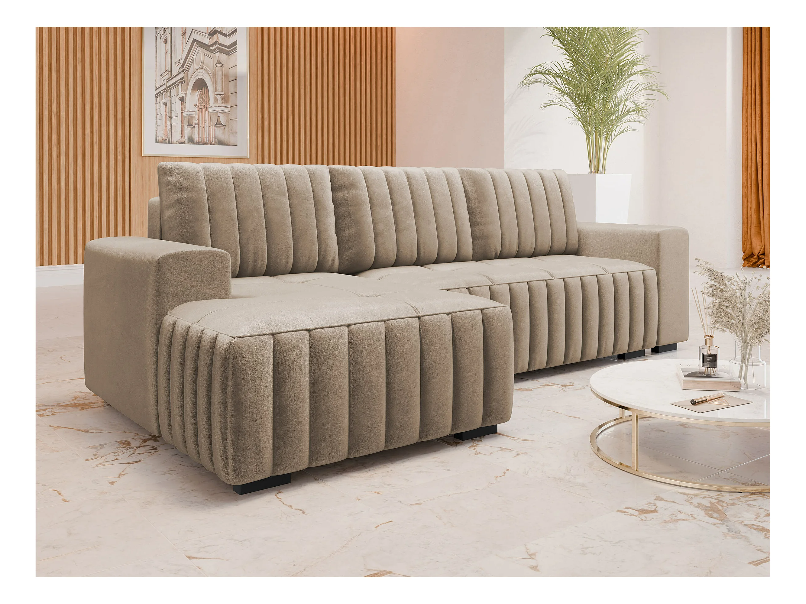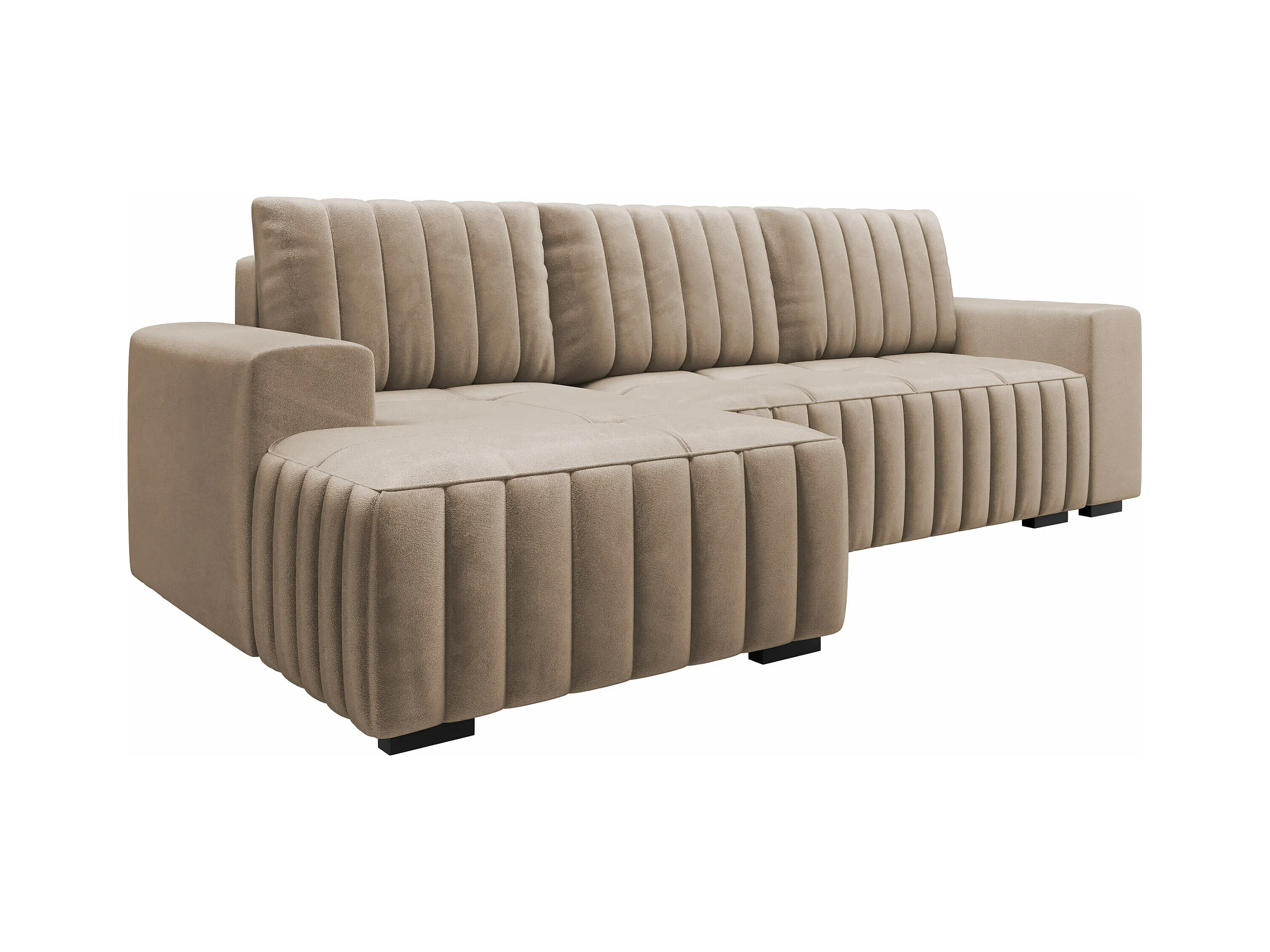 Canapé d'angle Columbus 154, Brun clair, Fonction de couchage, Boîte de literie, 240x85cm