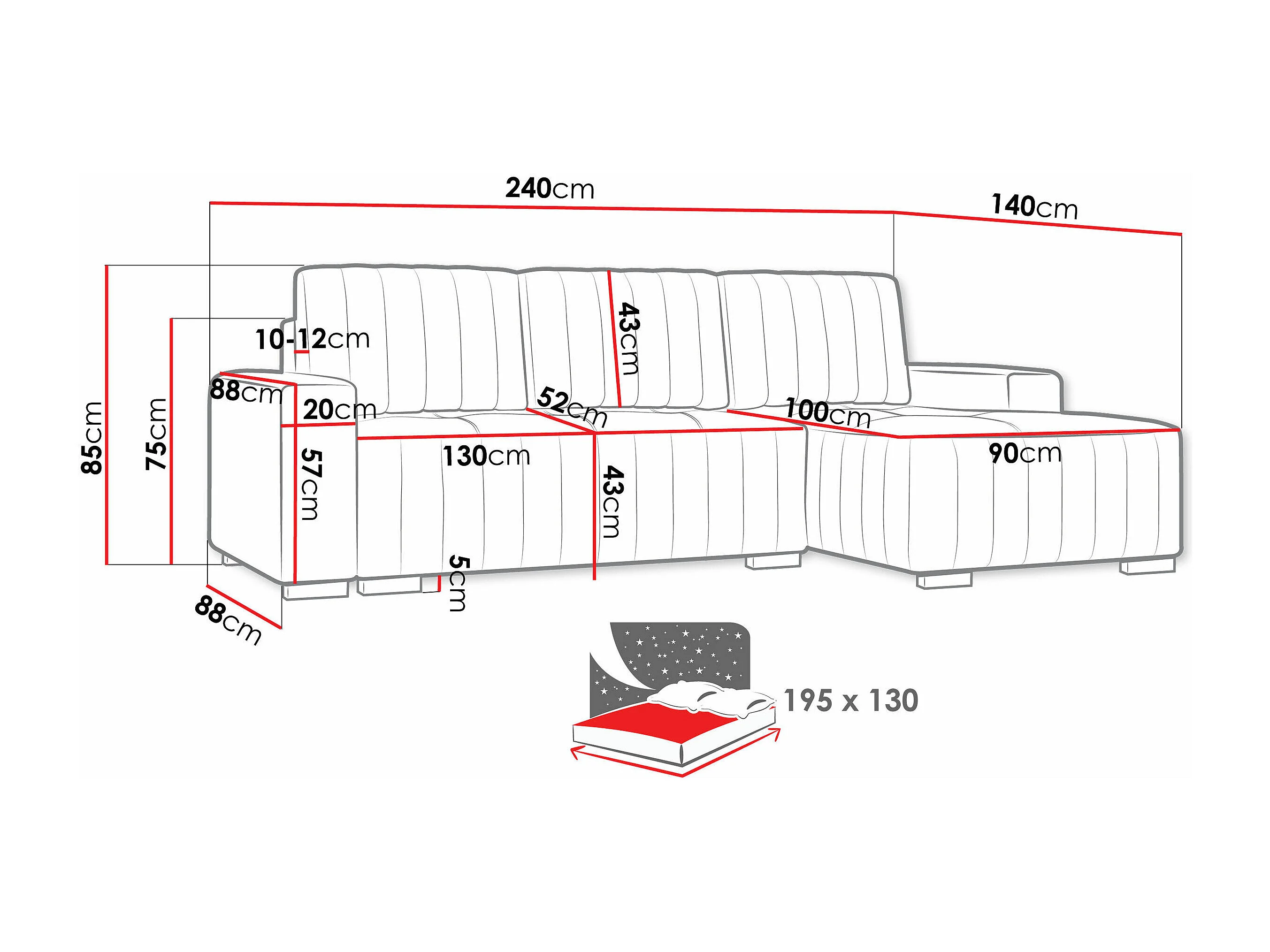 Canapé d'angle Columbus 154, Brun clair, Fonction de couchage, Boîte de literie, 240x85cm