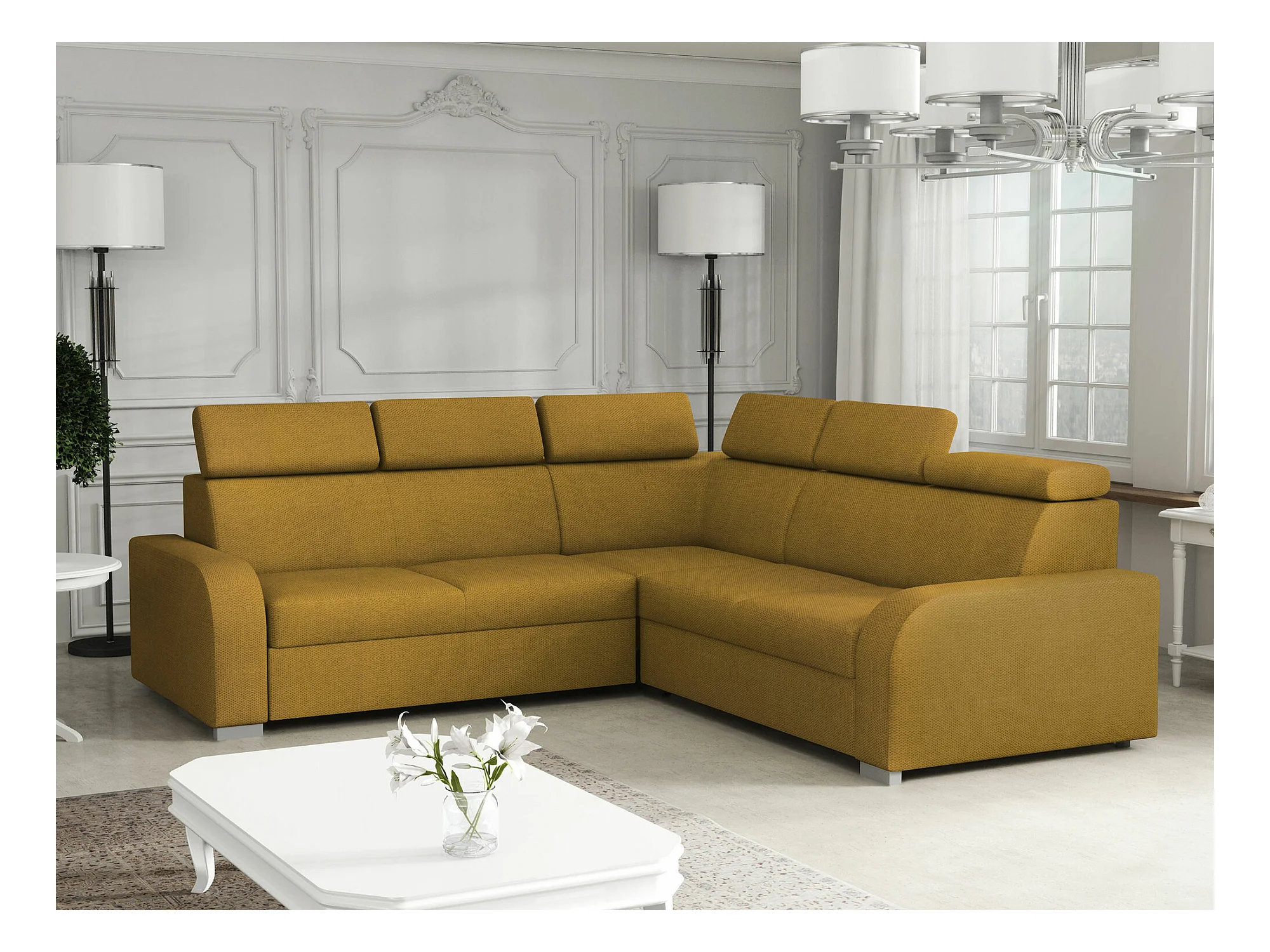Canapé d'angle Etrcala 101, Jaune, Fonction de couchage, Boîte de literie, 250x250x100cm