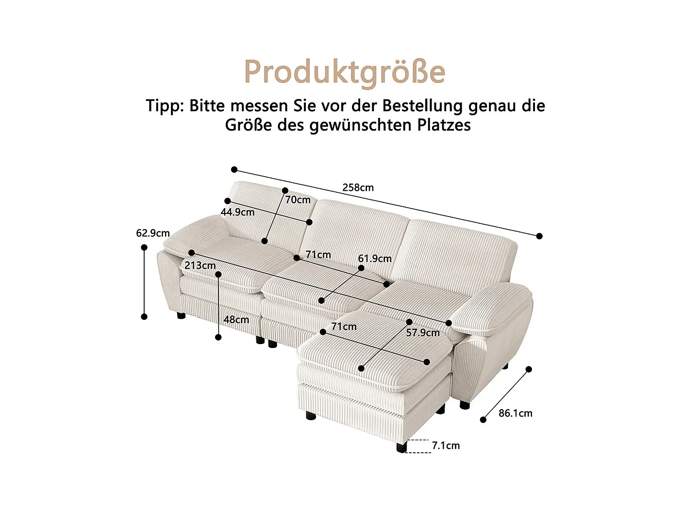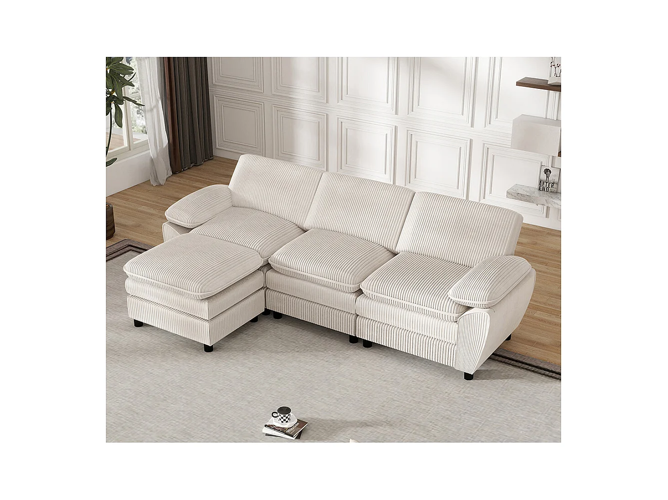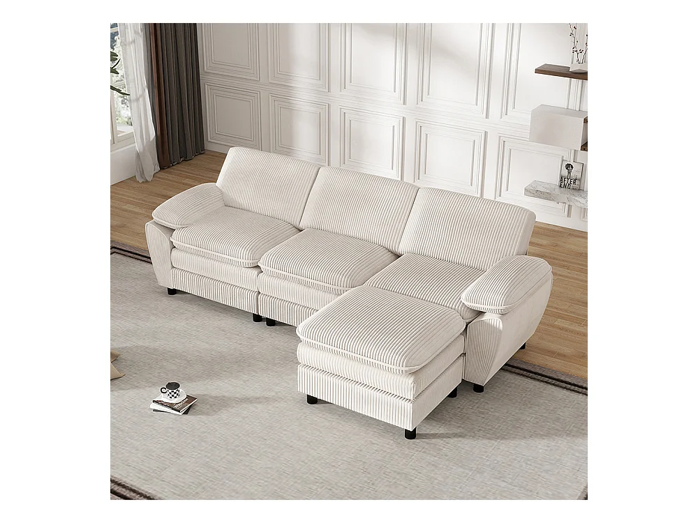 Canape d'angle combiné modulaire blanc canapé à double coussin canapé combiné en velours avec lampe et pouf ottoman amovible