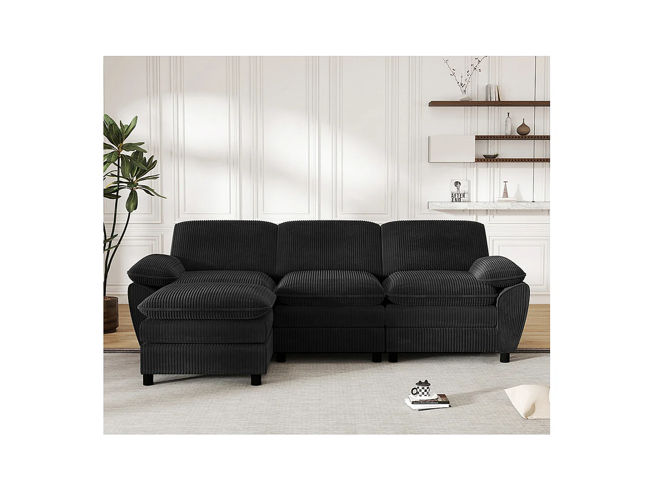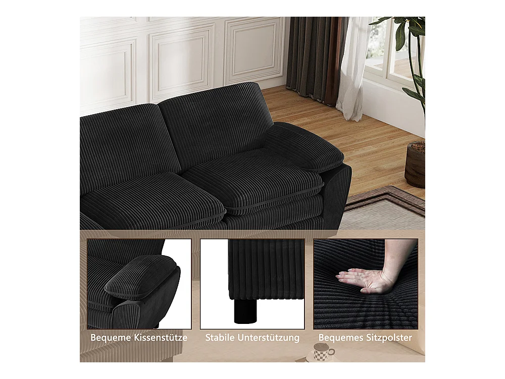 Canape d'angle combiné modulaire noir canapé à double coussin canapé combiné en velours avec lampe et pouf ottoman amovible