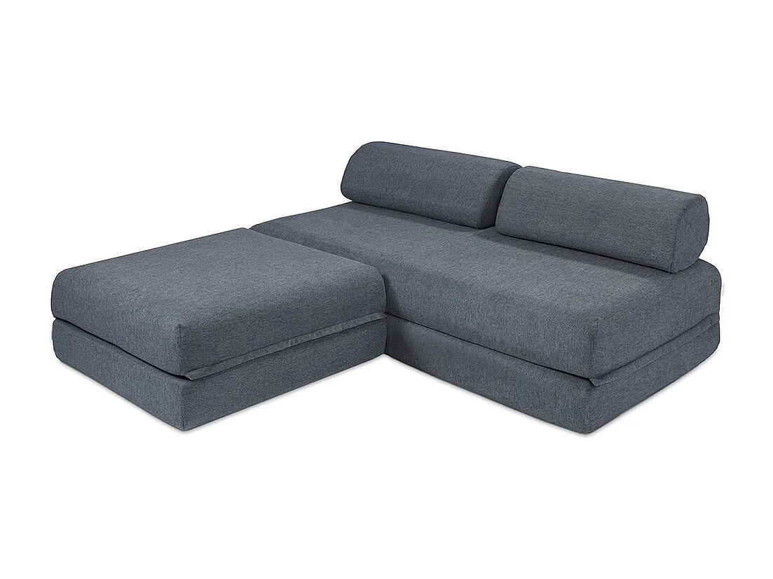 Canapé d'angle modulable et convertible 4 places - Tissu lisse - Bleu