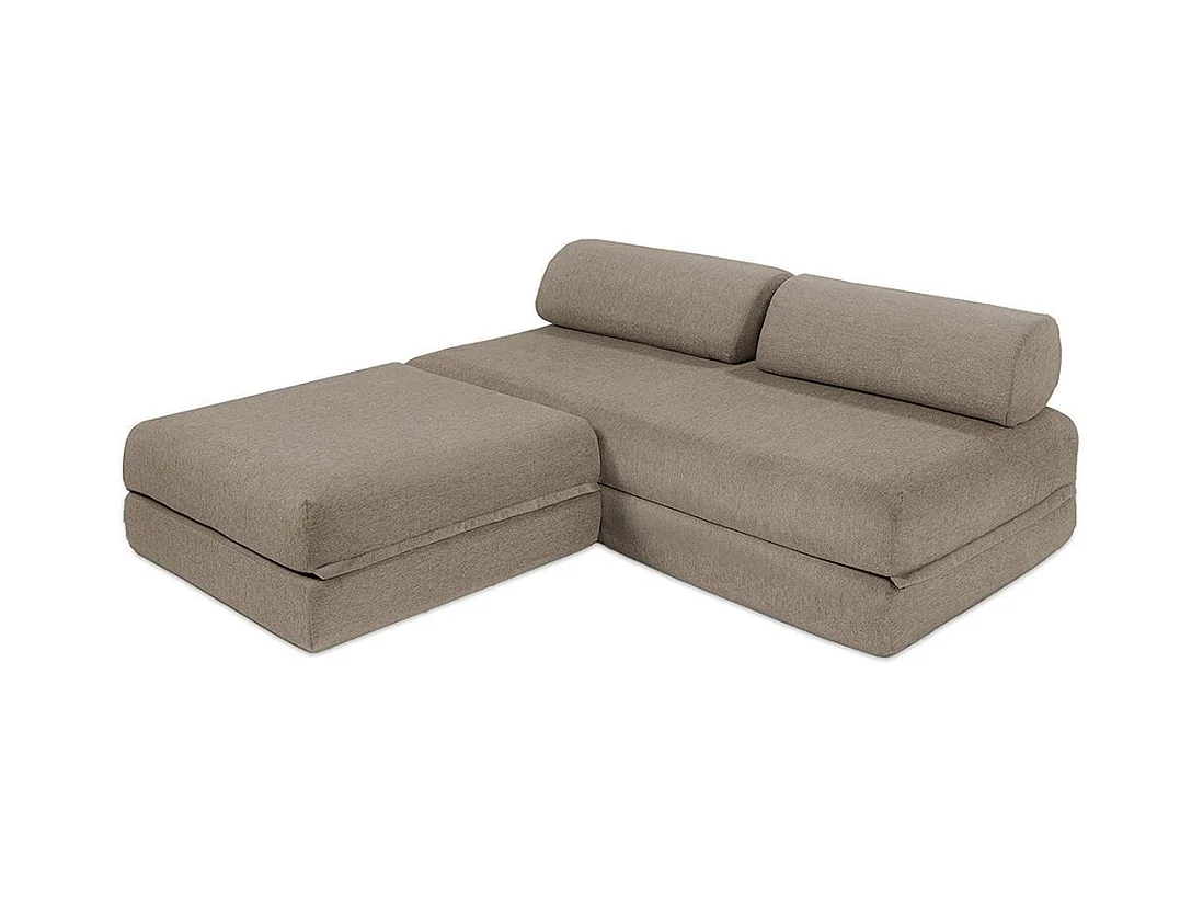 Canapé d'angle modulable et convertible 4 places - Tissu lisse - Taupe