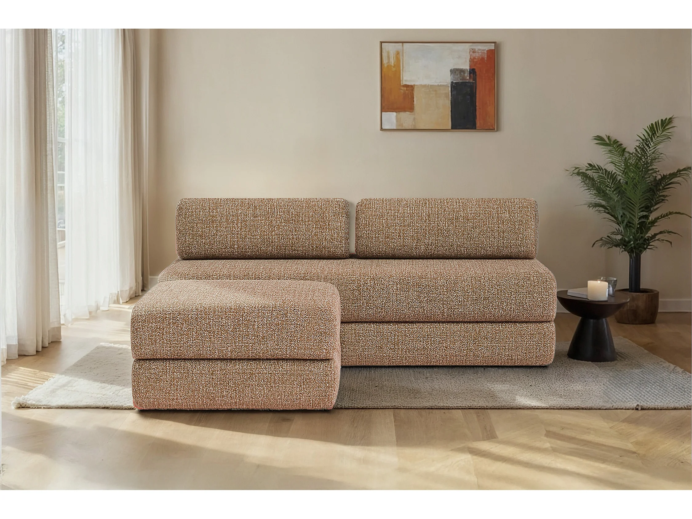 Canapé d'angle modulable et convertible 4 places - Tissu tweed - Marron