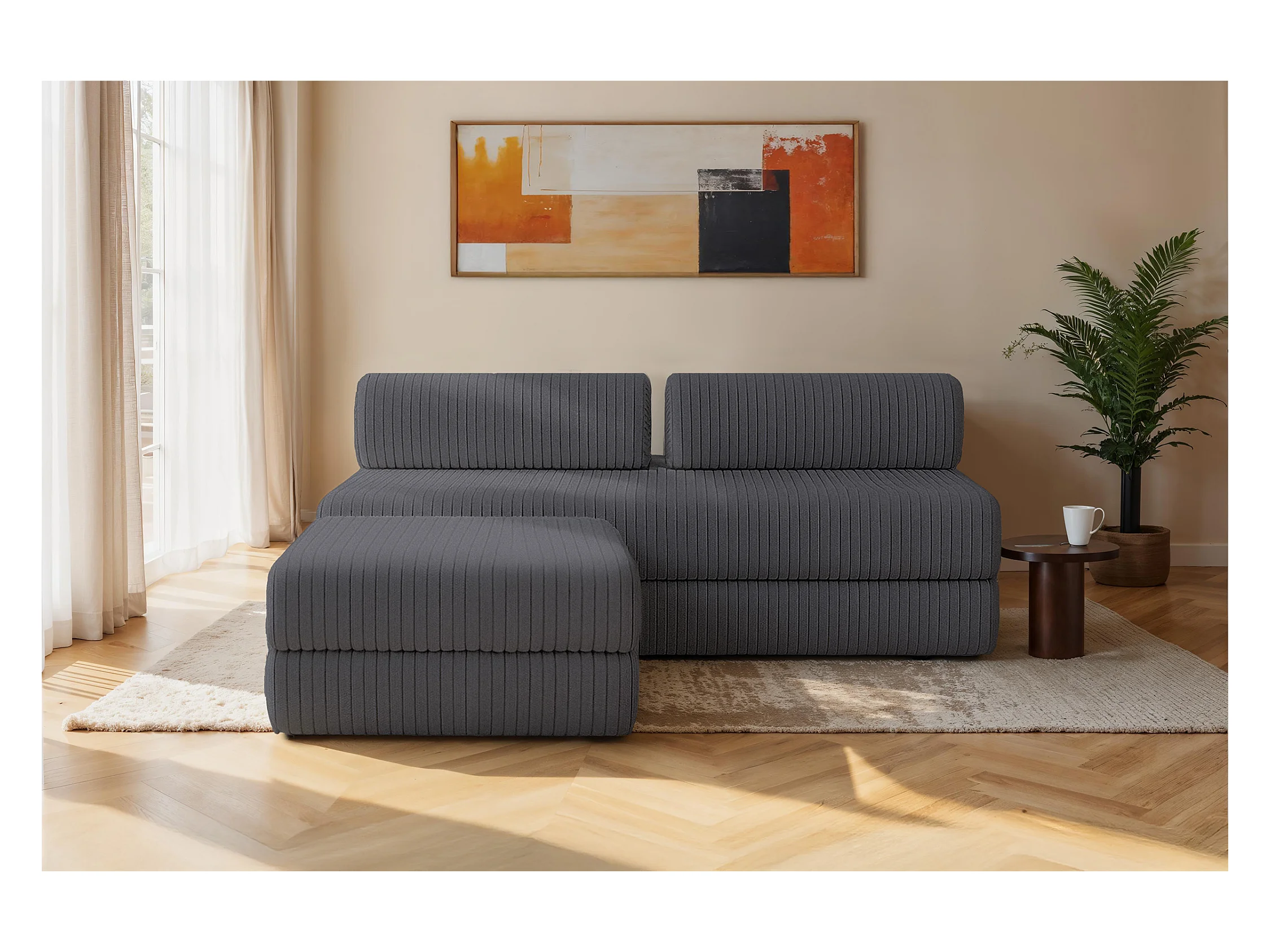 Canapé d'angle modulable et convertible 4 places - Velours côtelé XL - Gris