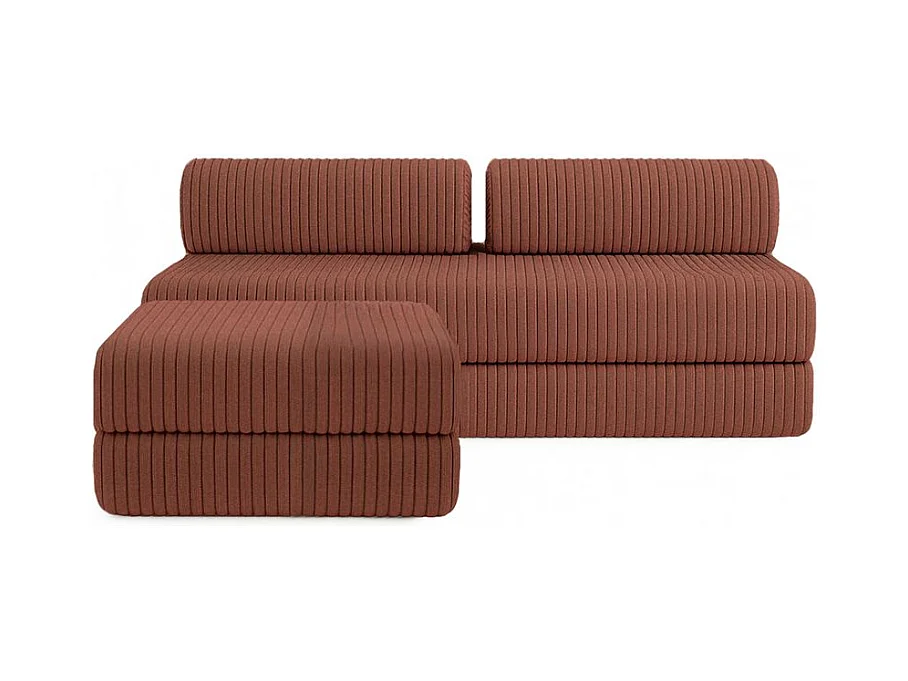 Canapé d'angle modulable et convertible 4 places - Velours côtelé XL - Terracotta