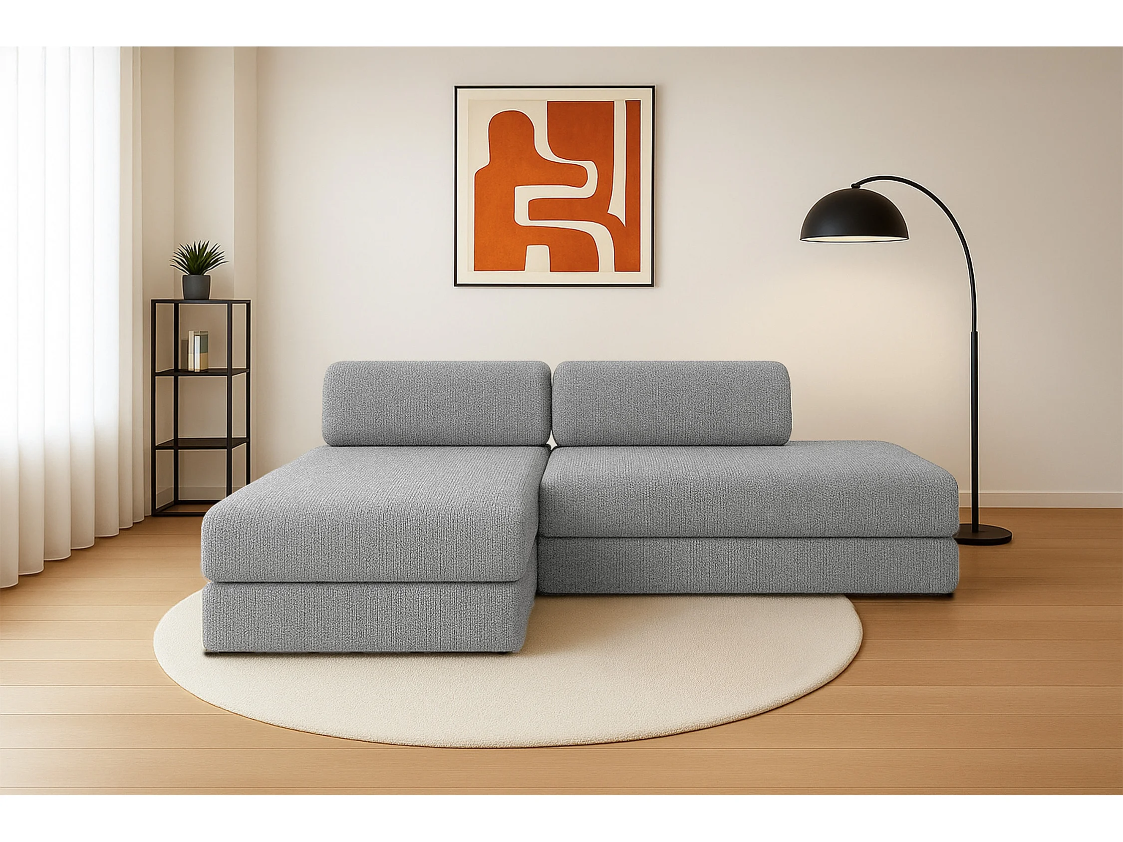 Canapé d'angle modulable et convertible 5 places - Tissu tweed - Gris