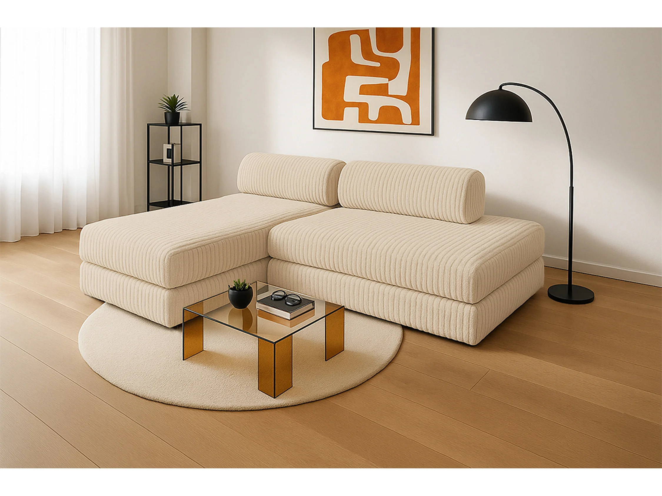 Canapé d'angle modulable et convertible 5 places - Velours côtelé XL - Beige