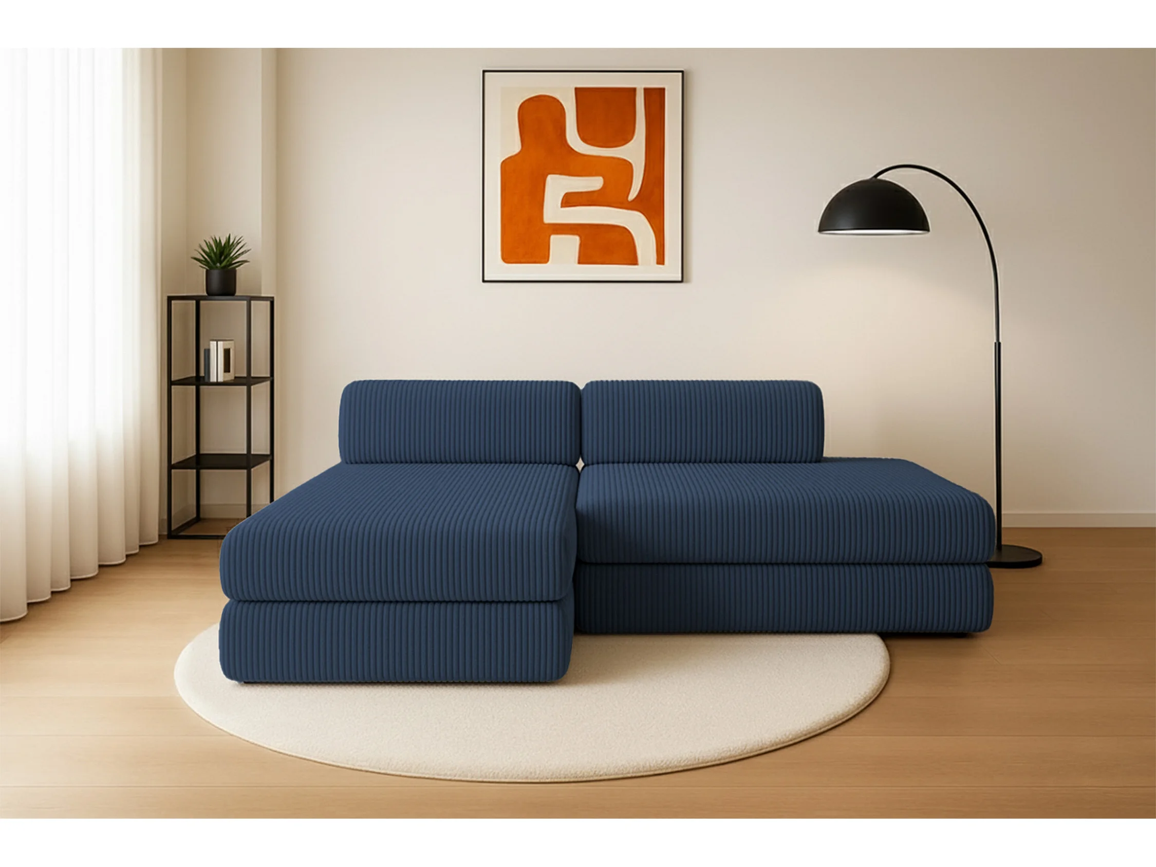 Canapé d'angle modulable et convertible 5 places - Velours côtelé XL - Bleu