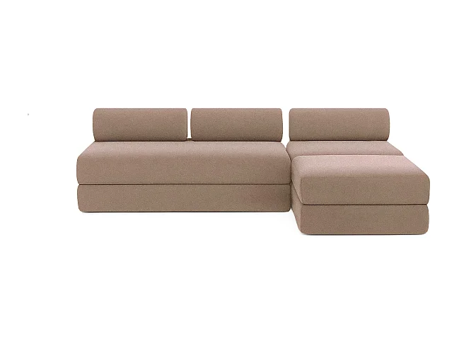 Canapé d'angle modulable et convertible 6 places - Tissu lisse - Marron