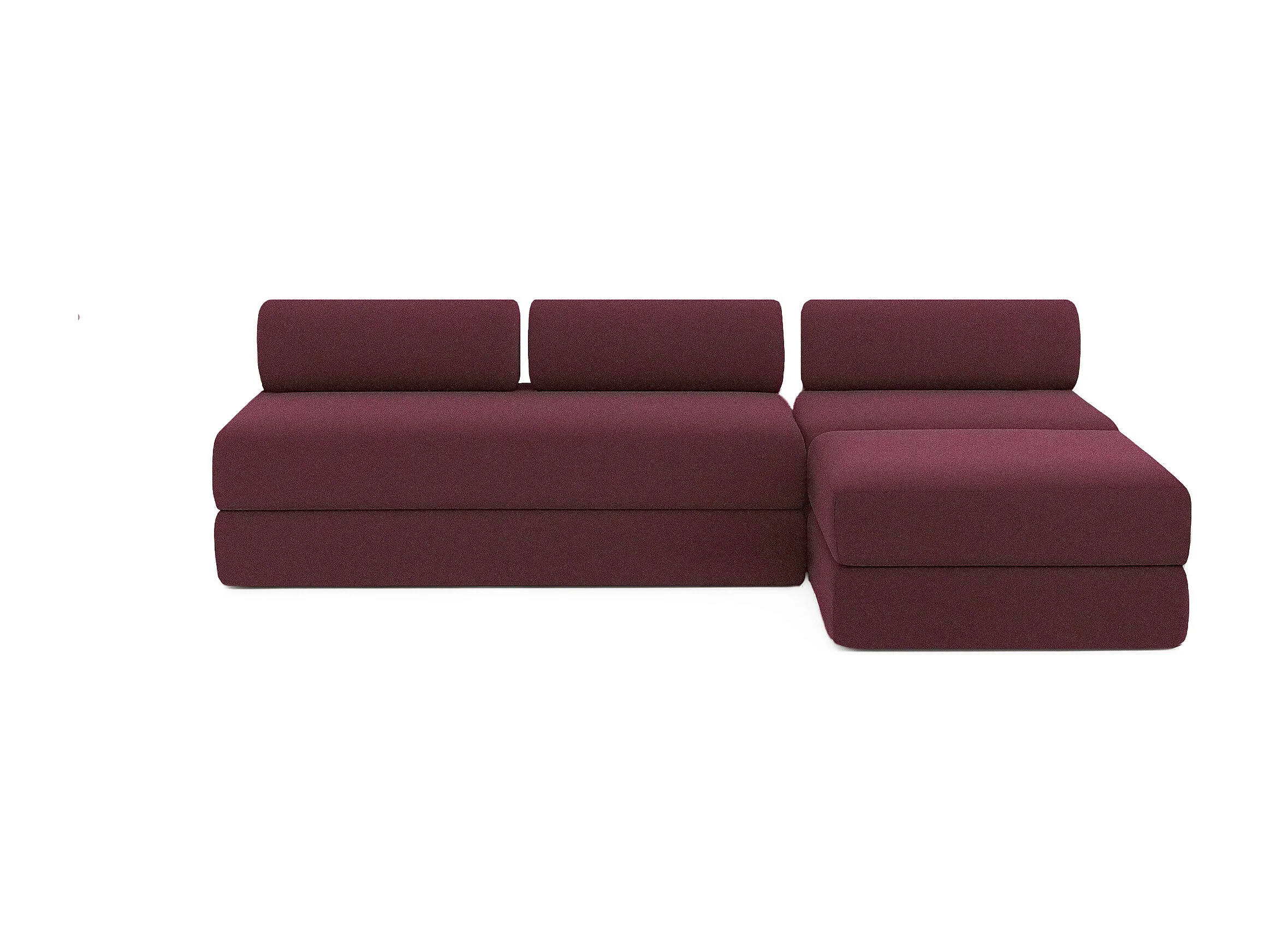 Canapé d'angle modulable et convertible 6 places - Tissu lisse - Rouge