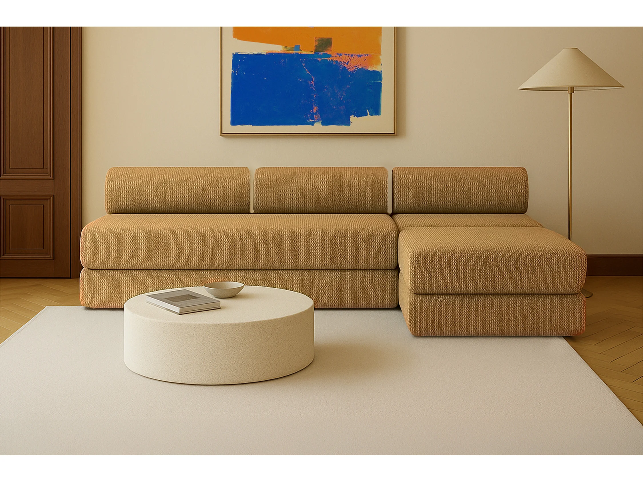 Canapé d'angle modulable et convertible 6 places - Tissu tweed - Jaune