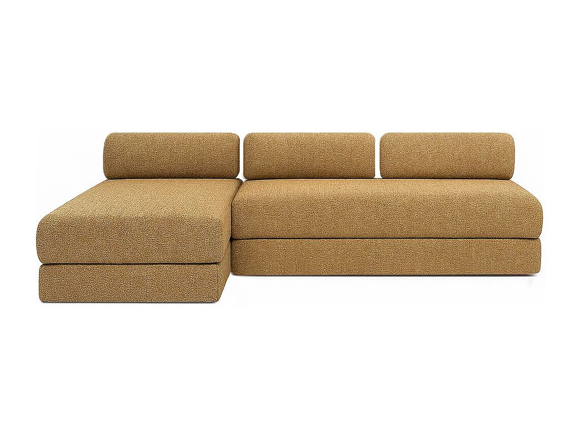 Canapé d'angle modulable et convertible 6 places - Tissu tweed - Jaune