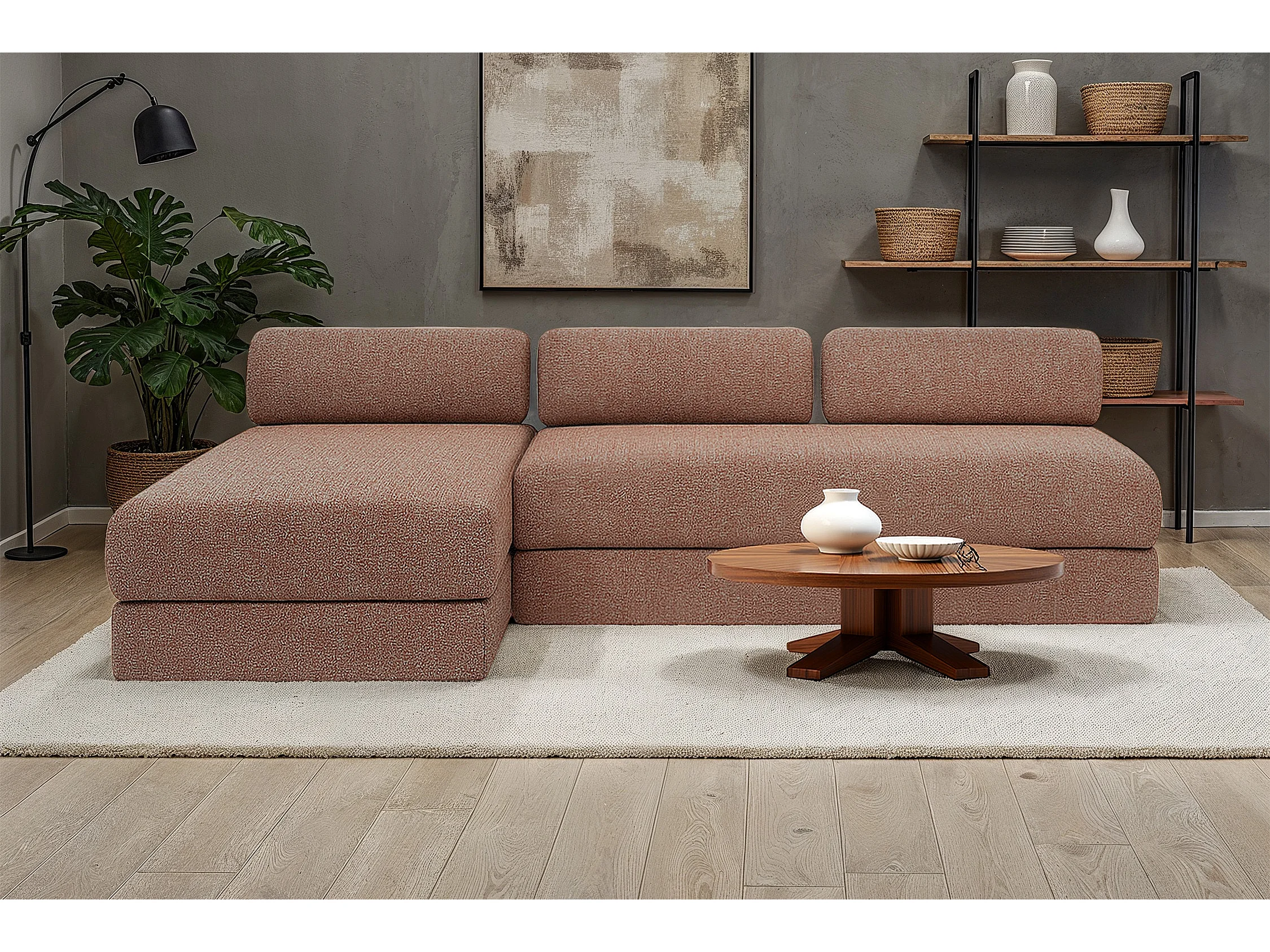 Canapé d'angle modulable et convertible 6 places - Tissu tweed - Rouge