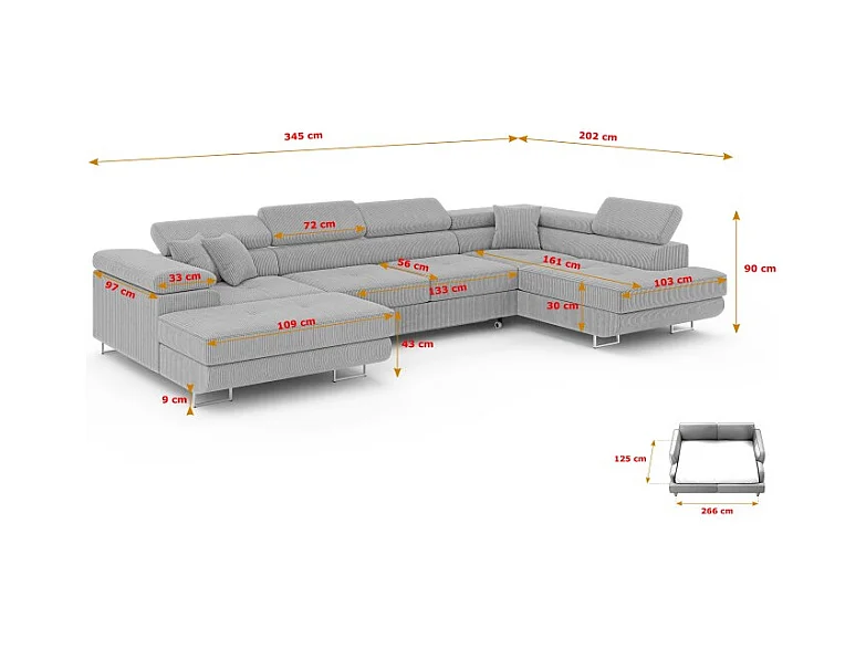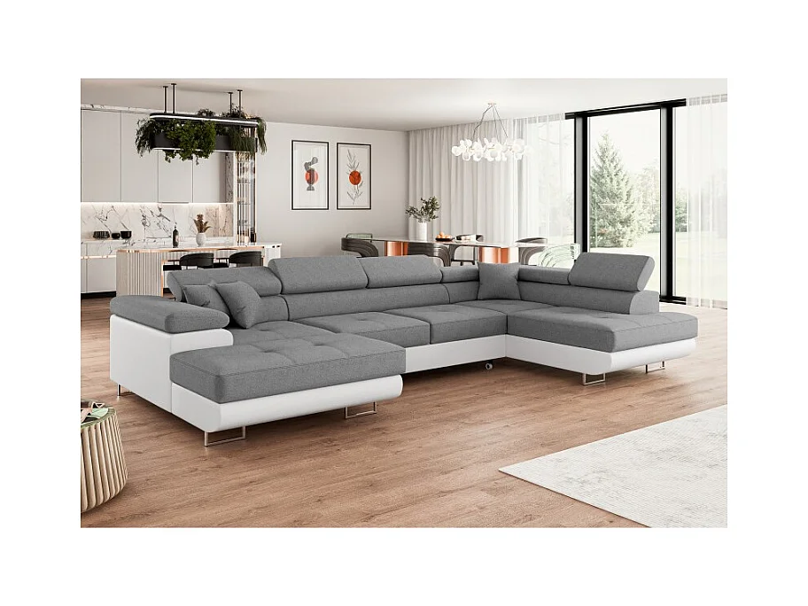 Canapé d'angle convertible ANNIO en U avec têtières réglables