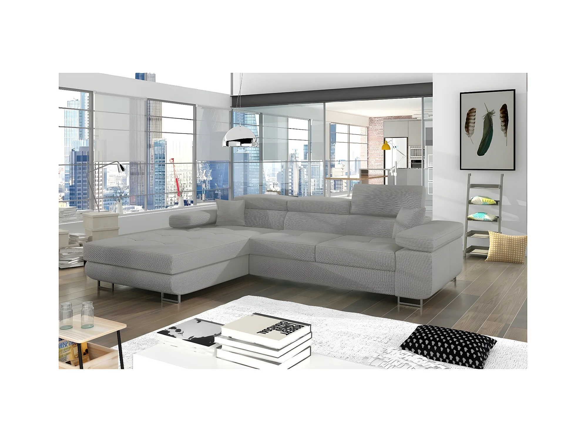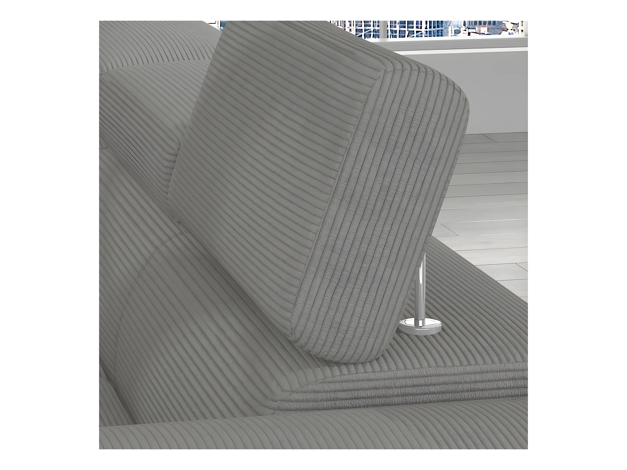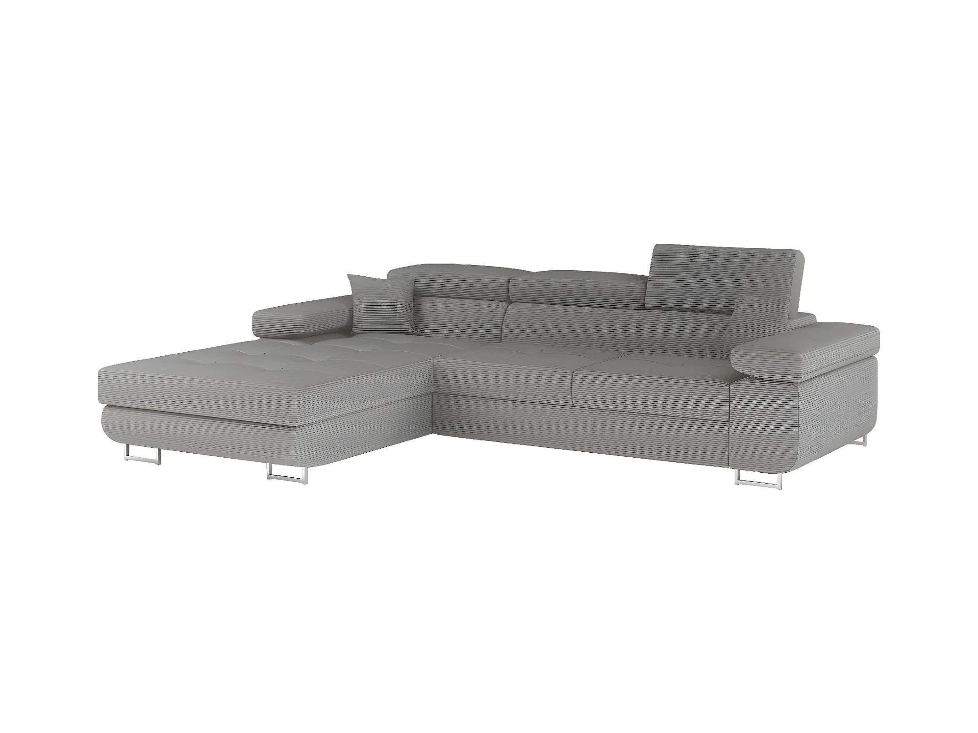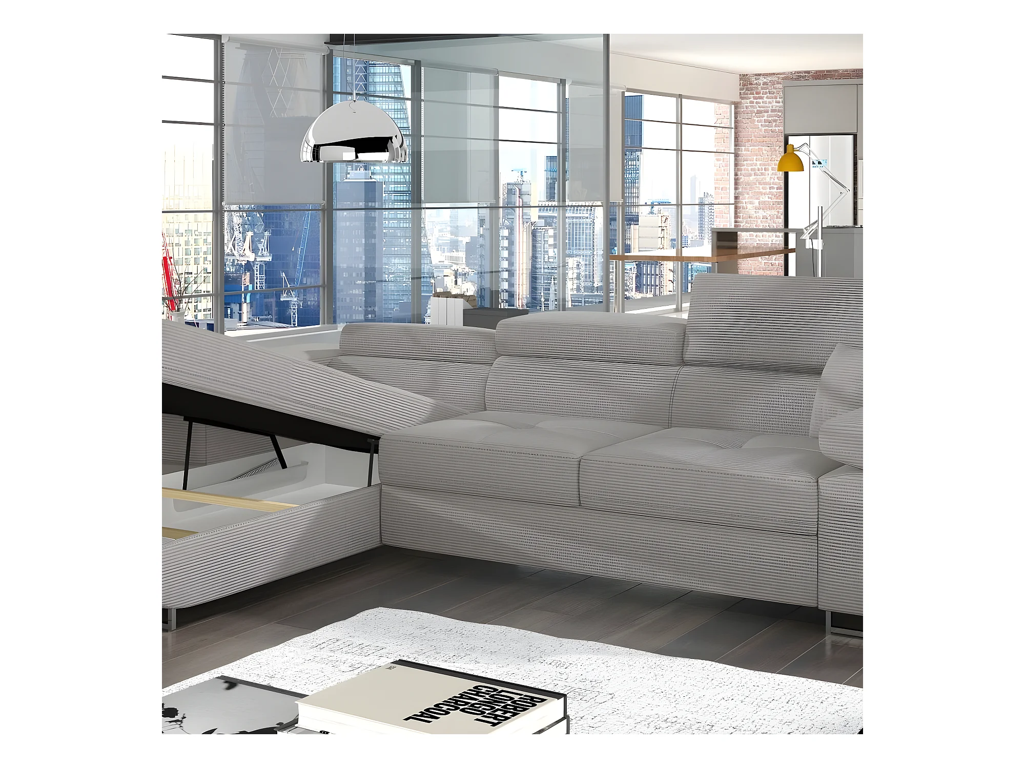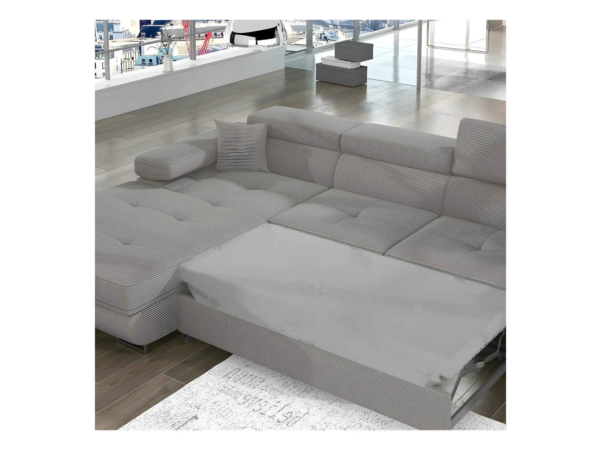 Canapé d'angle convertible - ARMEL en velours cottelé luxe 5 places, couleur gris, coffre, angle gauche (vu de face)