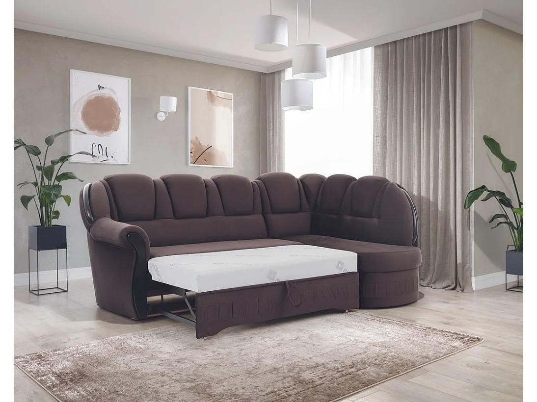 Canapé d'angle convertible avec rangement en velours Majesté-Marron-angle droit