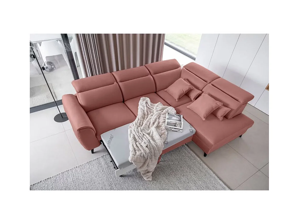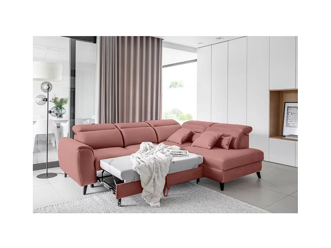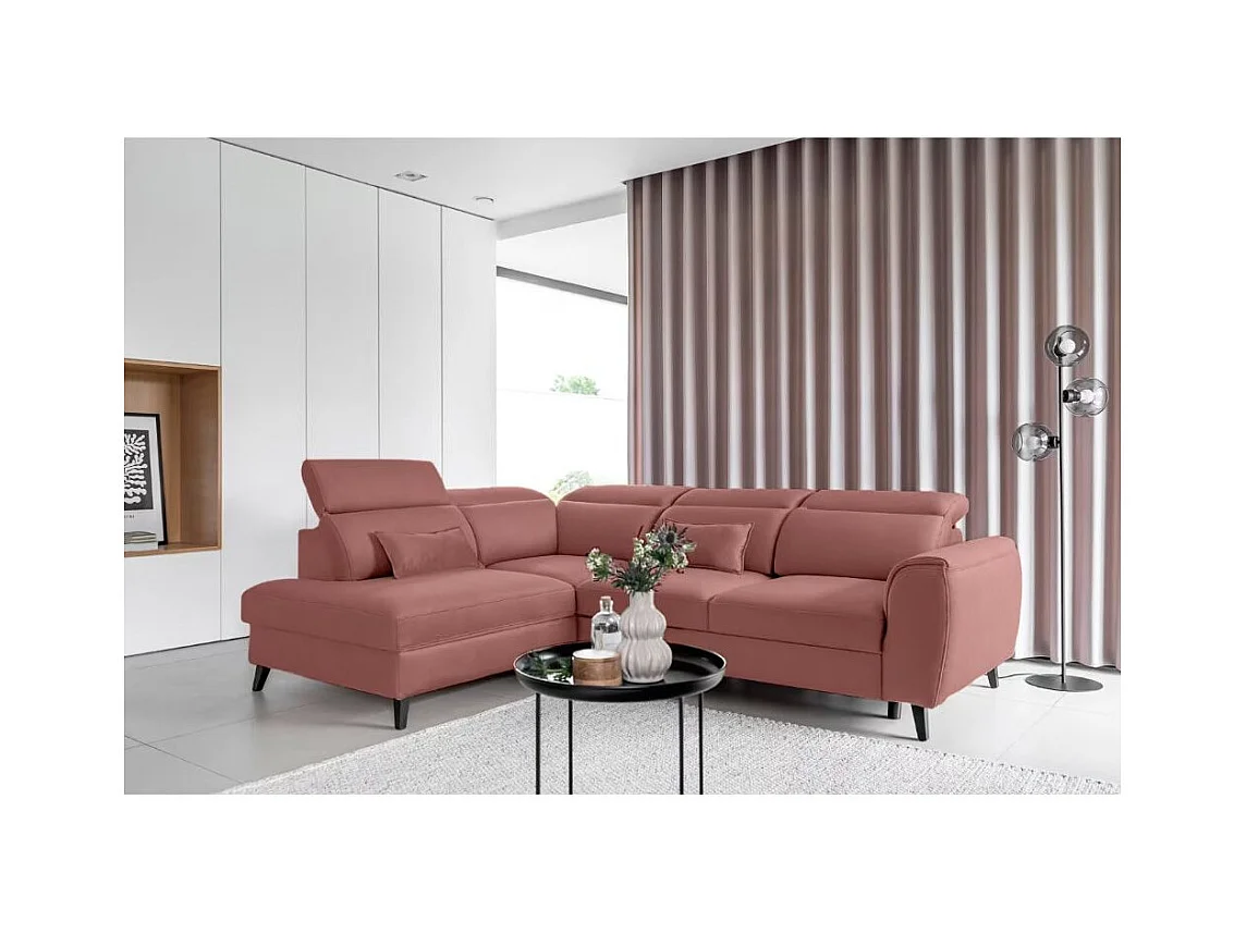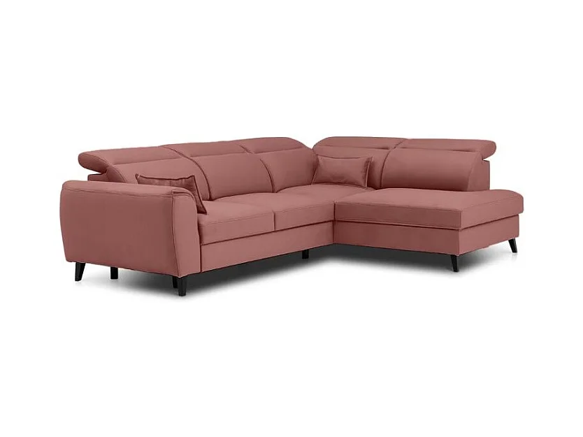 Canapé d'angle convertible avec rangement tissu NOBLESSE - Pieds bois noir-Rose-angle droit
