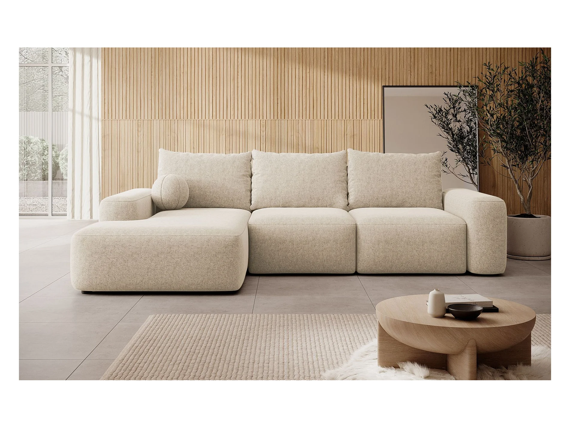 Canapé d'angle convertible - beige chenille - côté gauche - CARNOS