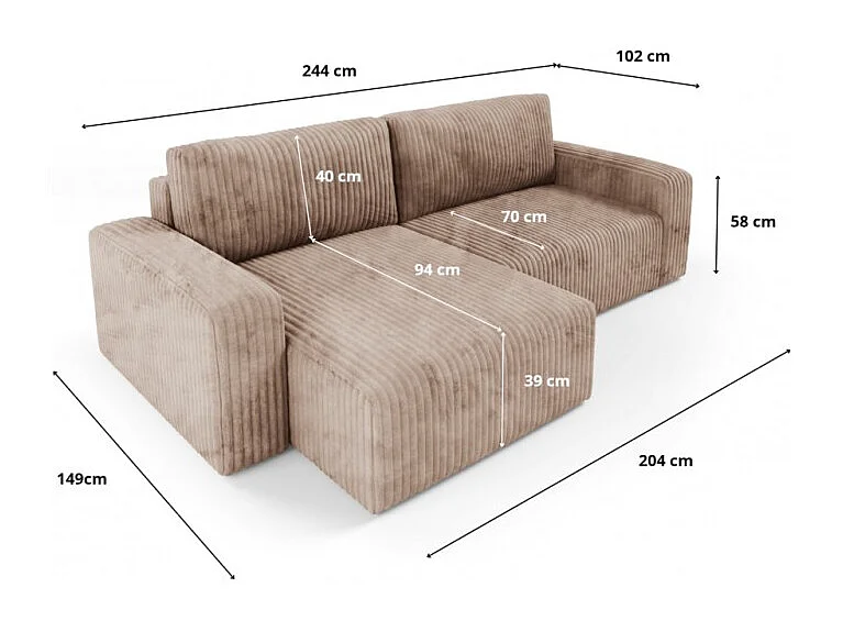 Canapé d'angle convertible BRIGIA en velours côtelé