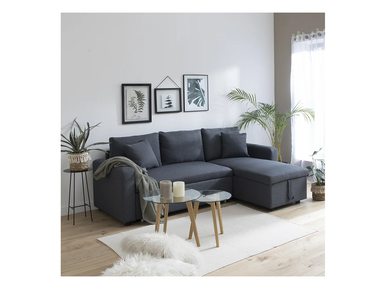 Canapé d'angle convertible CLARK 3 places gris chiné - HAPPY GARDEN