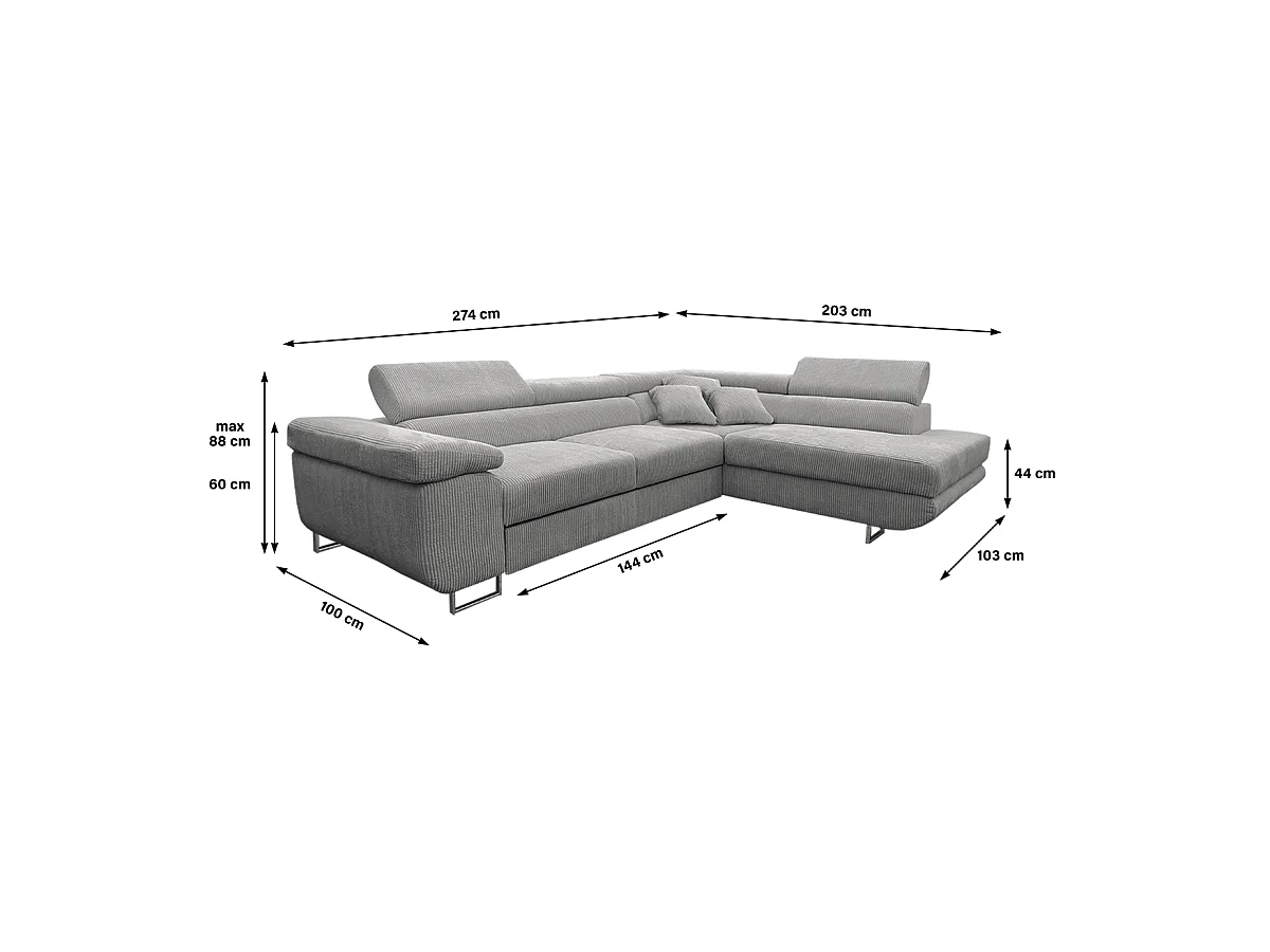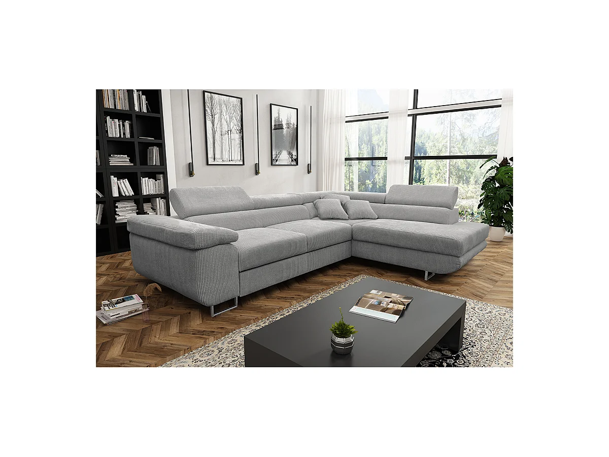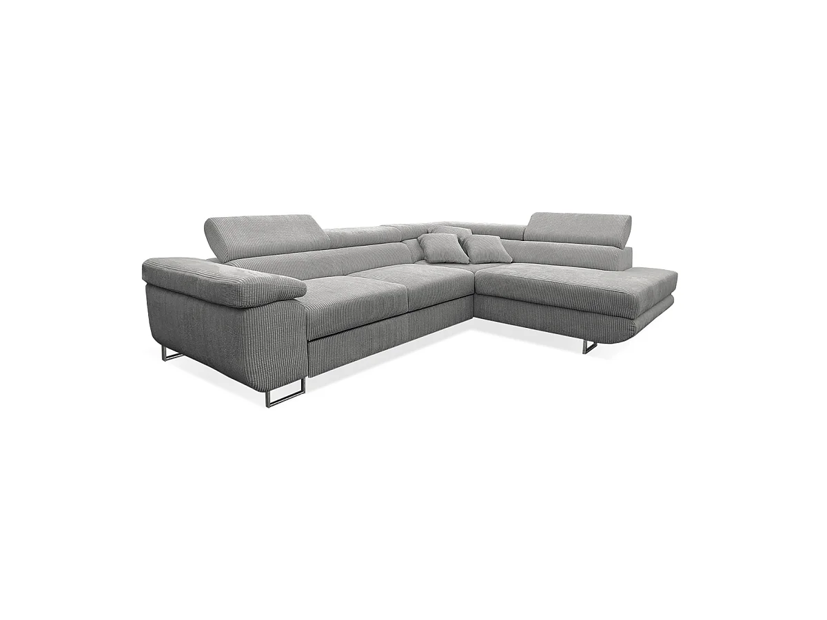Canapé d'angle convertible droit 4 places coffre Martin velours côtelé Gris Clair
